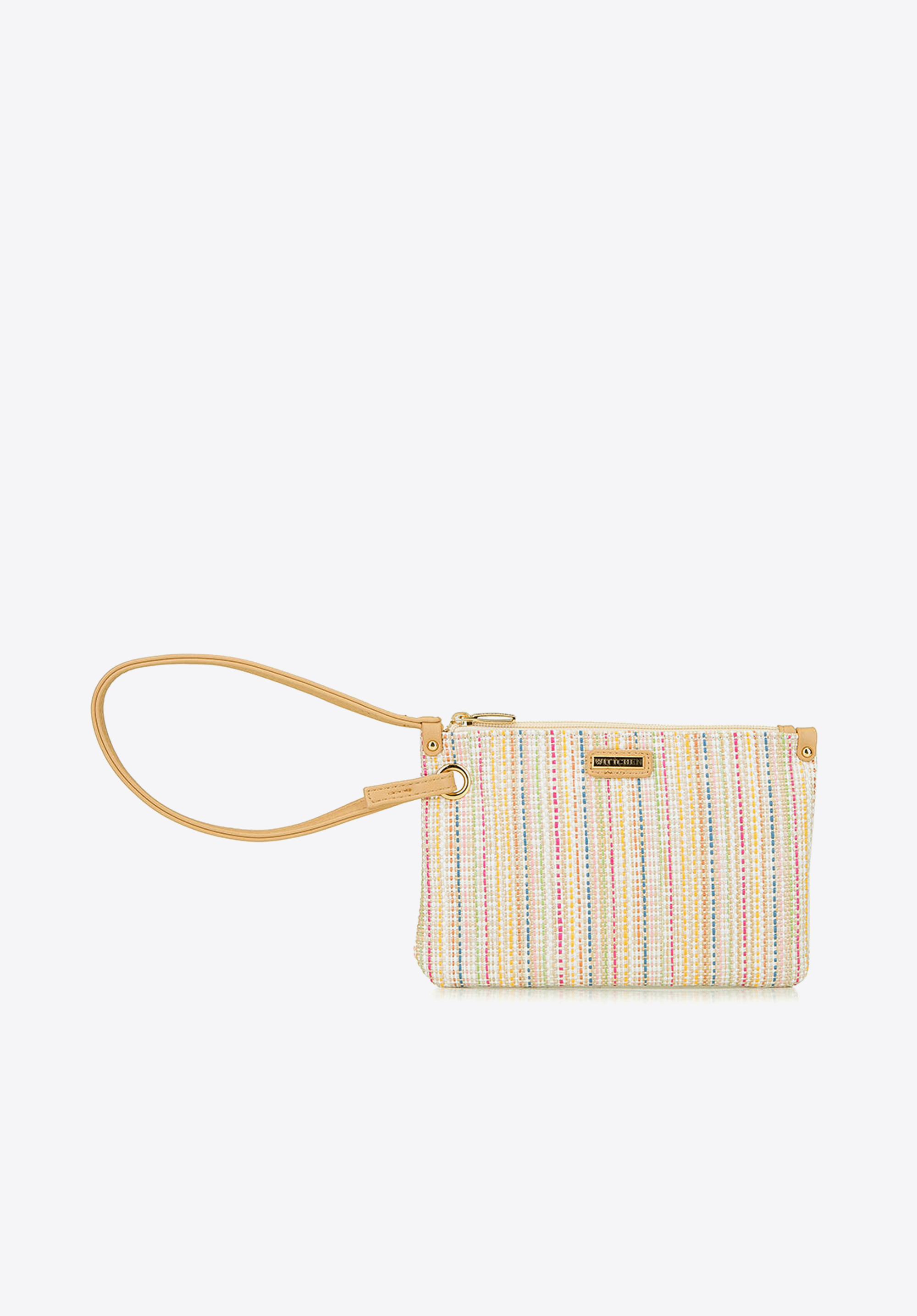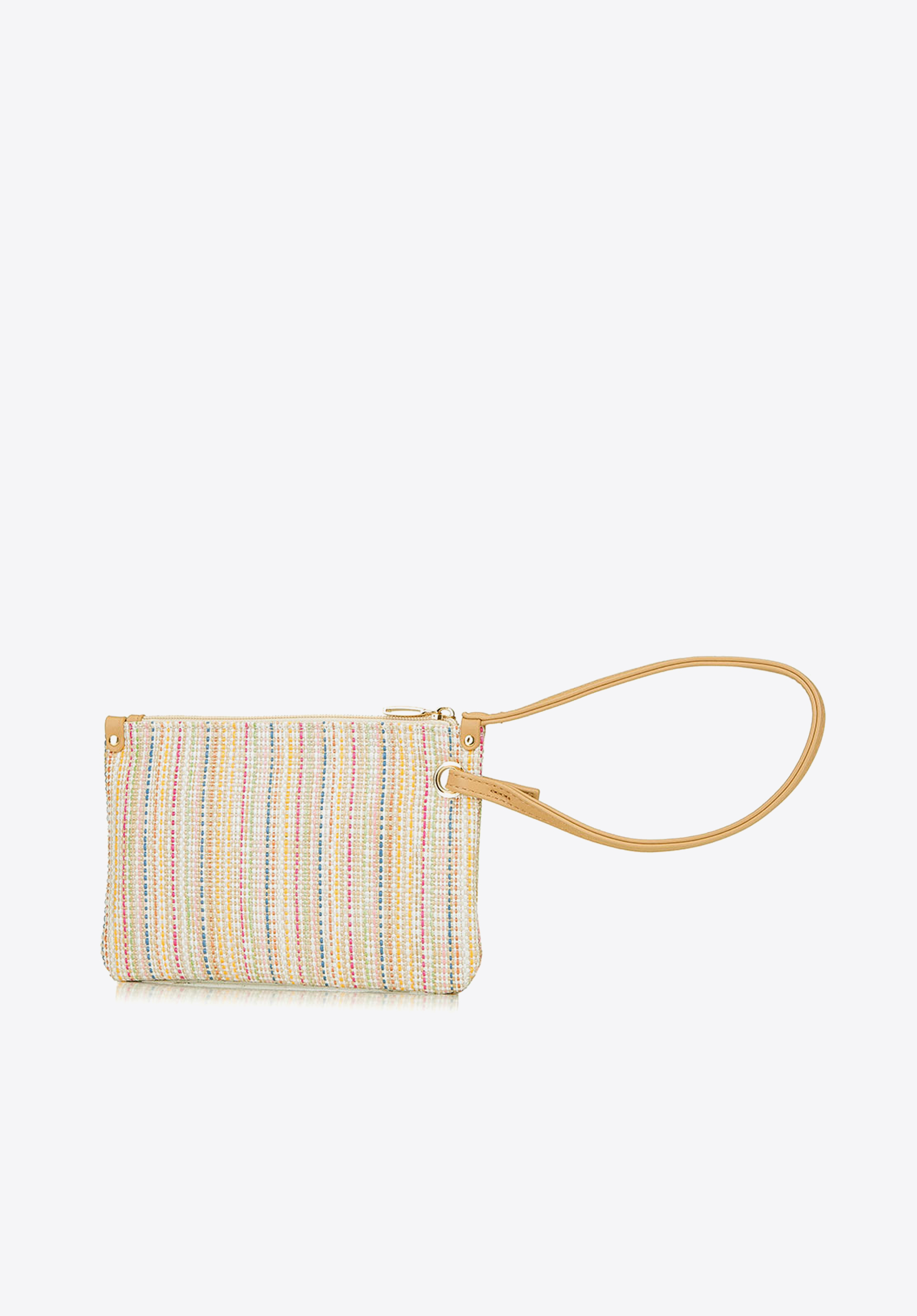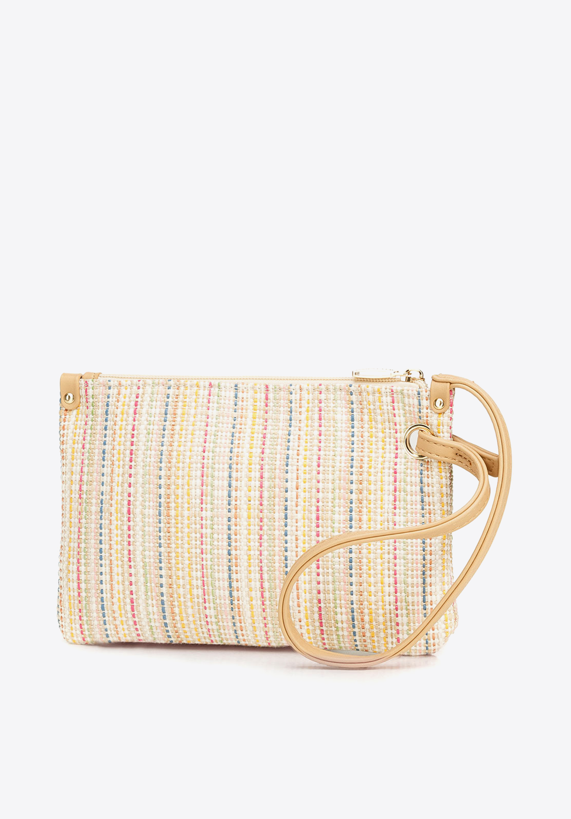 Niewielka kopertówka na długim uchwycie ze skóry ekologicznej jest świetnym uzupełnieniem wiosennych oraz letnich stylizacji. Zmieścisz w środku najpotrzebniejsze na wieczorne wyjścia rzeczy: telefon, portfel czy szminkę. Kolorowe, plecione paseczki w beżowej oprawie nadają jej wyjątkowego charakteru. Torebka doskonale będzie komponować się z bielą oraz pastelowymi kolorami. W środku ma dwie kieszonki, z czego jedną na suwak, które pomogą Ci utrzymać porządek w drobiazgach. Zatem jeśli w ciepłe dni lubisz nosić delikatne, zwiewne sukienki, znalazłaś idealną torebkę dla siebie.