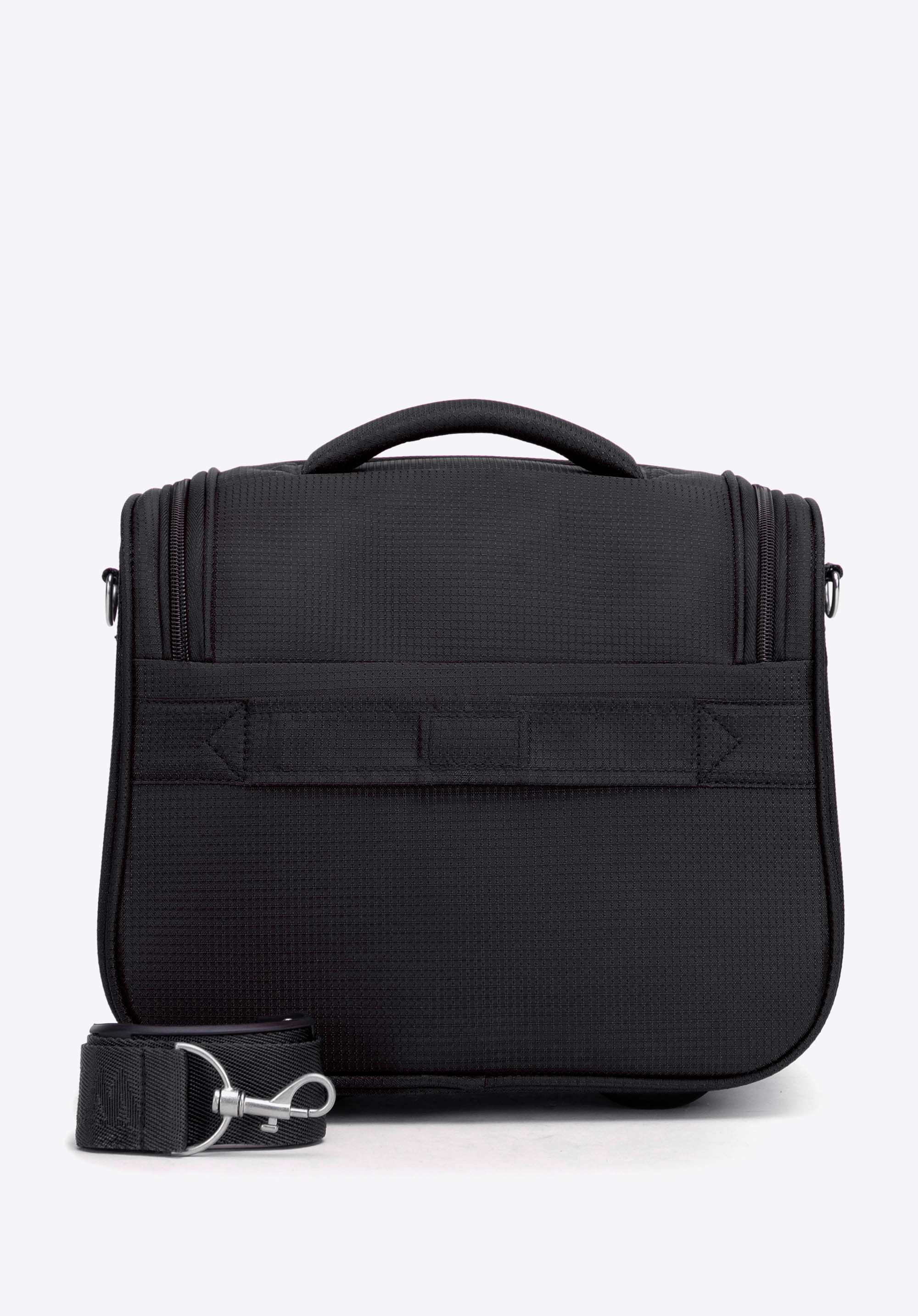 - Komfort noszenia: Odpinany i regulowany pasek z logo umożliwia dostosowanie kosmetyczki do Twoich indywidualnych potrzeb.