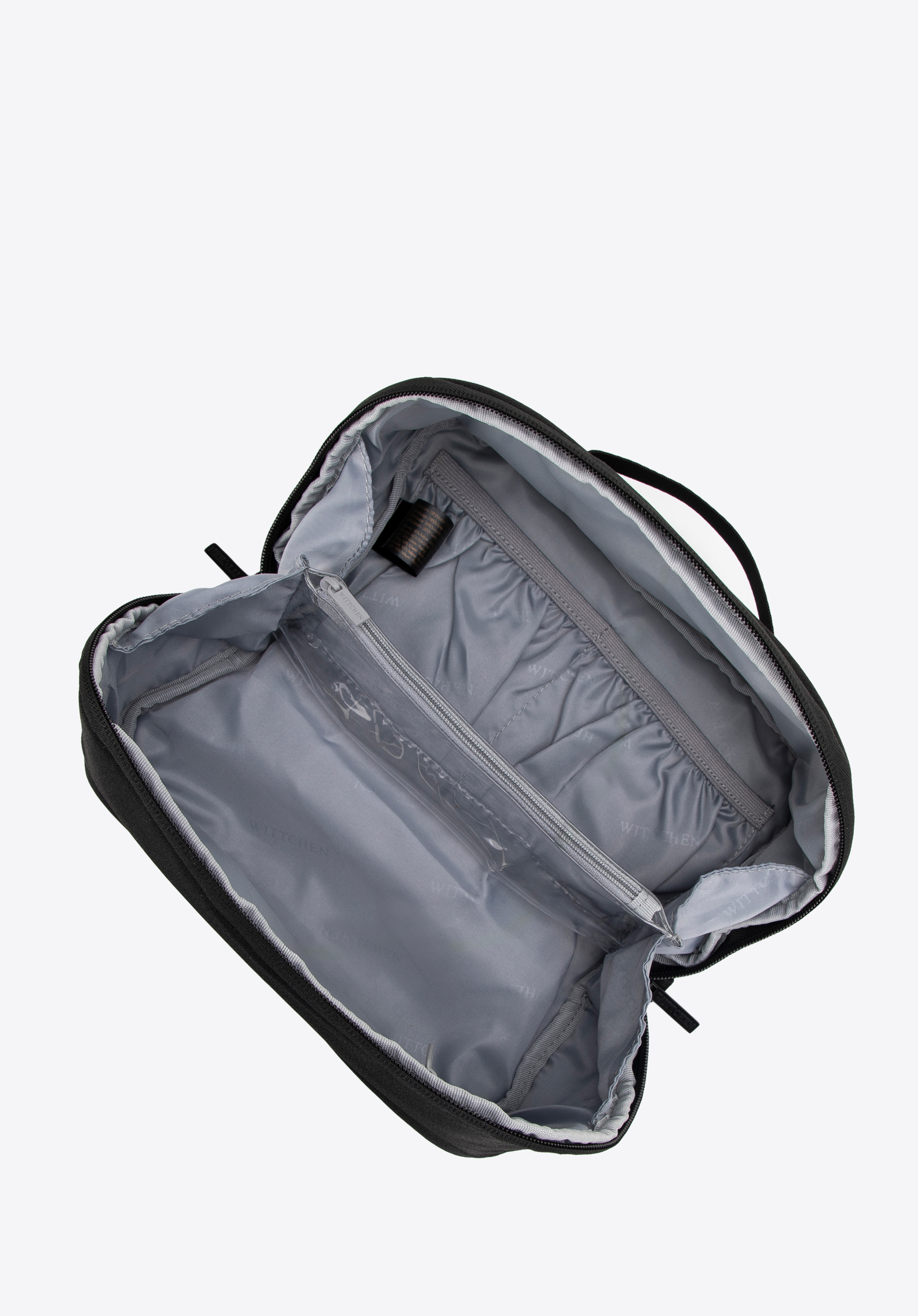 - Wnętrze: Przestronne dwie komory przedzielone wszytą wkładką z PVC, zamykaną na suwak, umożliwiającą efektywne zarządzanie przestrzenią.