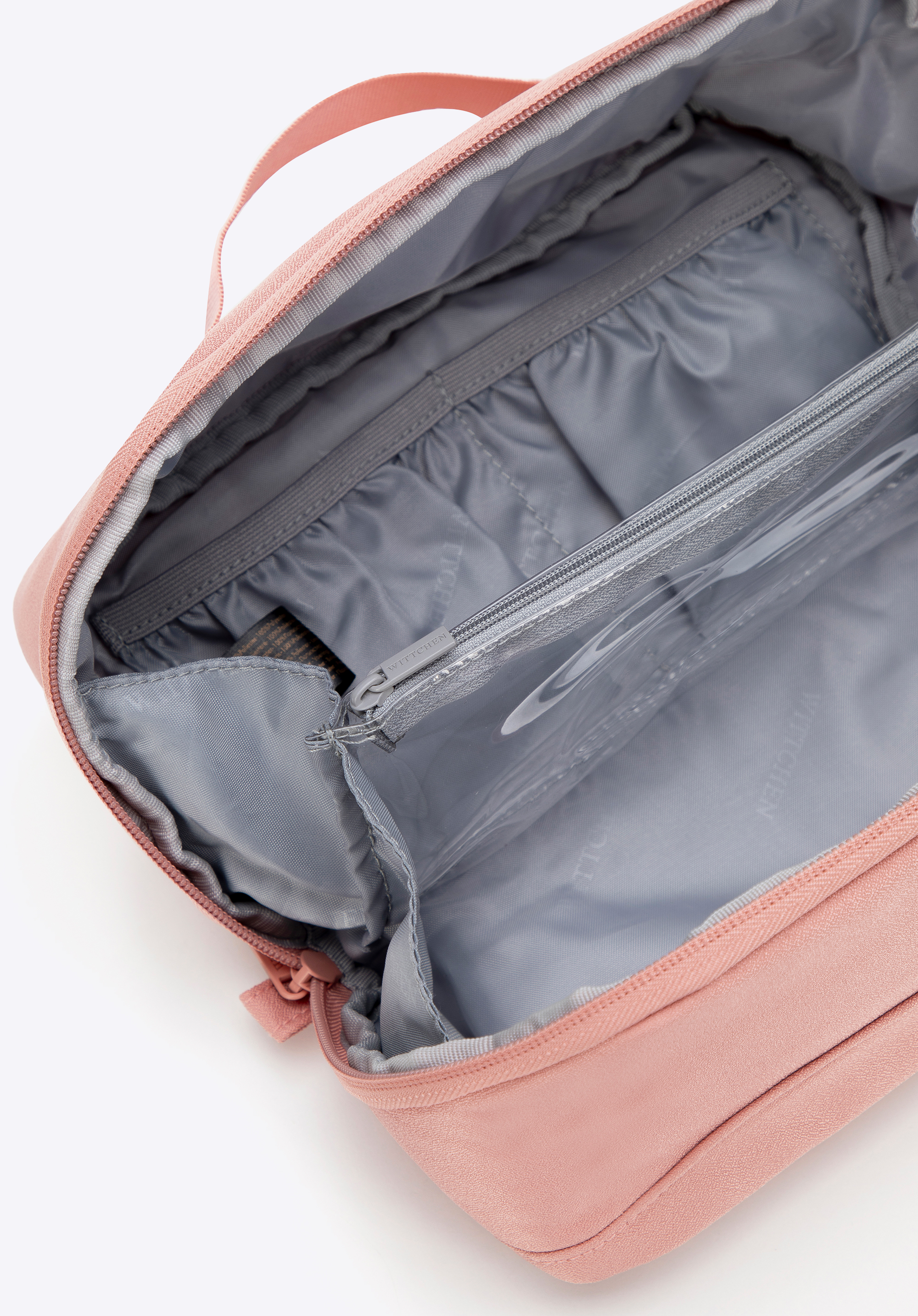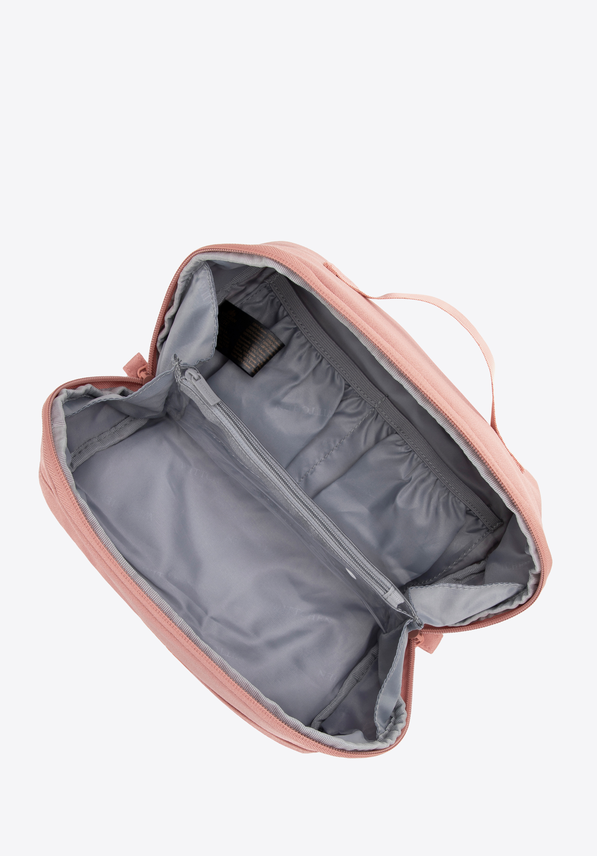 - Wnętrze: Przestronne dwie komory przedzielone wszytą wkładką z PVC, zamykaną na suwak, umożliwiającą efektywne zarządzanie przestrzenią.