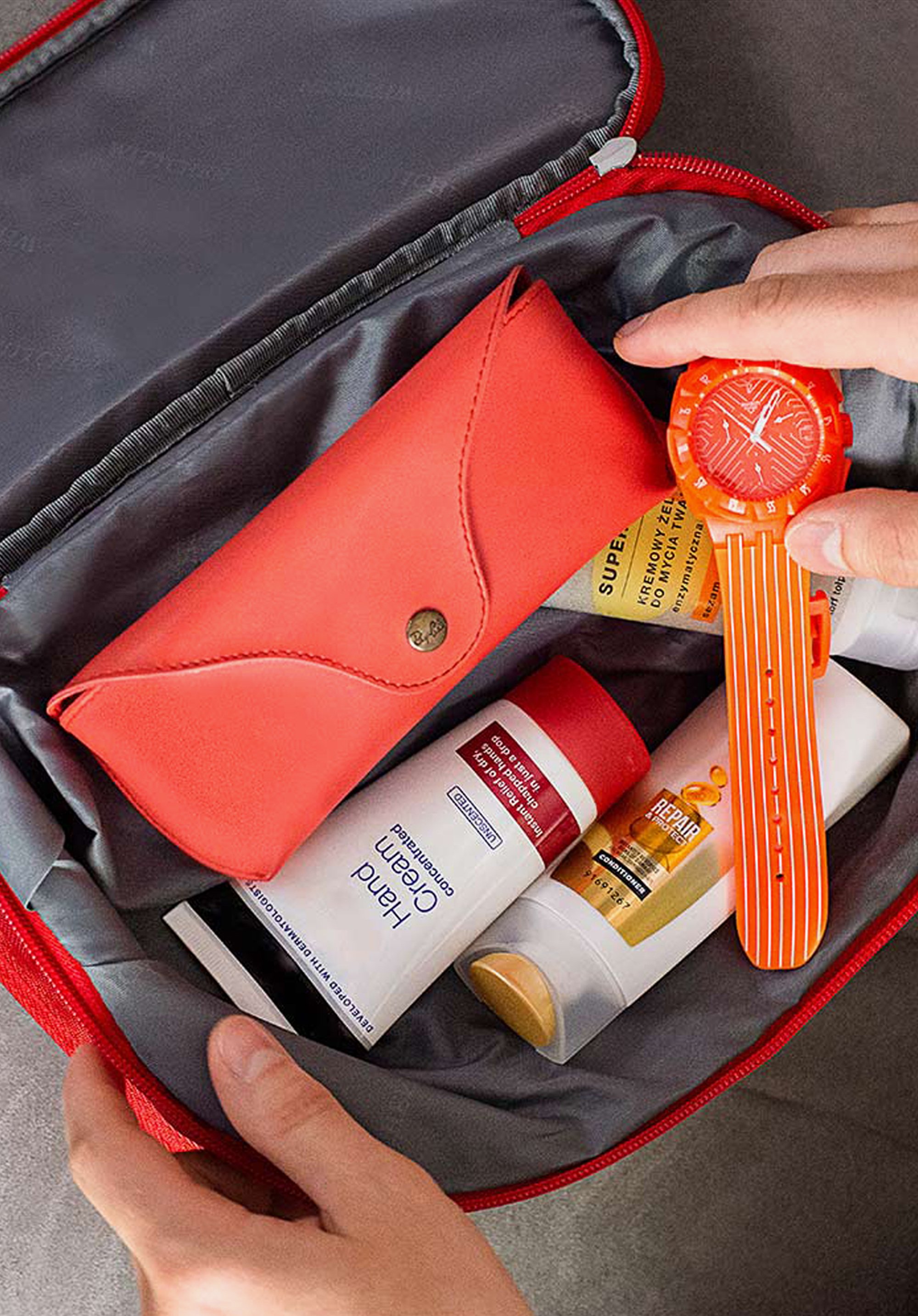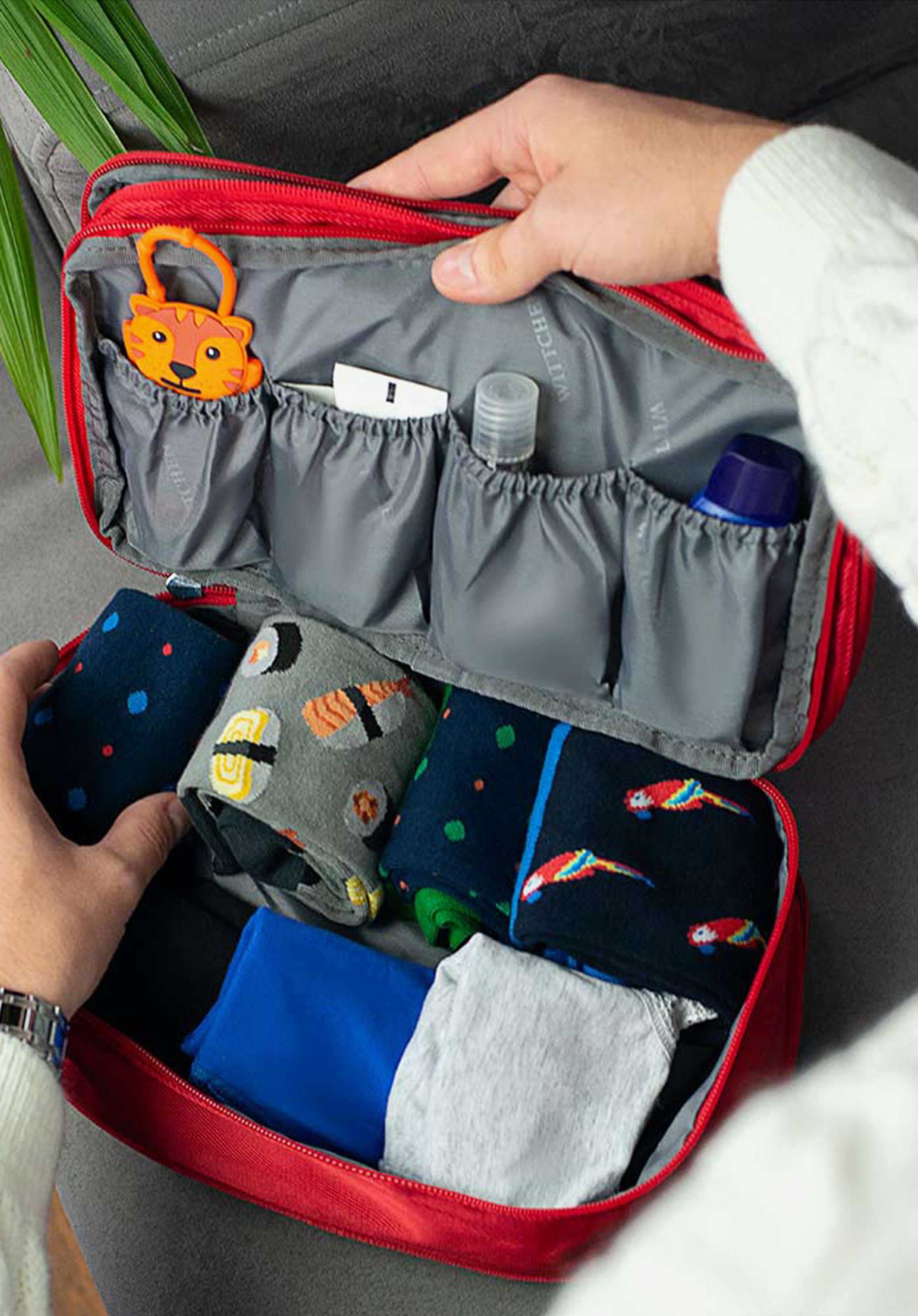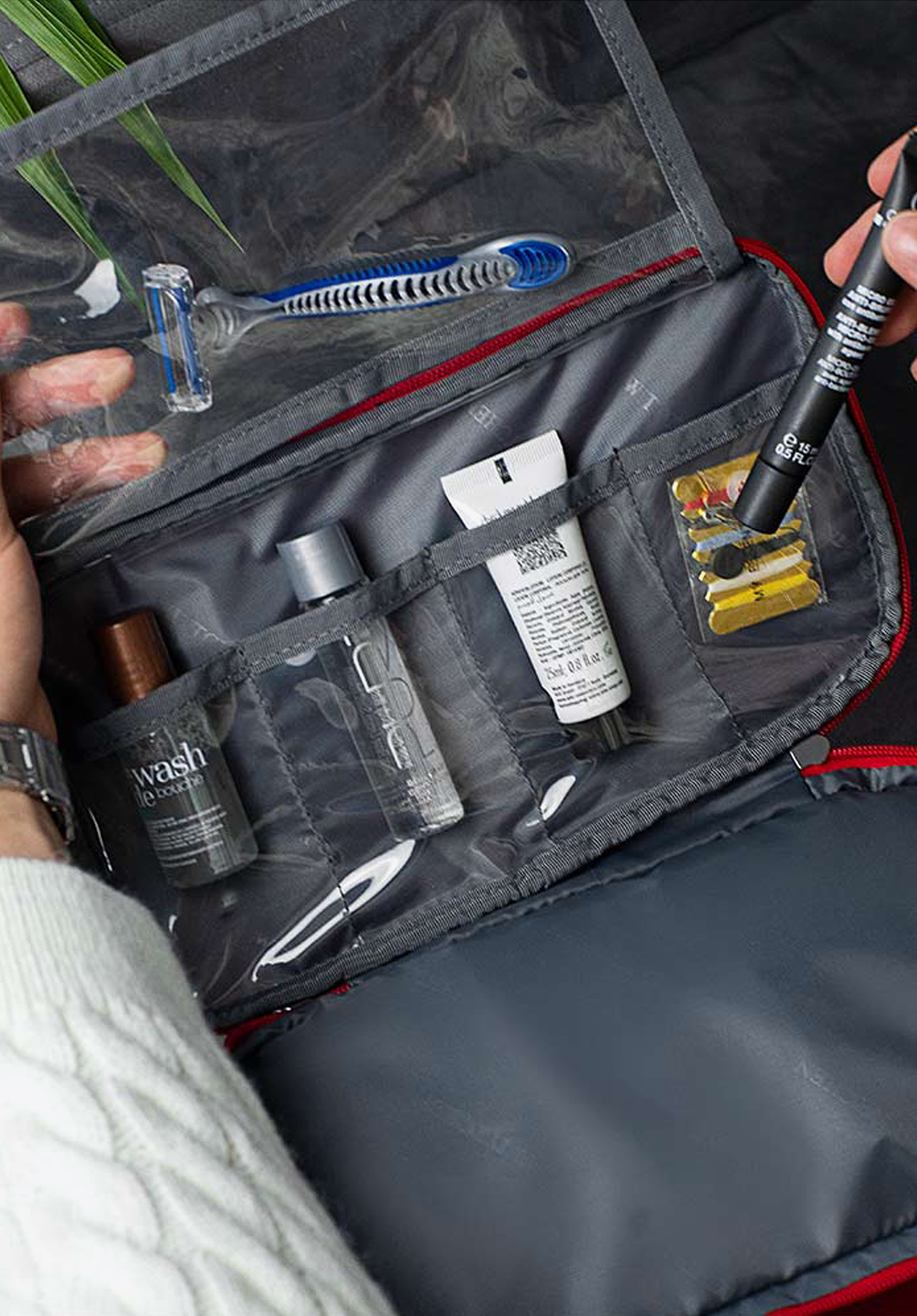 wszystkie niezbędne w podróży rzeczy osobiste. Trzy osobne komory i liczne kieszonki – część z nich przezroczysta dla łatwiejszego szukania – pomogą Ci