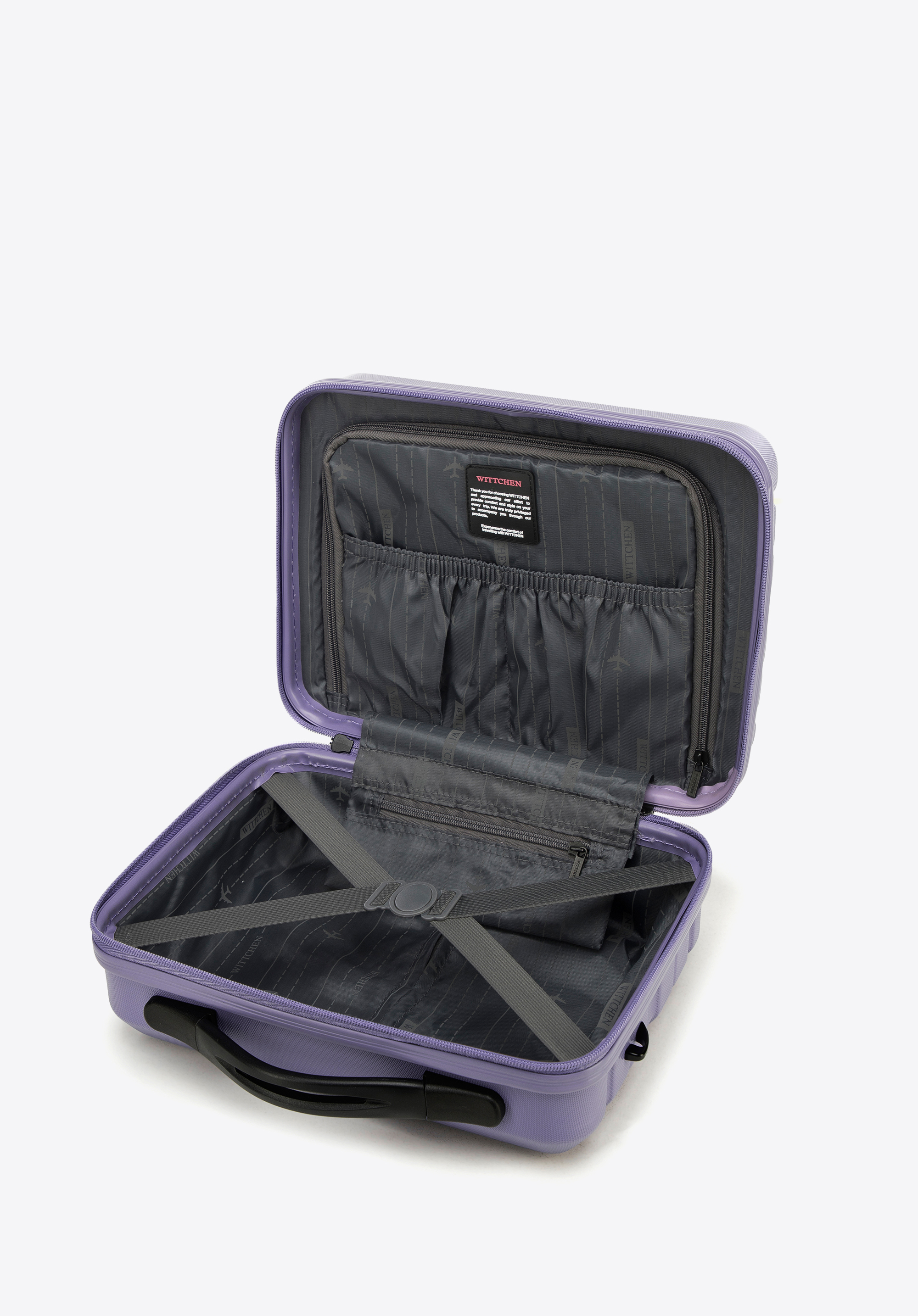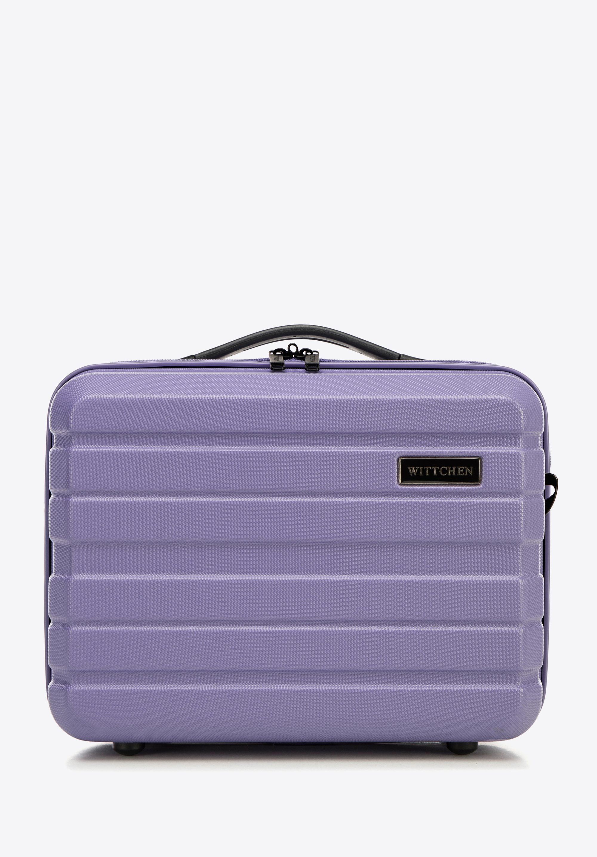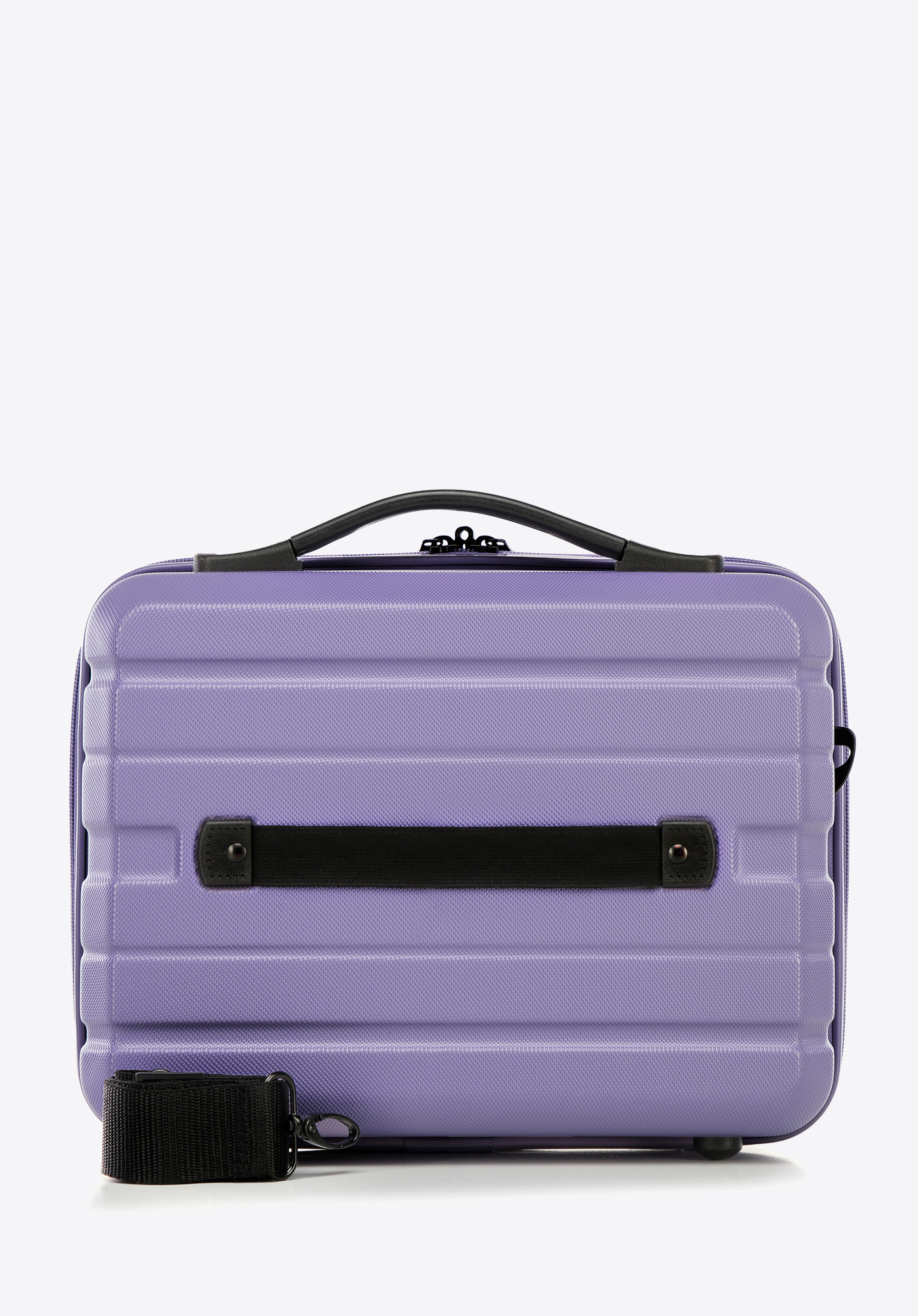 Z tyłu ma elastyczny pasek, dzięki któremu zaczepisz ją o uchwyt walizki. Kosmetyczka podróżna z ABS-u w poziome pasy to świetny wybór dla każdej eleganckiej kobiety.