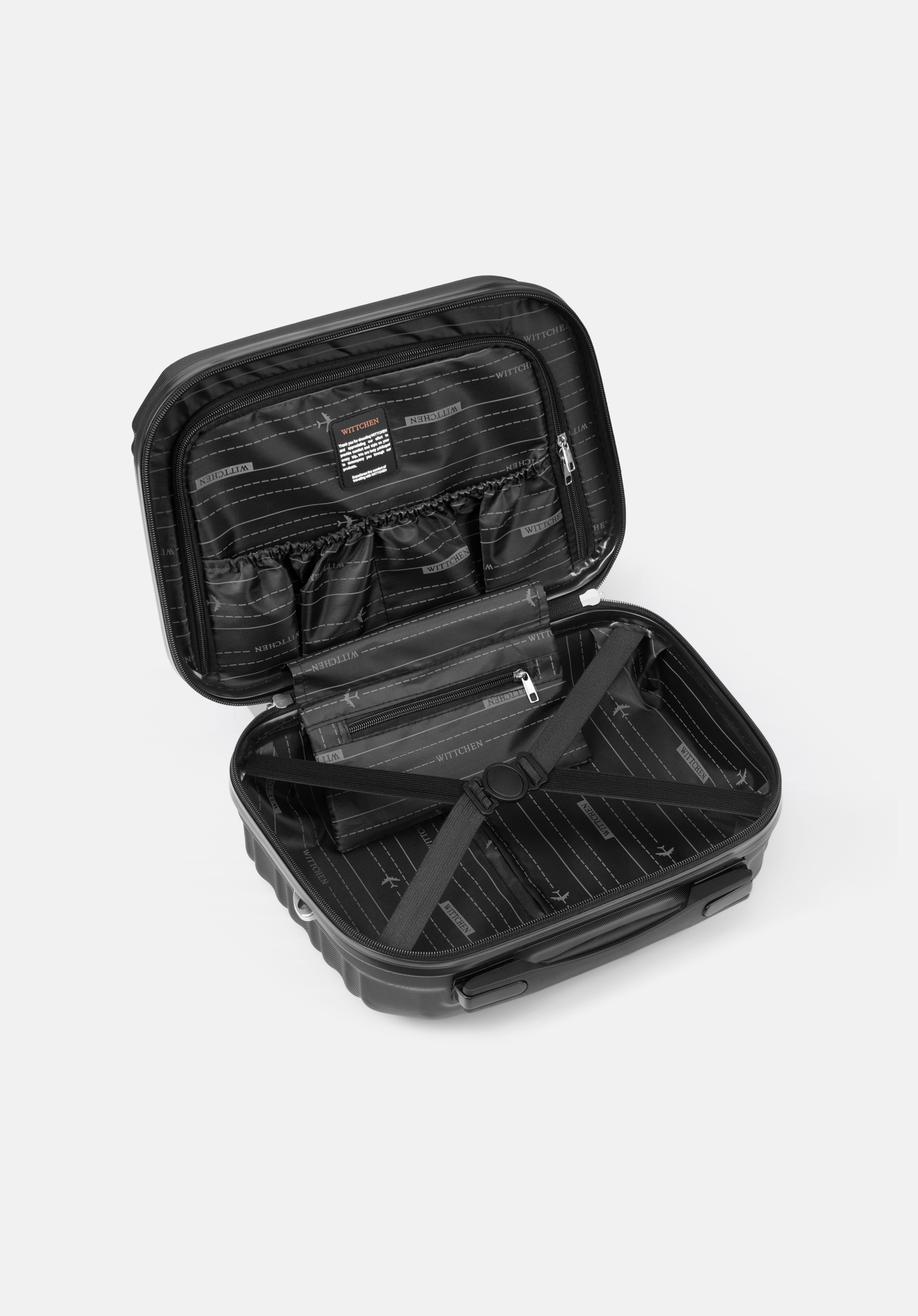 - Materiał: Kosmetyczka wykonana jest z trwałego tworzywa ABS z tłoczeniem. To innowacyjne połączenie zapewnia zwiększoną odporność na zarysowania i uszkodzenia.