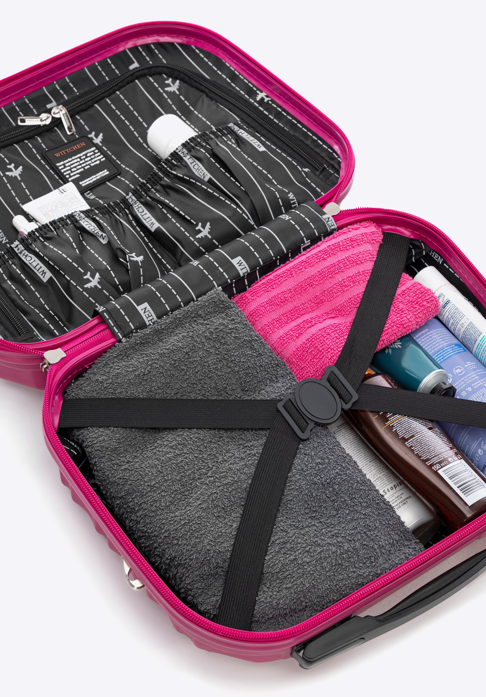 Kosmetyczka podróżna z ABS-u z żebrowaniemKolor: różowy