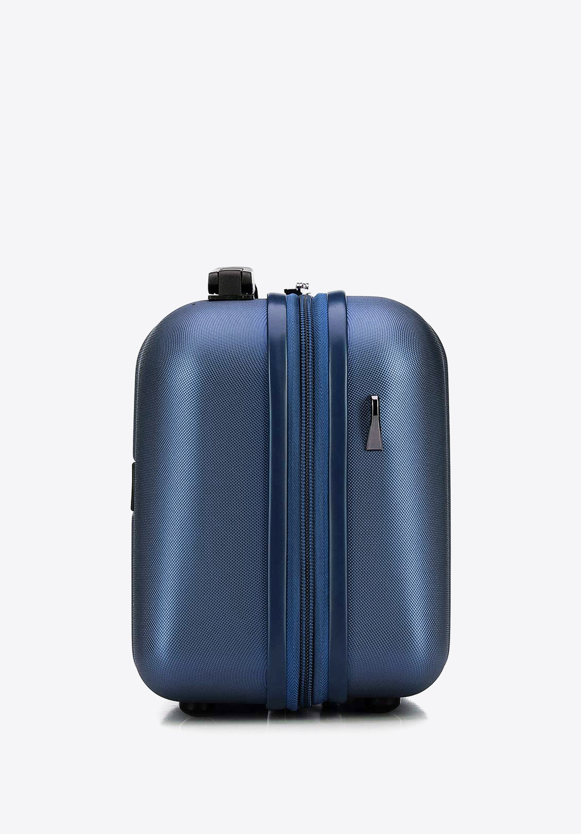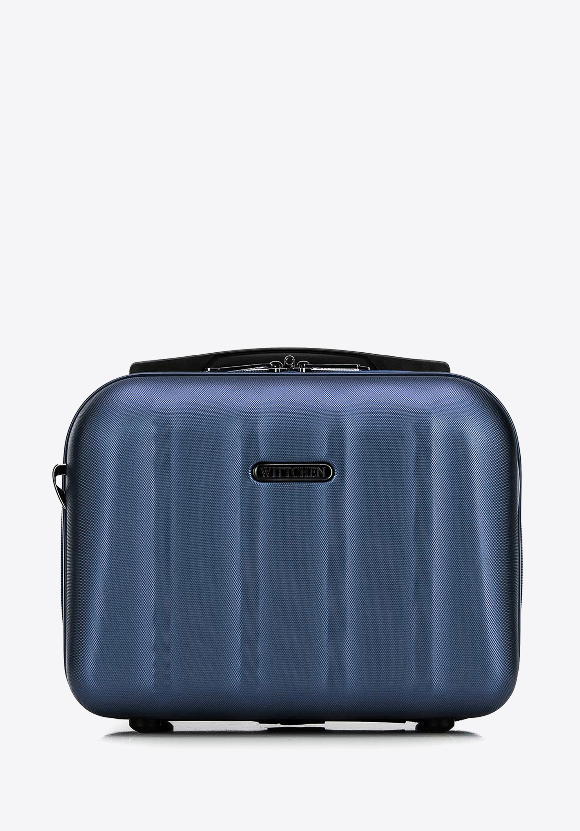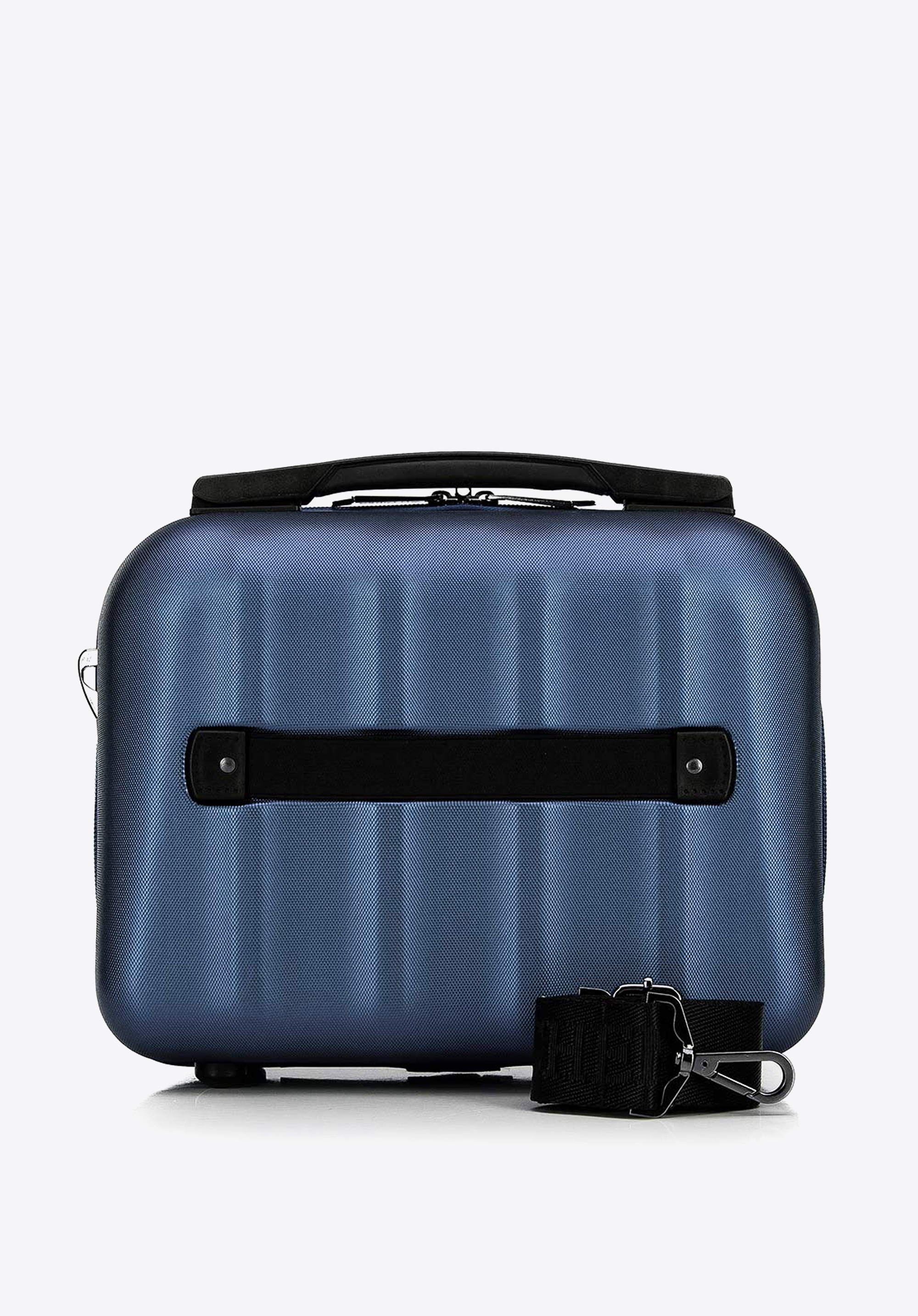 regulowany pasekoraz gumkę, dzięki której wsuniesz kosmetyczkę na rączkę walizki. Możesz kupić ją osobno lub w komplecie walizek.