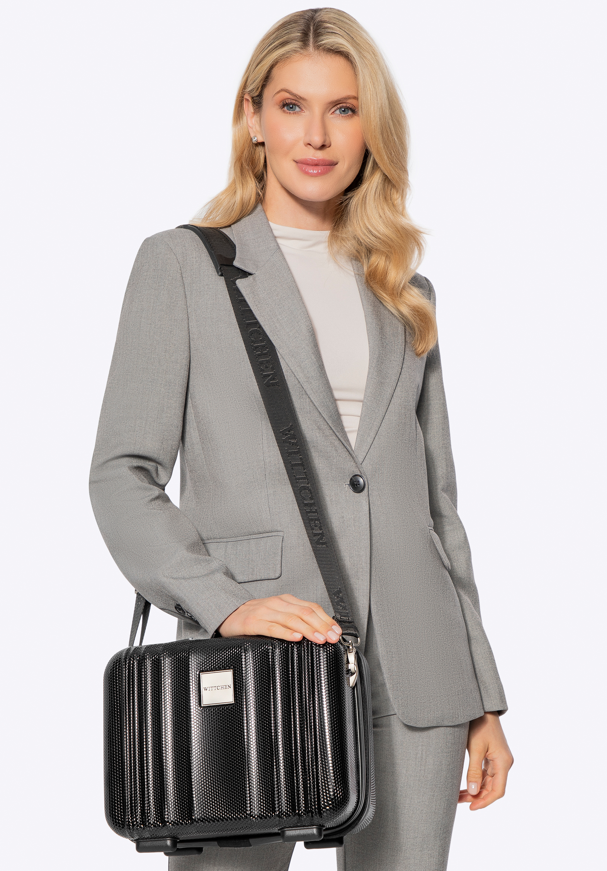 - Dodatkowe rozwiązania: Do kosmetyczki dołączony jest odpinany, regulowany pasek, który umożliwia noszenie jej na ramieniu.