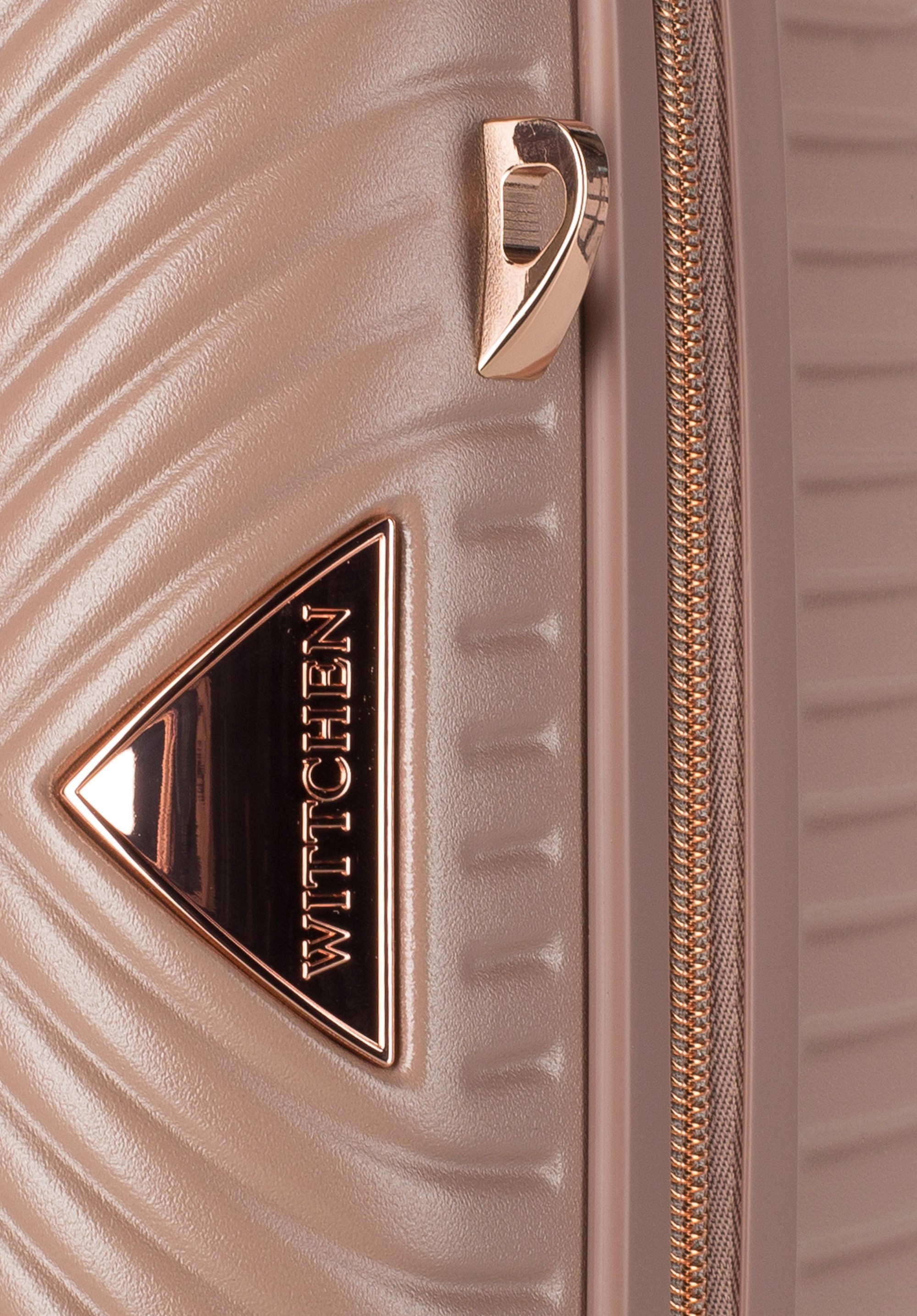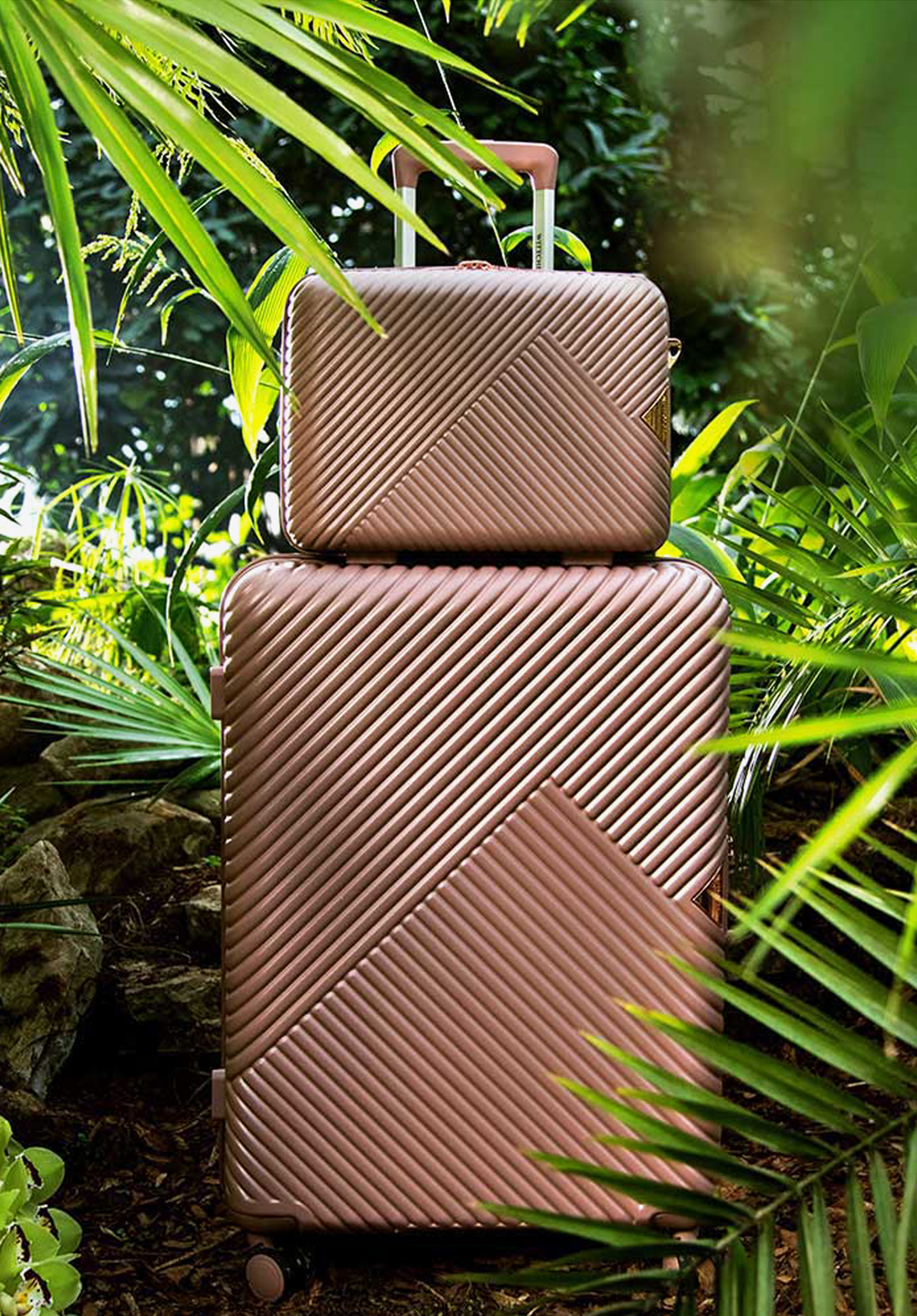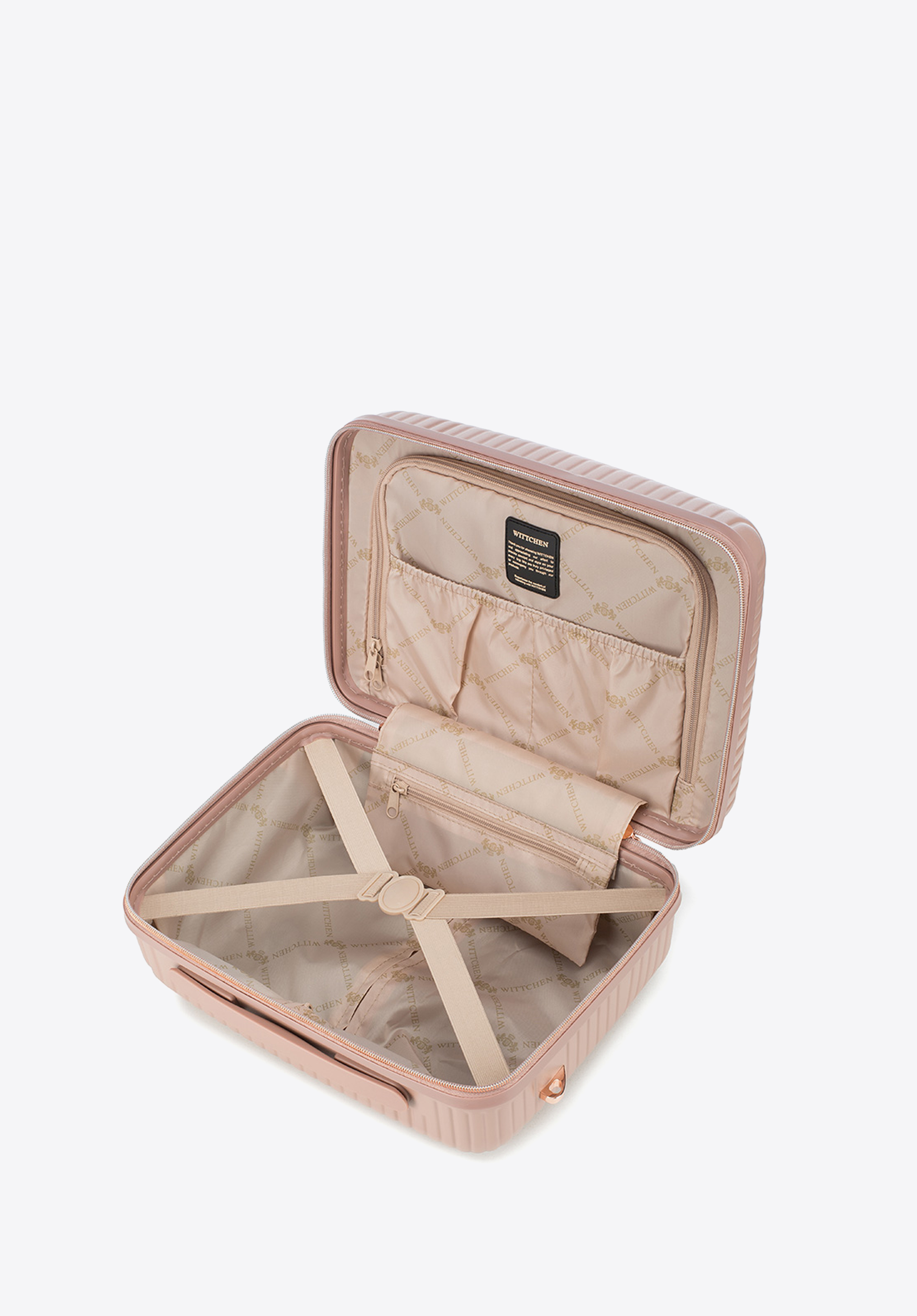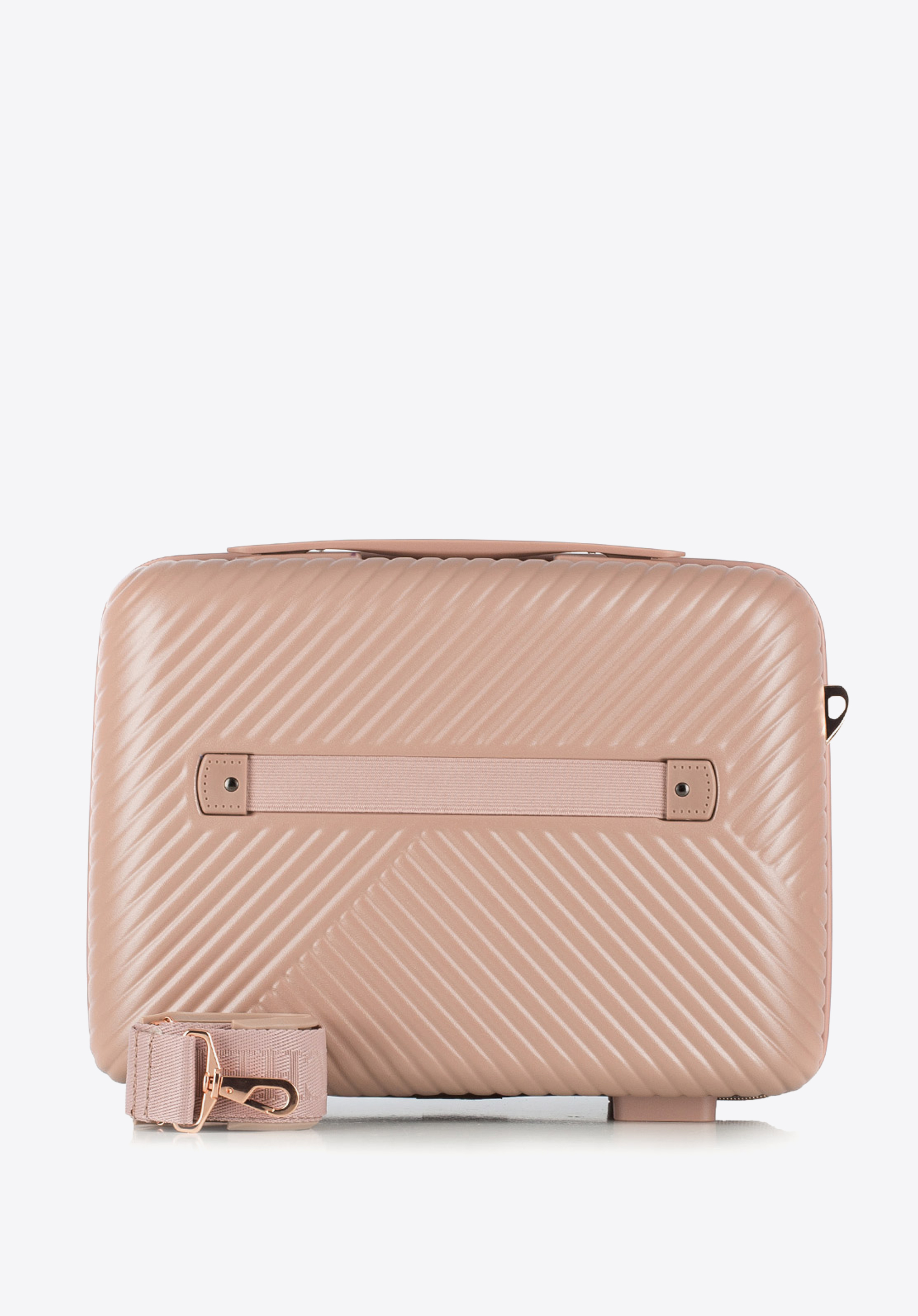 Kosmetyczka podróżna z polikarbonu w paseczki pudrowy róż