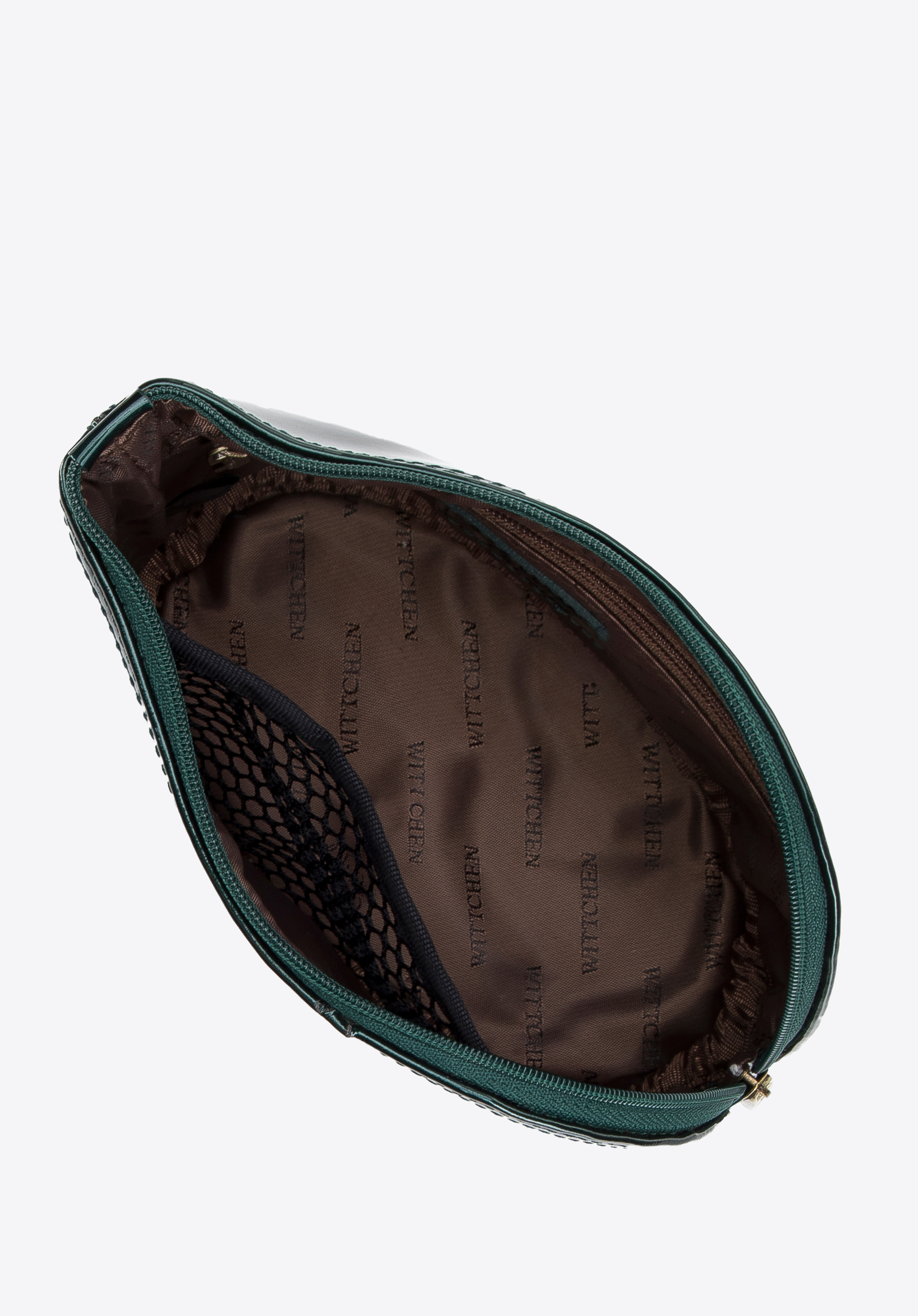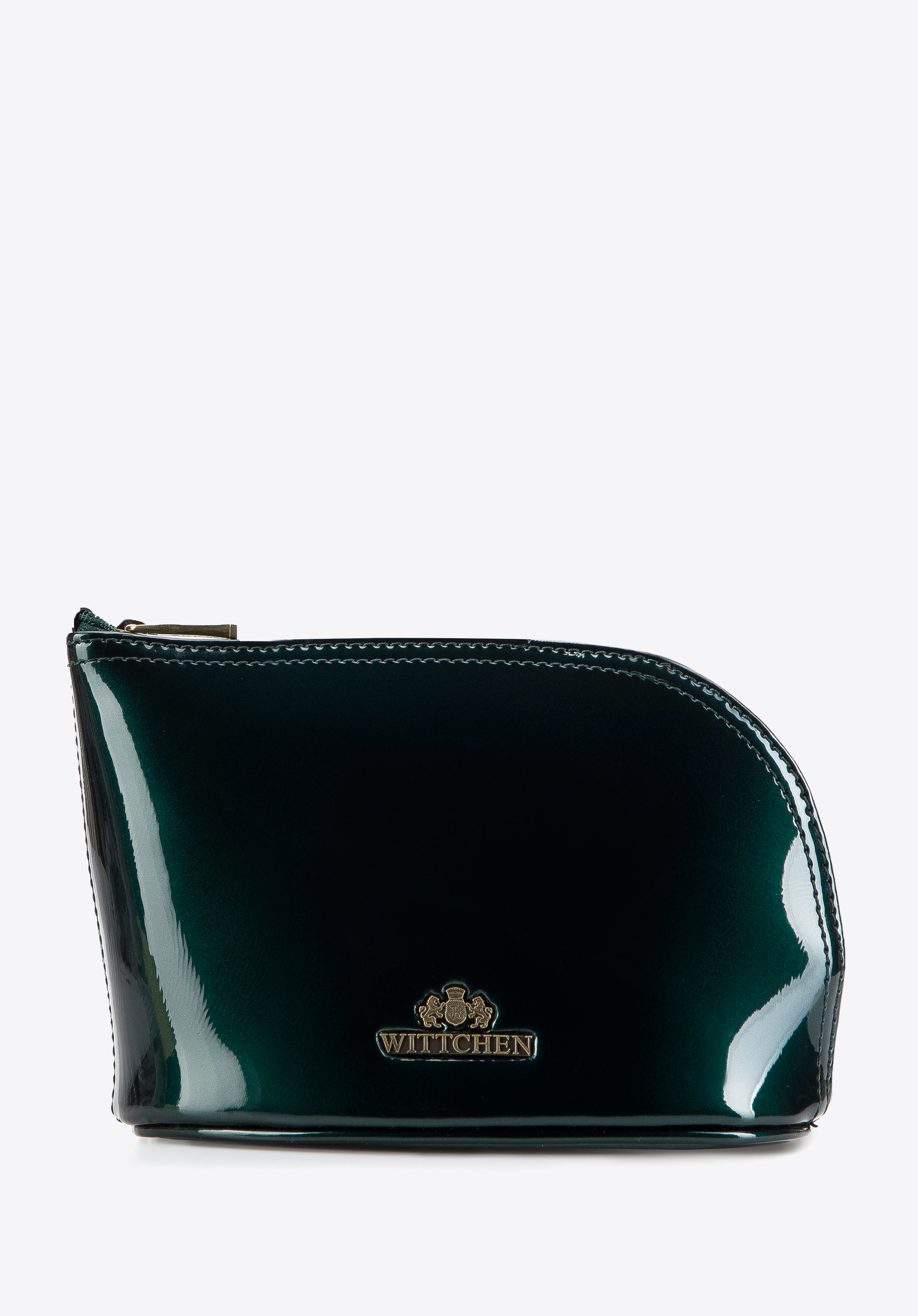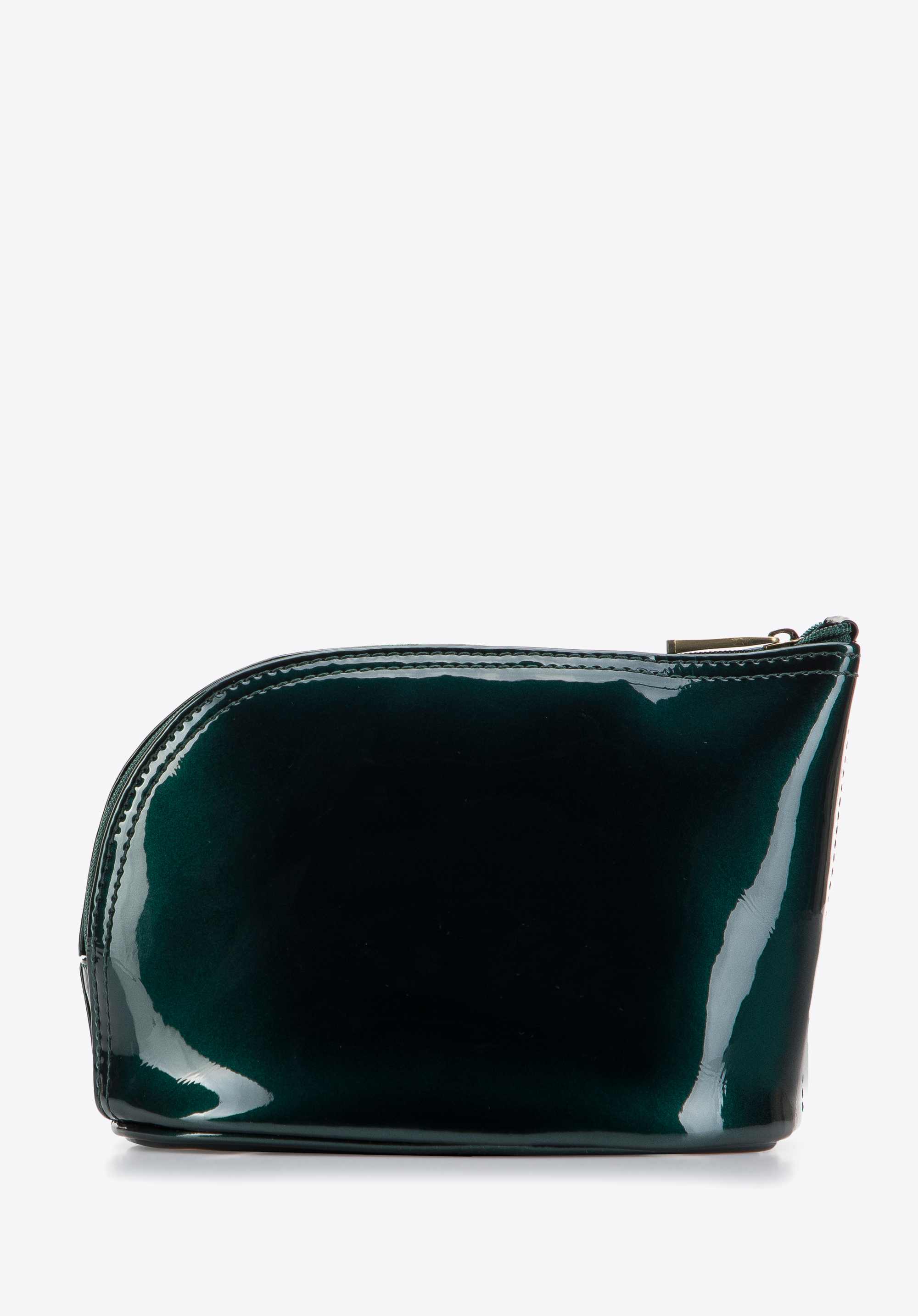 Kosmetyczka skórzana lakierowana wygięta zielona