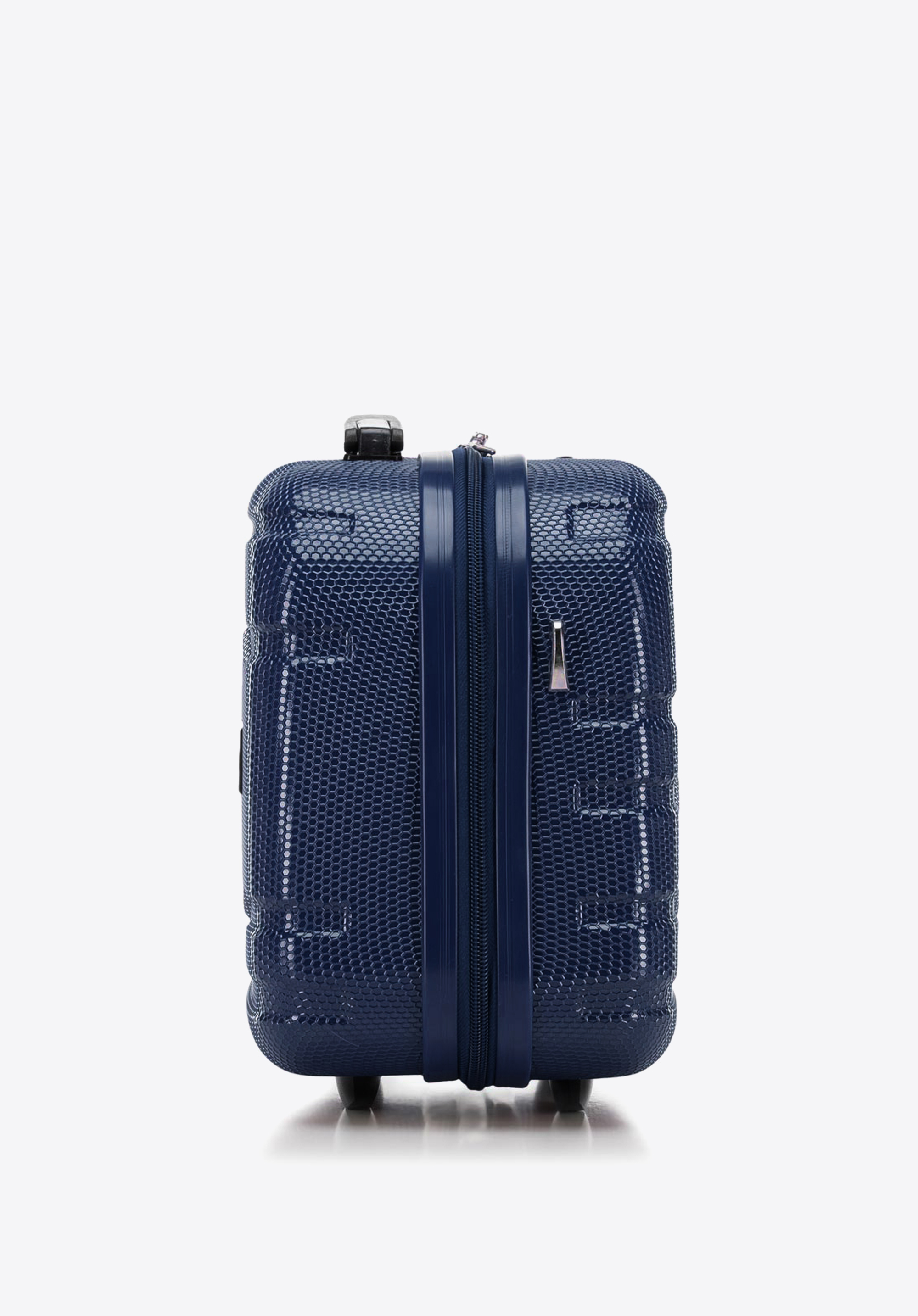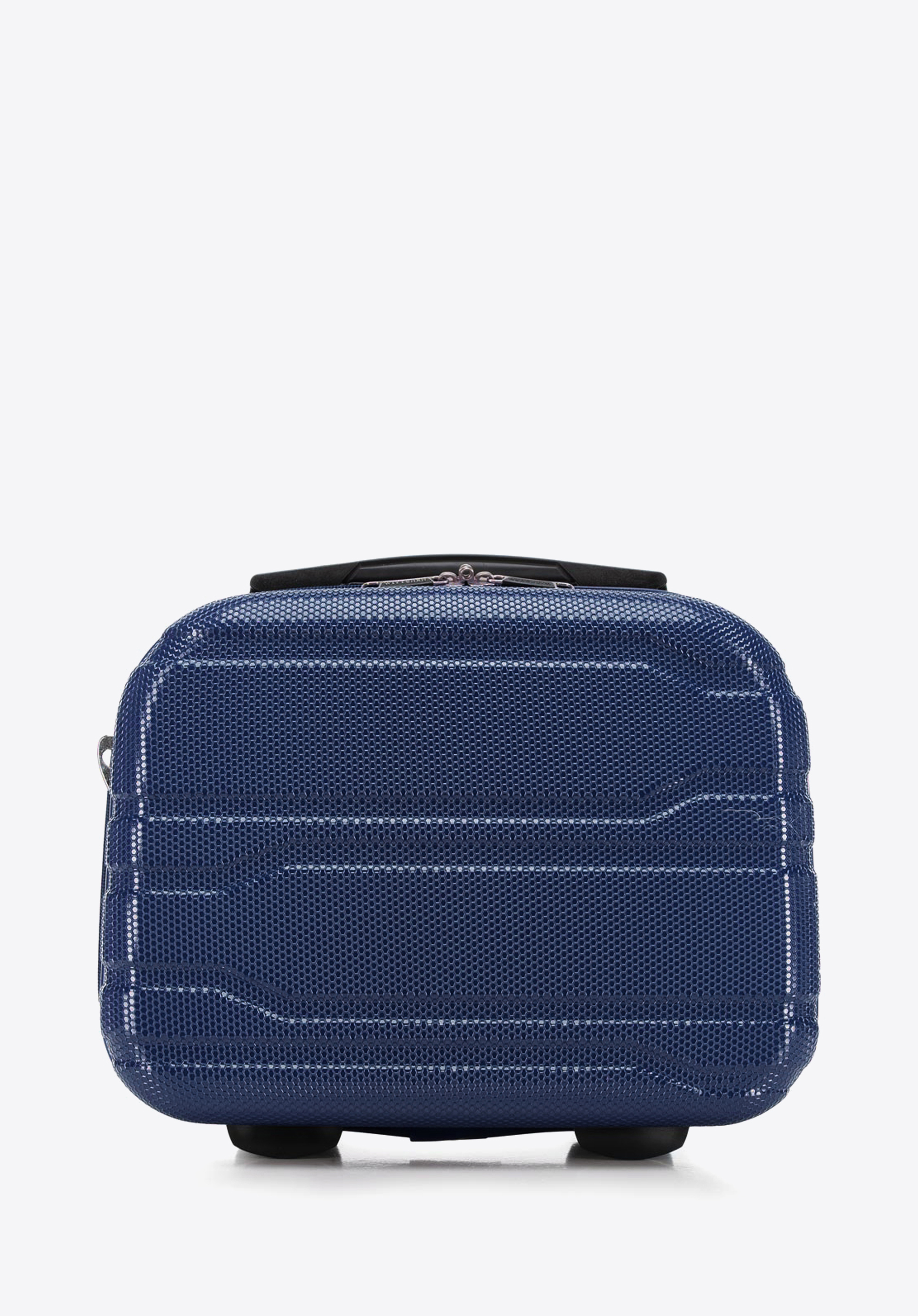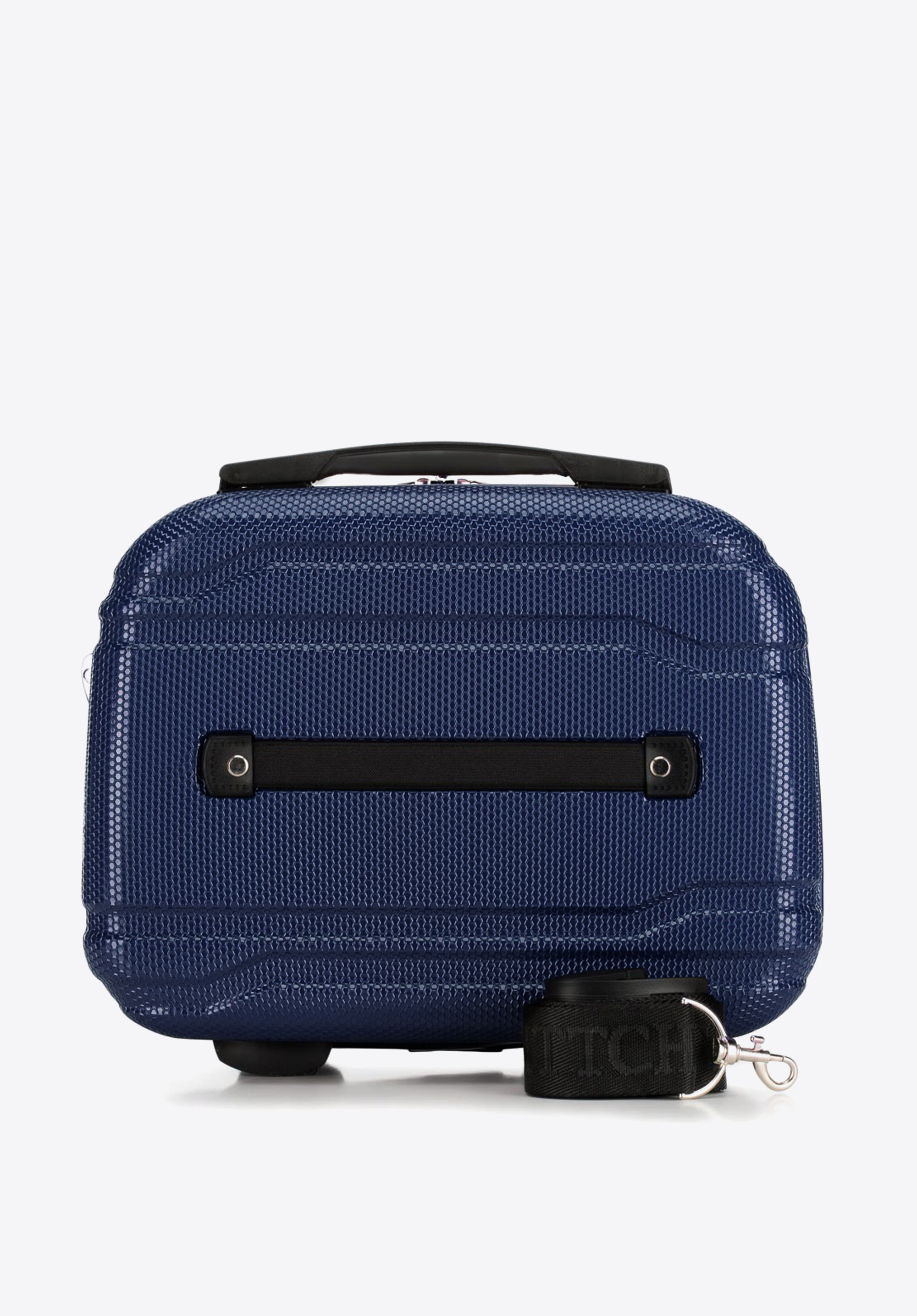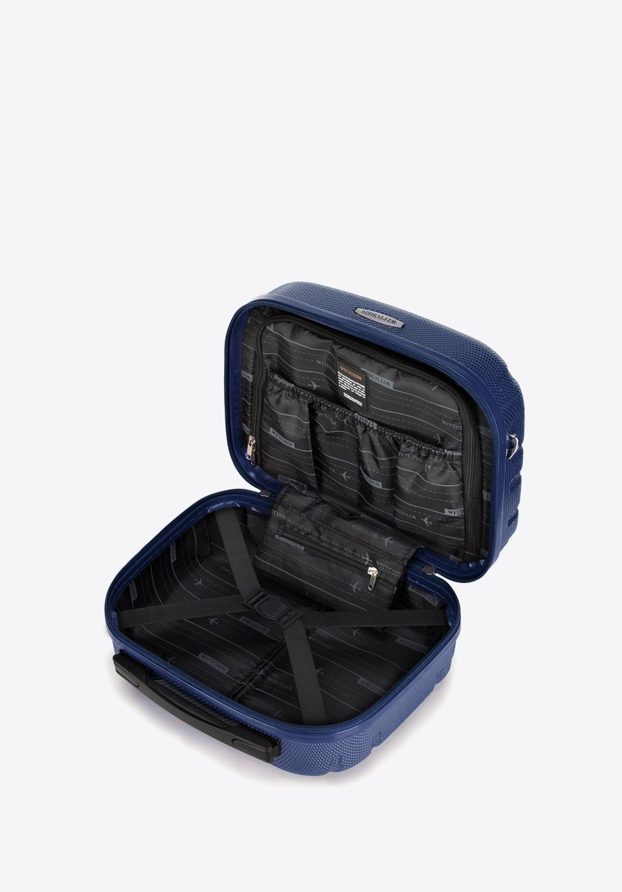 Kosmetyczka z polikarbonu tłoczona świetnie sprawdzi się w podróży, gdy chcesz zabezpieczyć kosmetyki w twardej, eleganckiej formie. Wytrzymały polikarbon, pasy stabilizujące i kieszenie na drobiazgi porządkują wnętrze, a uchwyt, regulowany pasek i pas do mocowania na walizce ułatwiają transport.
