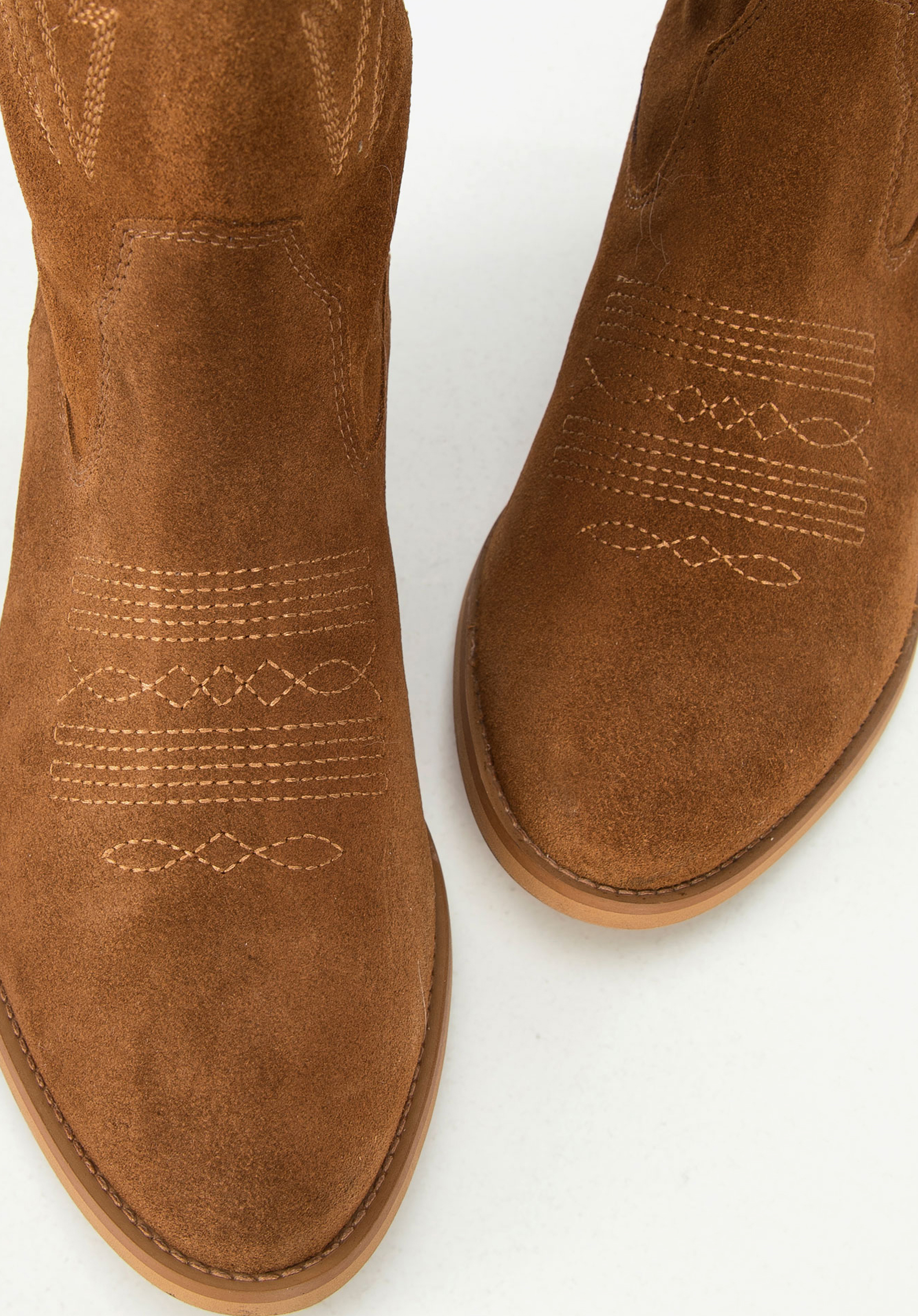 klasyczny kształt kowbojek, ze smukłym noskiem w szpic i niewielkim zwężającym się obcasem, wyglądać będzie świetnie do zwiewnych sukienek boho czy postrzępionych dżinsów.