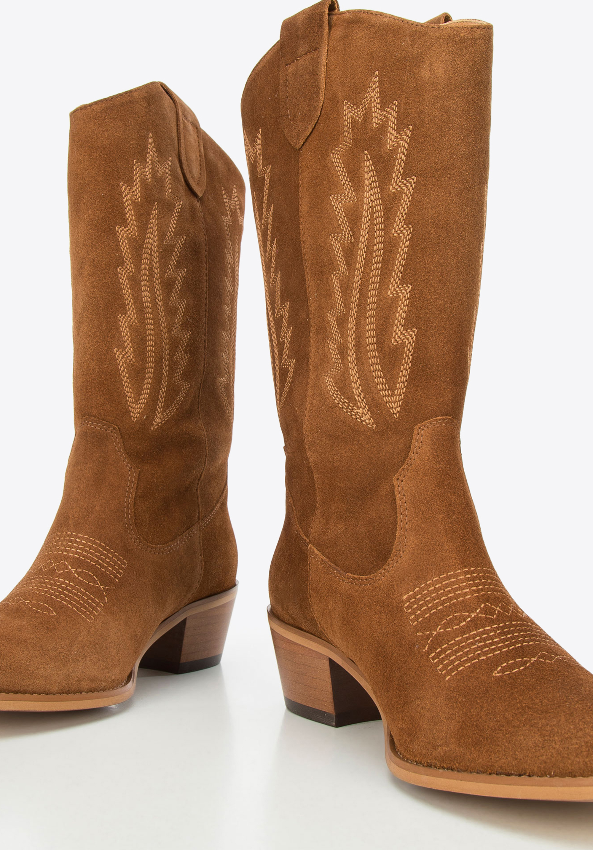 Kowbojki zamszowe haftowane wysokie sprawdzą się w wiosennych i letnich stylizacjach, dodając im charakteru i kobiecej lekkości. Hafty, naturalny zamsz i klasyczny fason z delikatnie zwężanym obcasem tworzą model, który pięknie komponuje się ze zwiewnymi sukienkami i dżinsami.