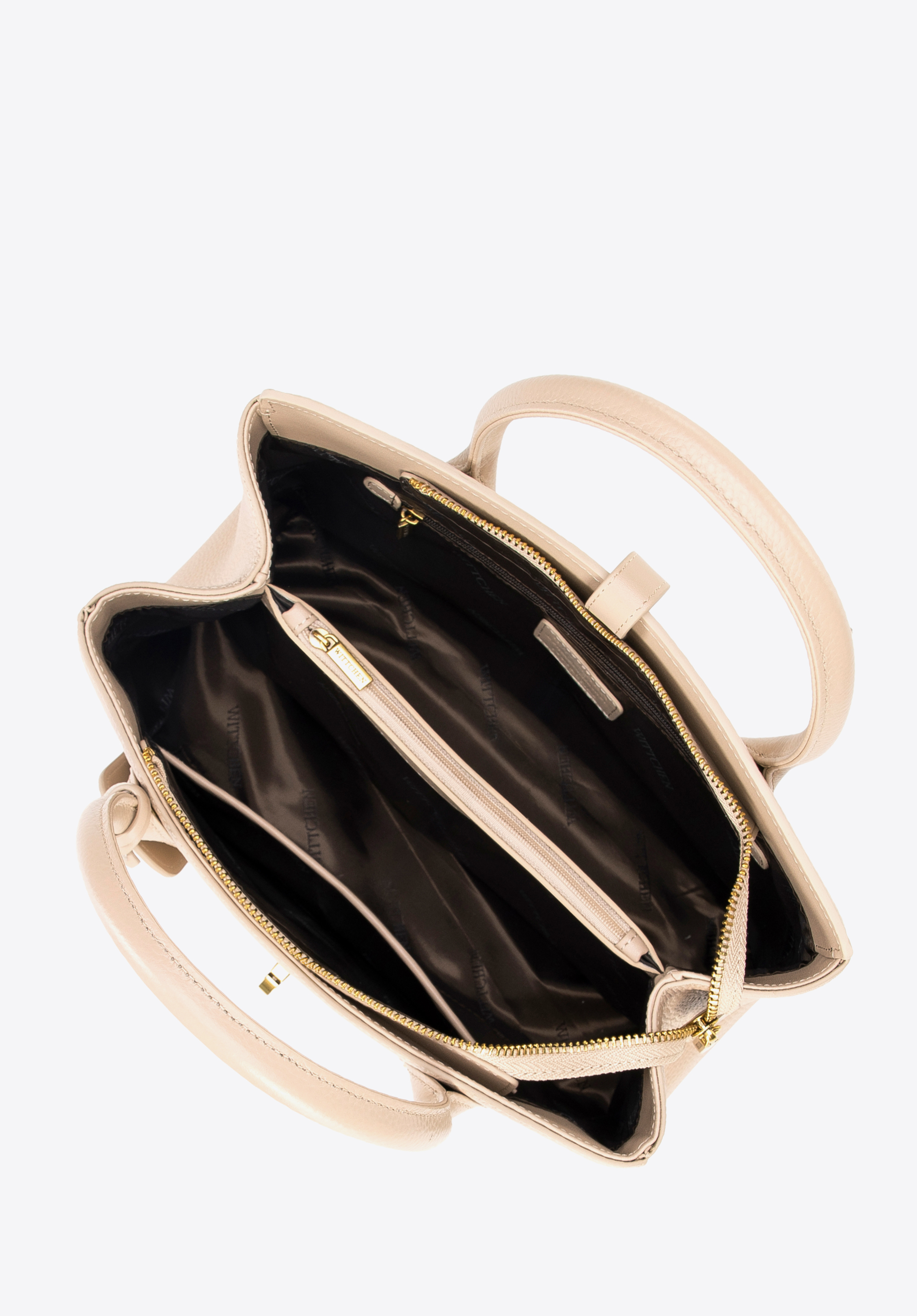 - Dwie wygodne rączki: Pozwalają komfortowo nosić torbę w dłoni, dodając jej elegancji.