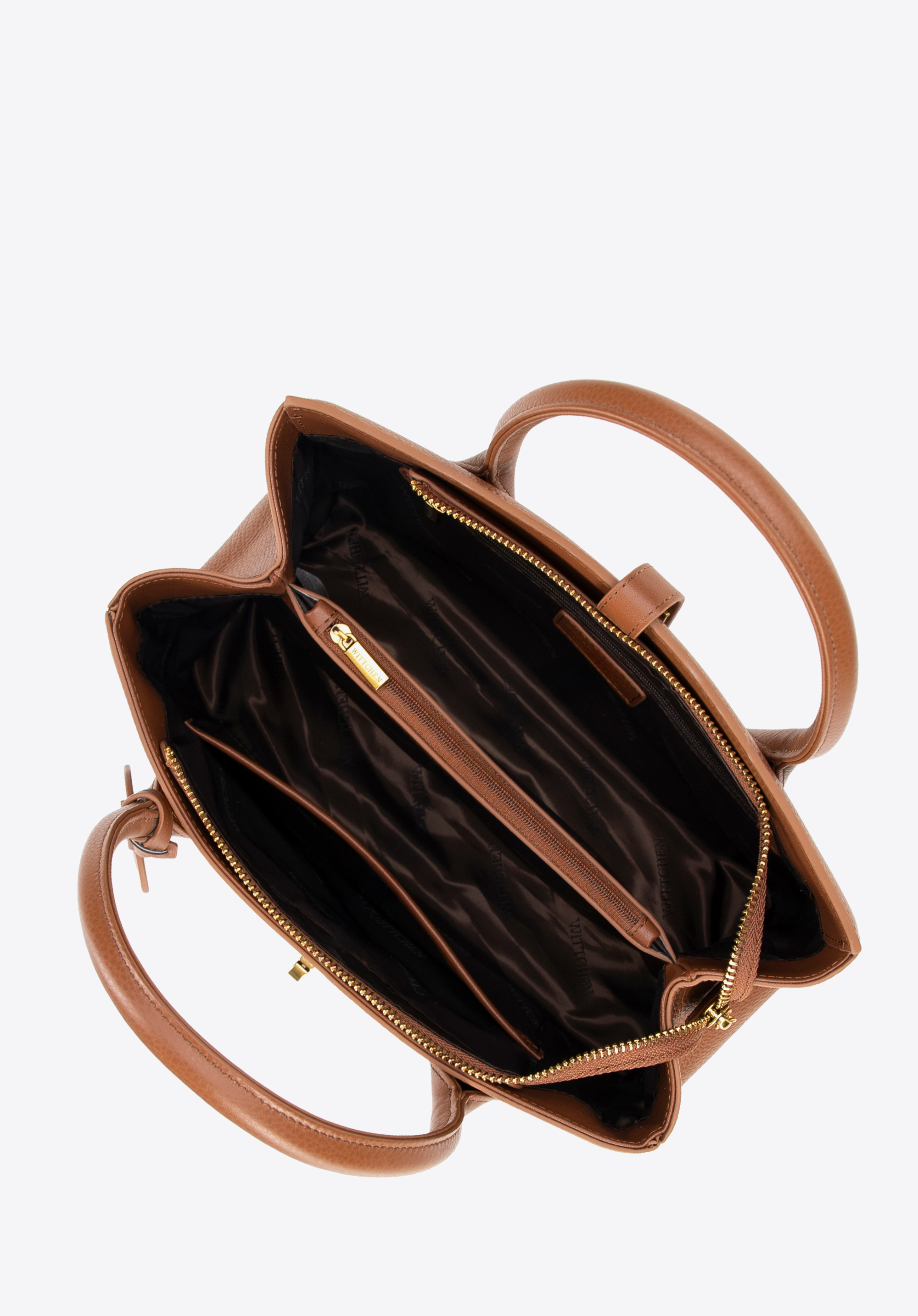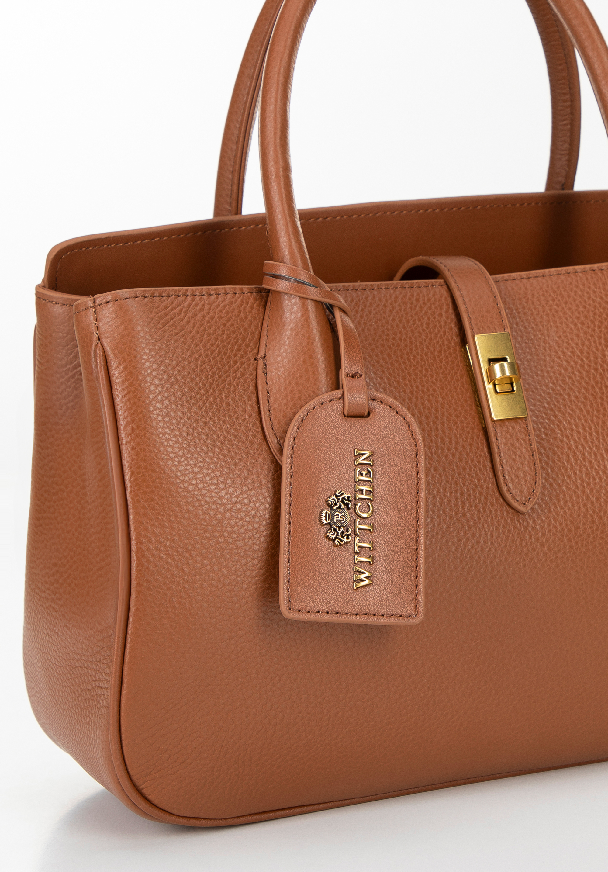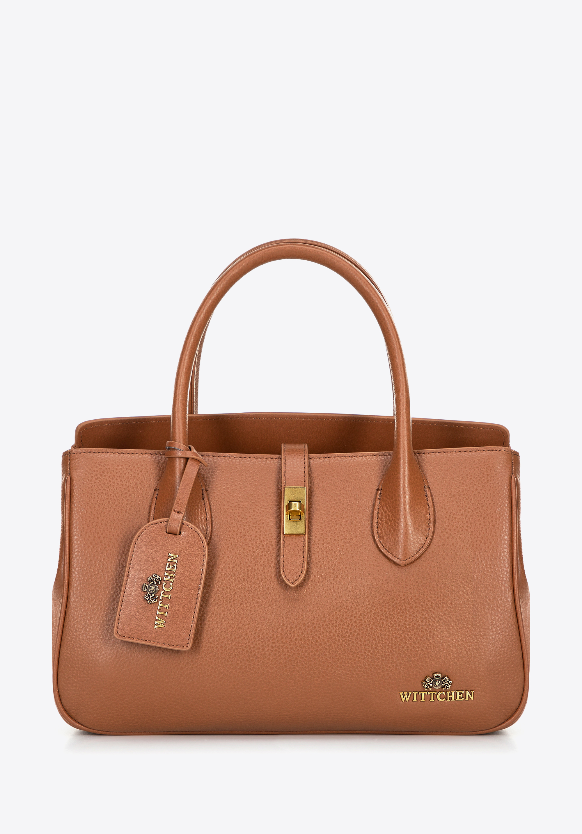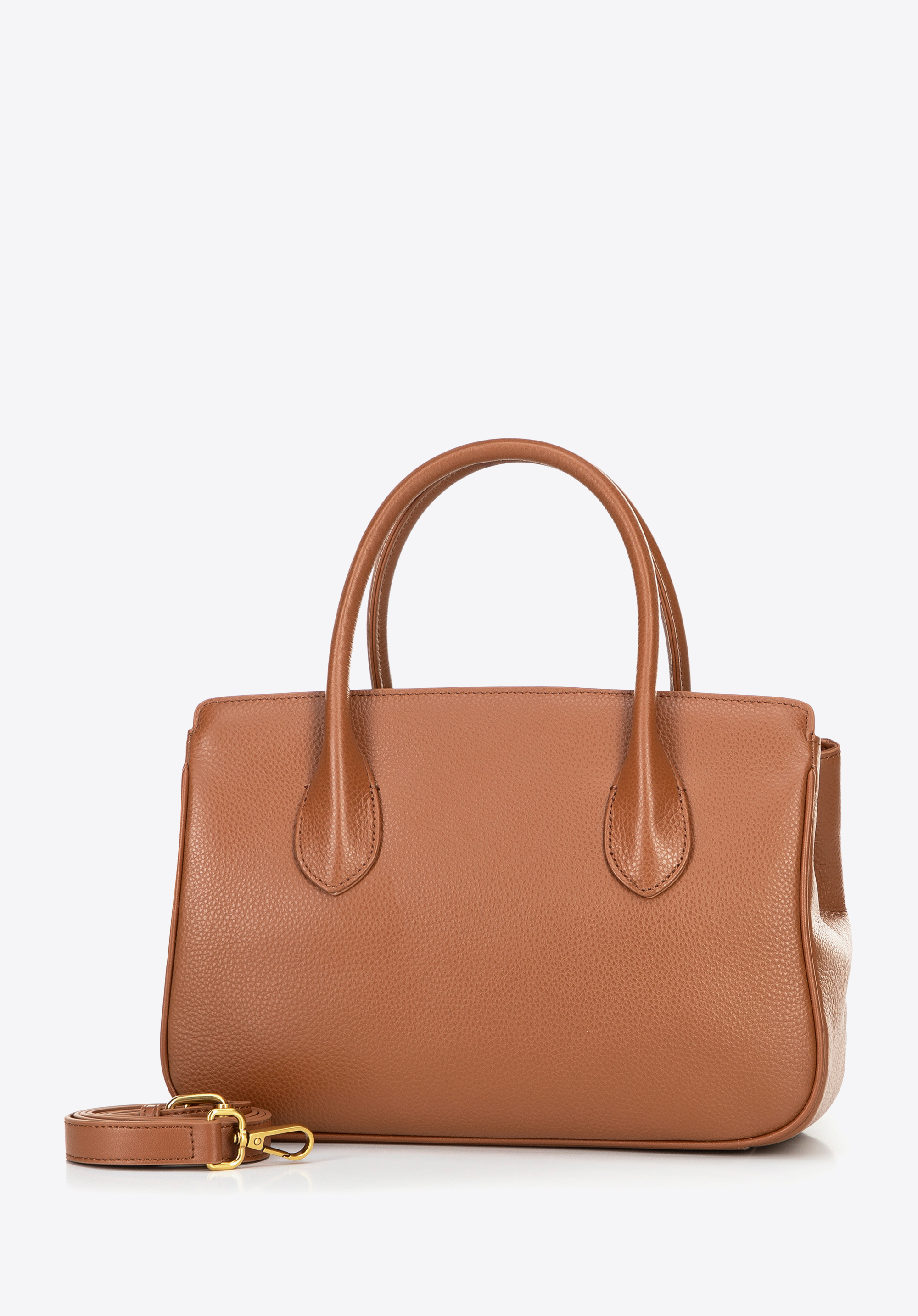 Kuferek ze skóry naturalnej z chwostem i klamrą brązowy