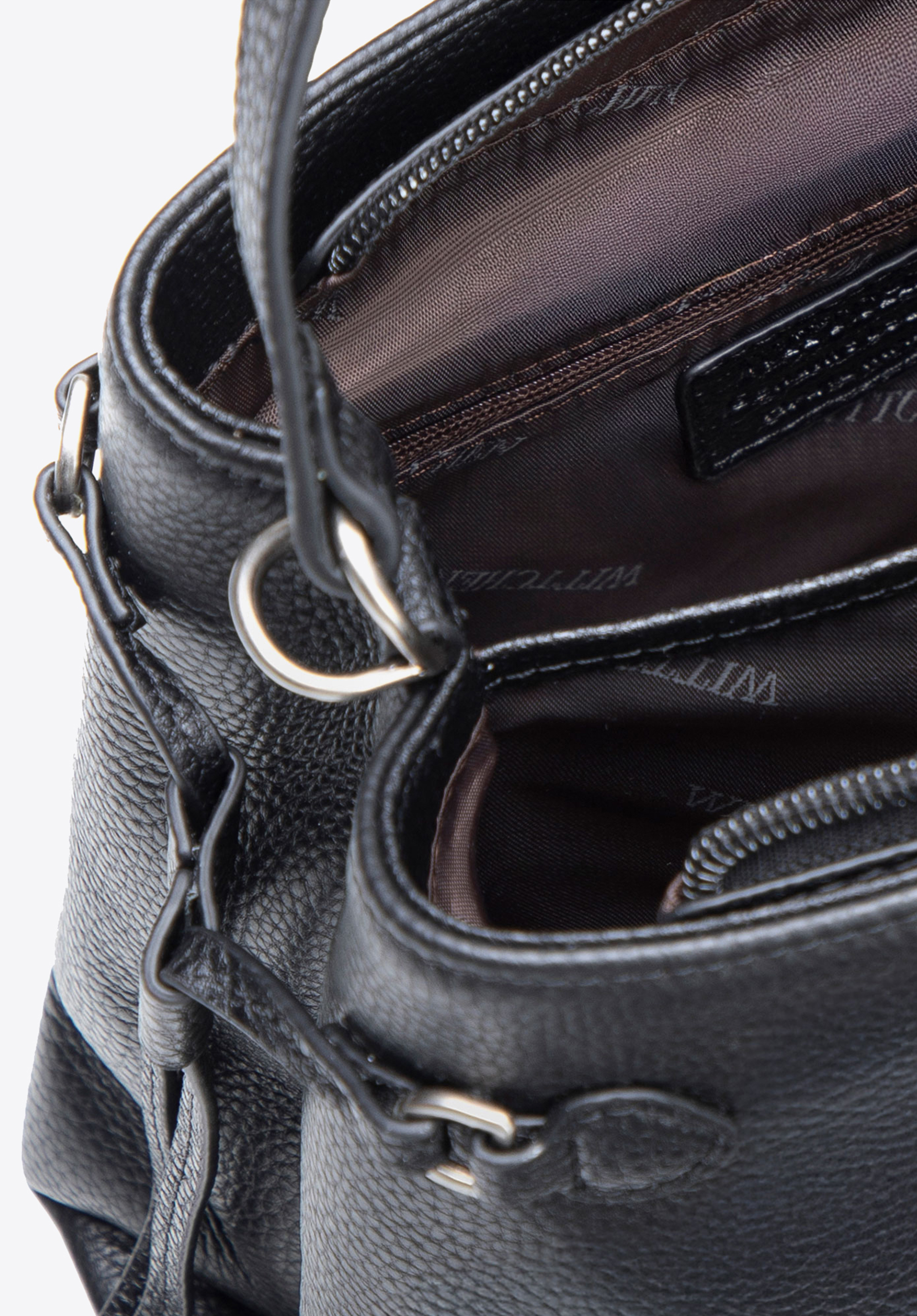 - Przemyślana organizacja: Dwie komory ułatwiają utrzymanie porządku, a dwie wewnętrzne kieszenie — w tym jedna zapinana na zamek — pozwalają szybko odnaleźć telefon, dokumenty czy klucze.