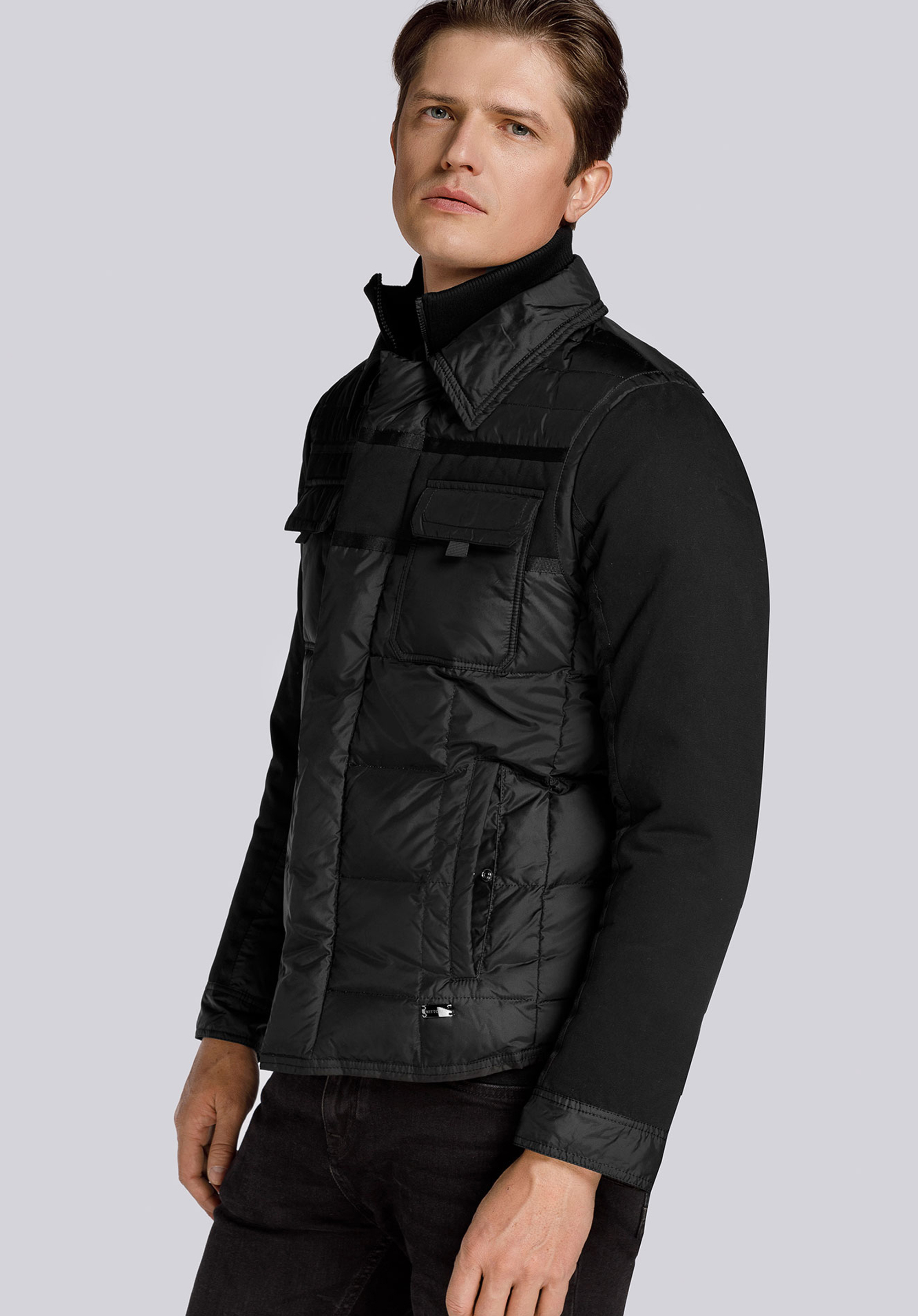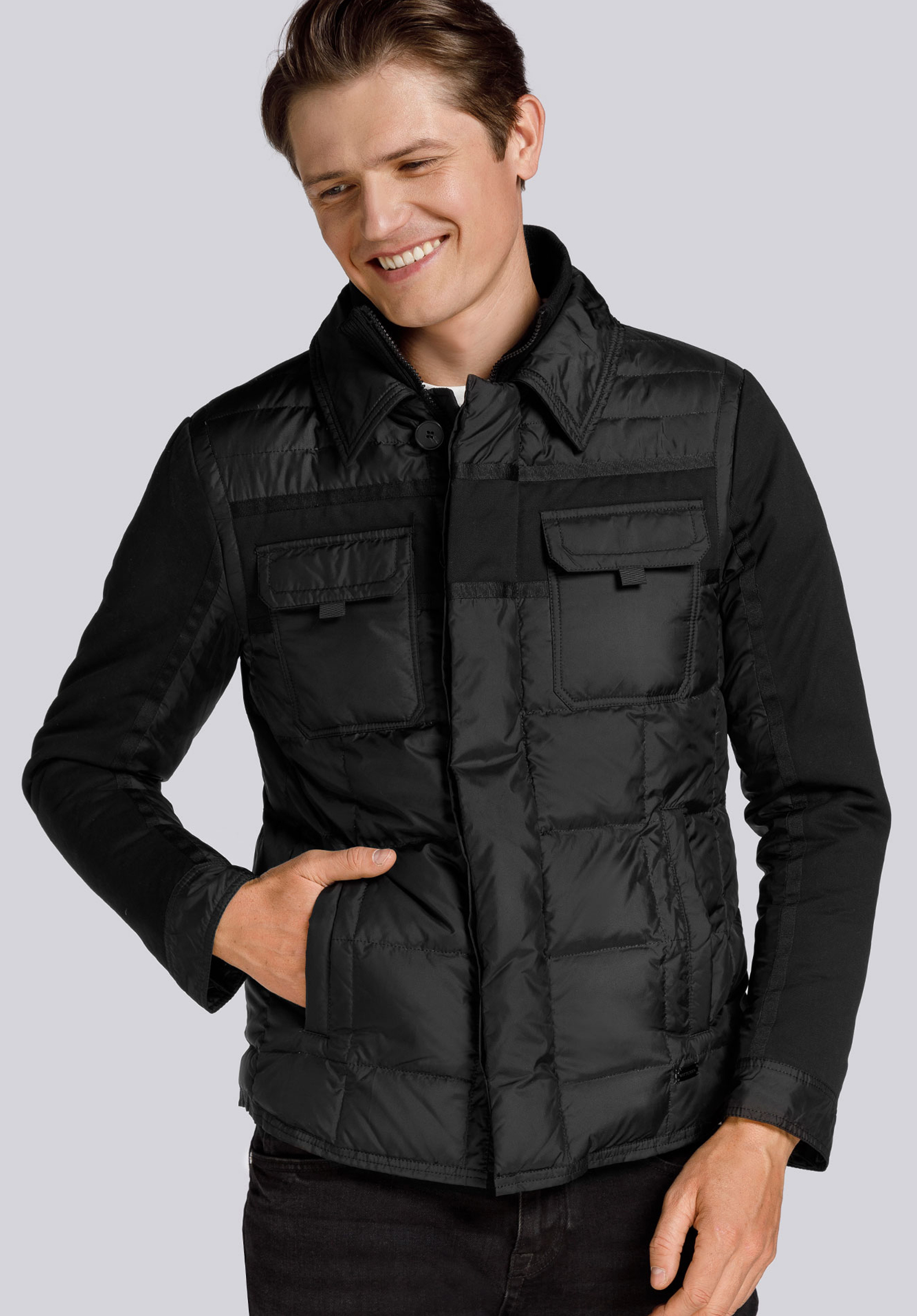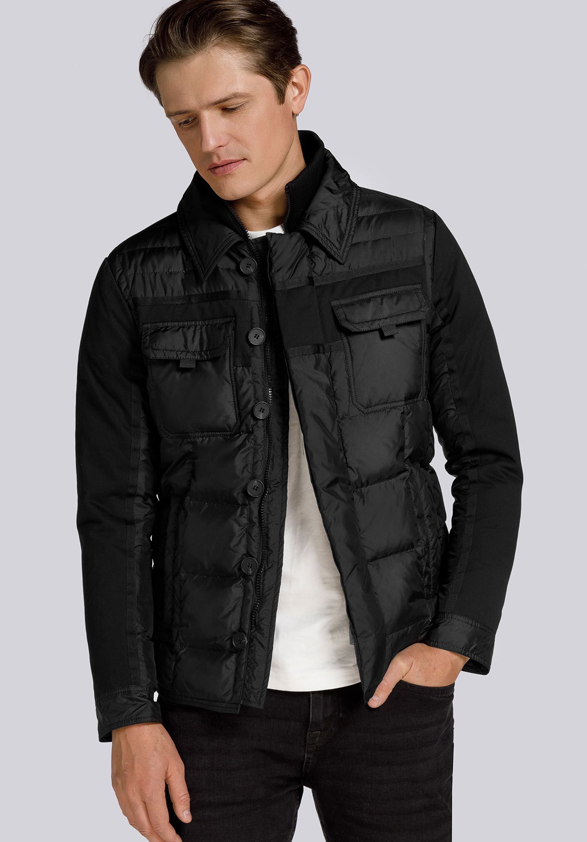 Casualowa kurtka męska z pikowaniem. Całość przysłonięta listwą zapinaną na guziki, która dodatkowo chroni przed zimnem. Kurtka ocieplana wypełnieniem z naturalnego puchu będzie stanowić skuteczną izolację przed chłodem w czasie niekorzystnych warunków pogodowych.