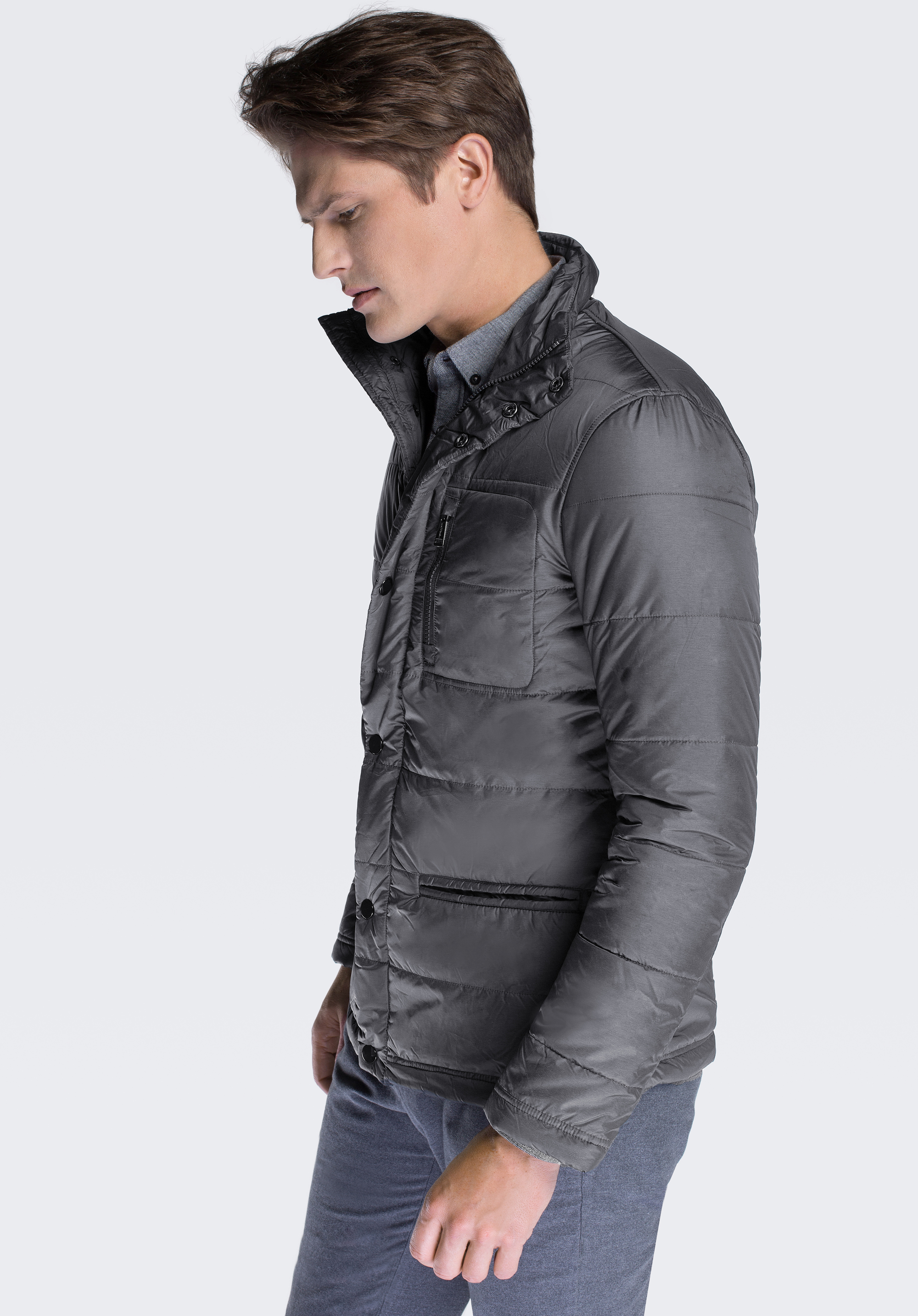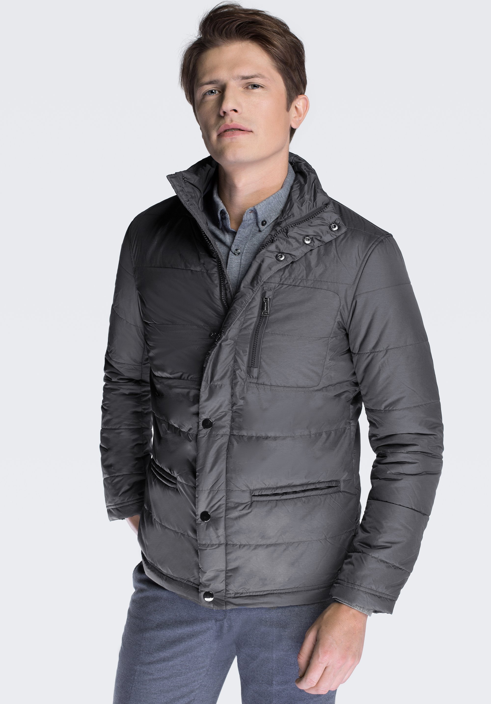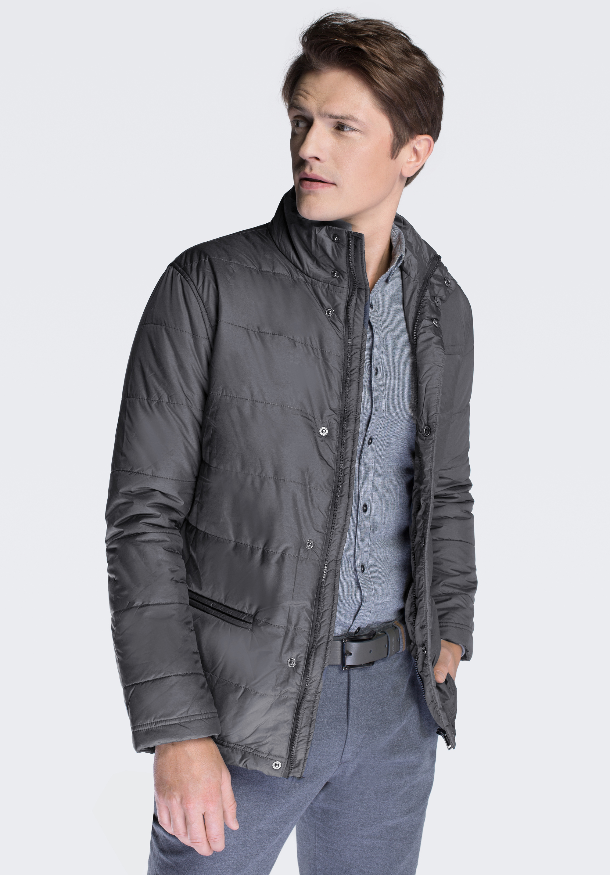 Kurtka męska z zapięciem na zamek i napy szara