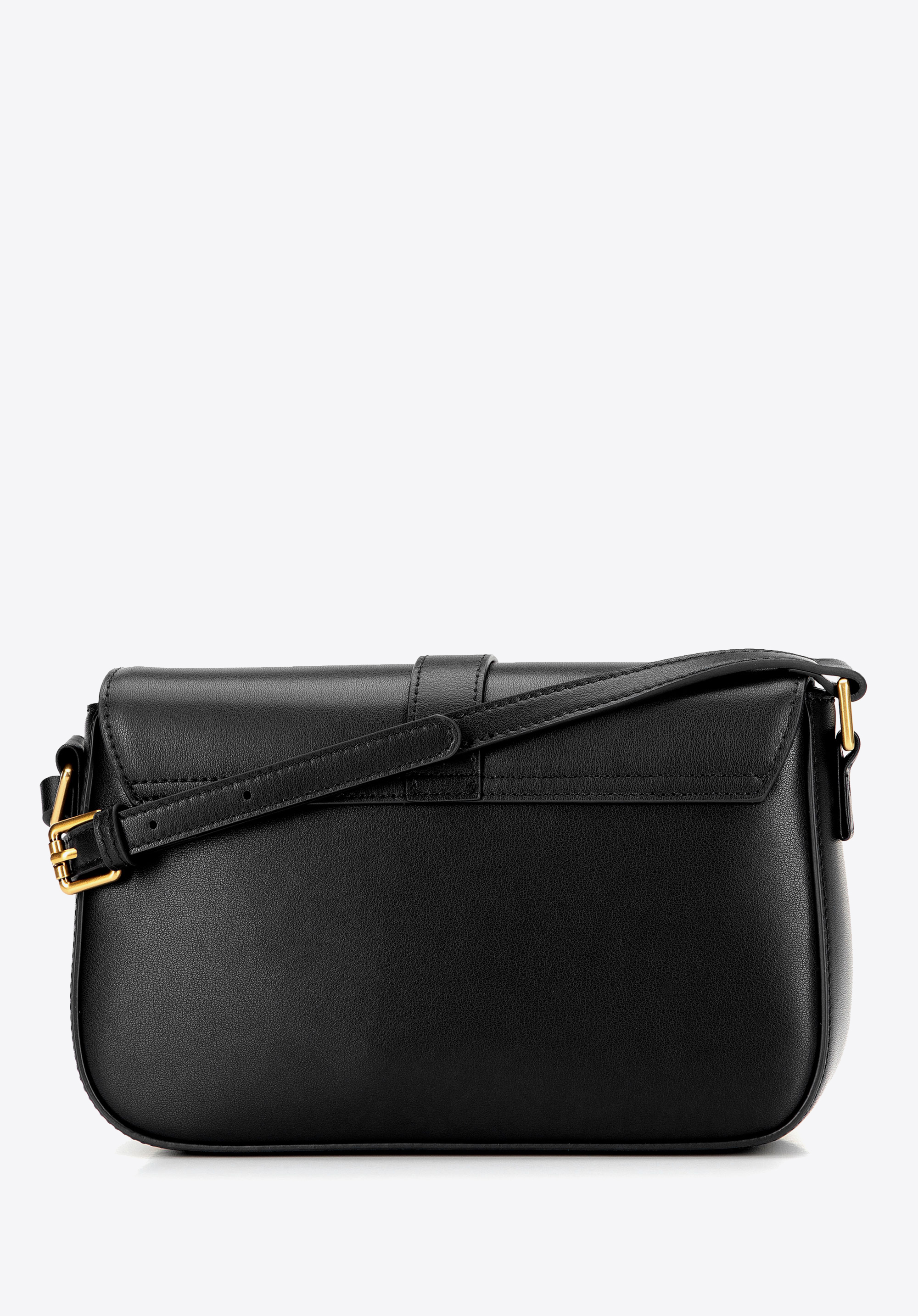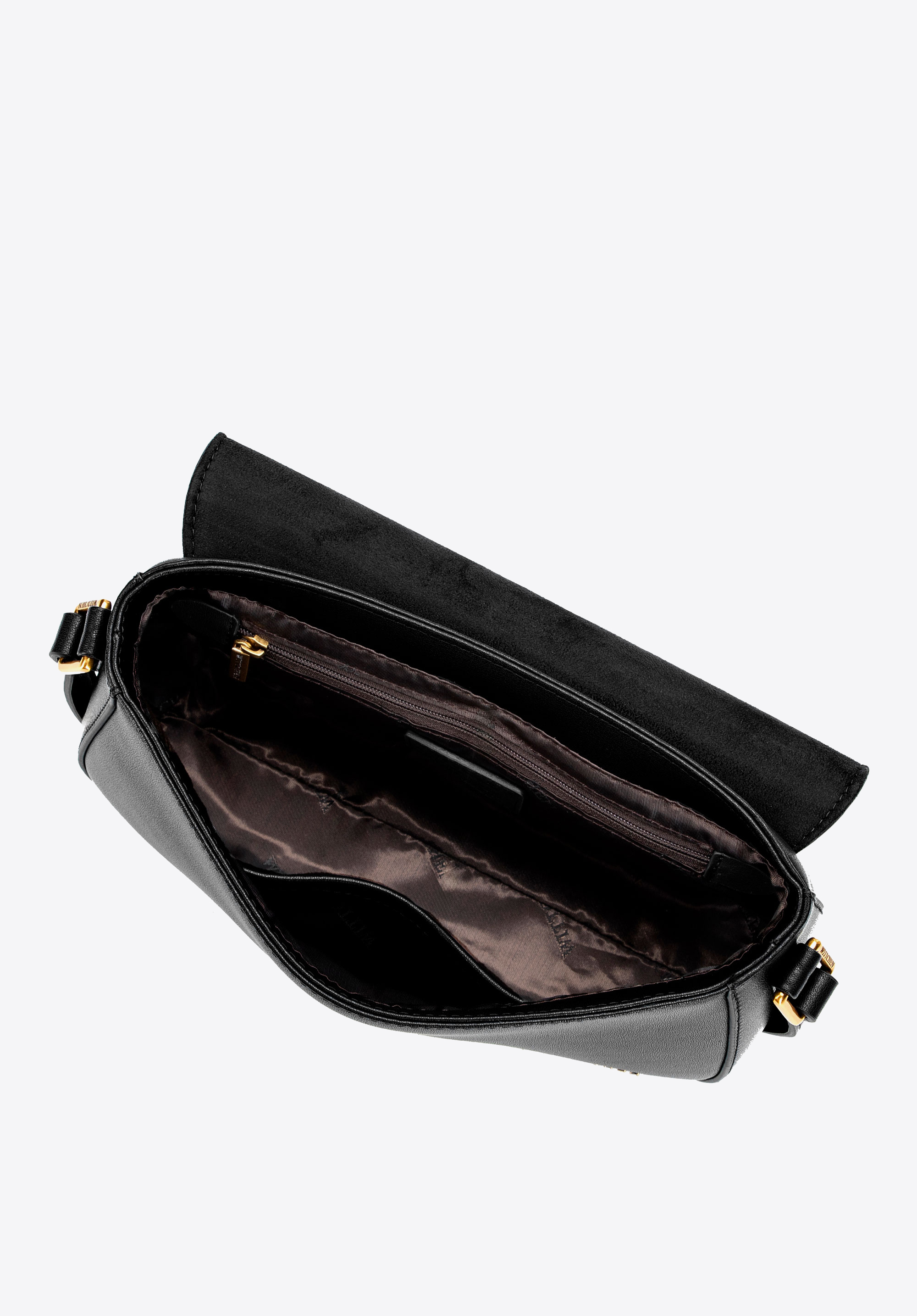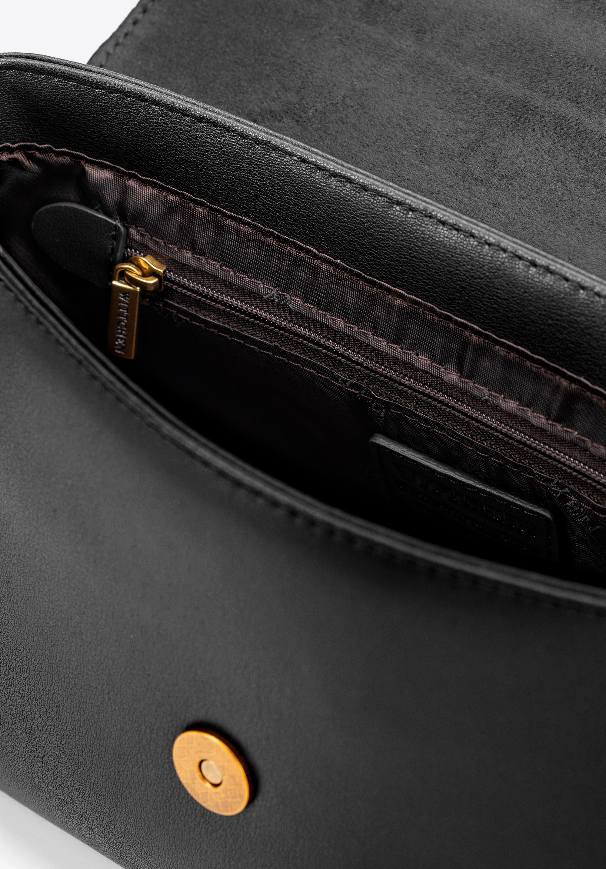 - Design: Minimalistyczny, elegancki kształt torby uzupełnia dekoracyjny pasek na klapie, który dodaje torbie charakteru i subtelnej stylizacji.