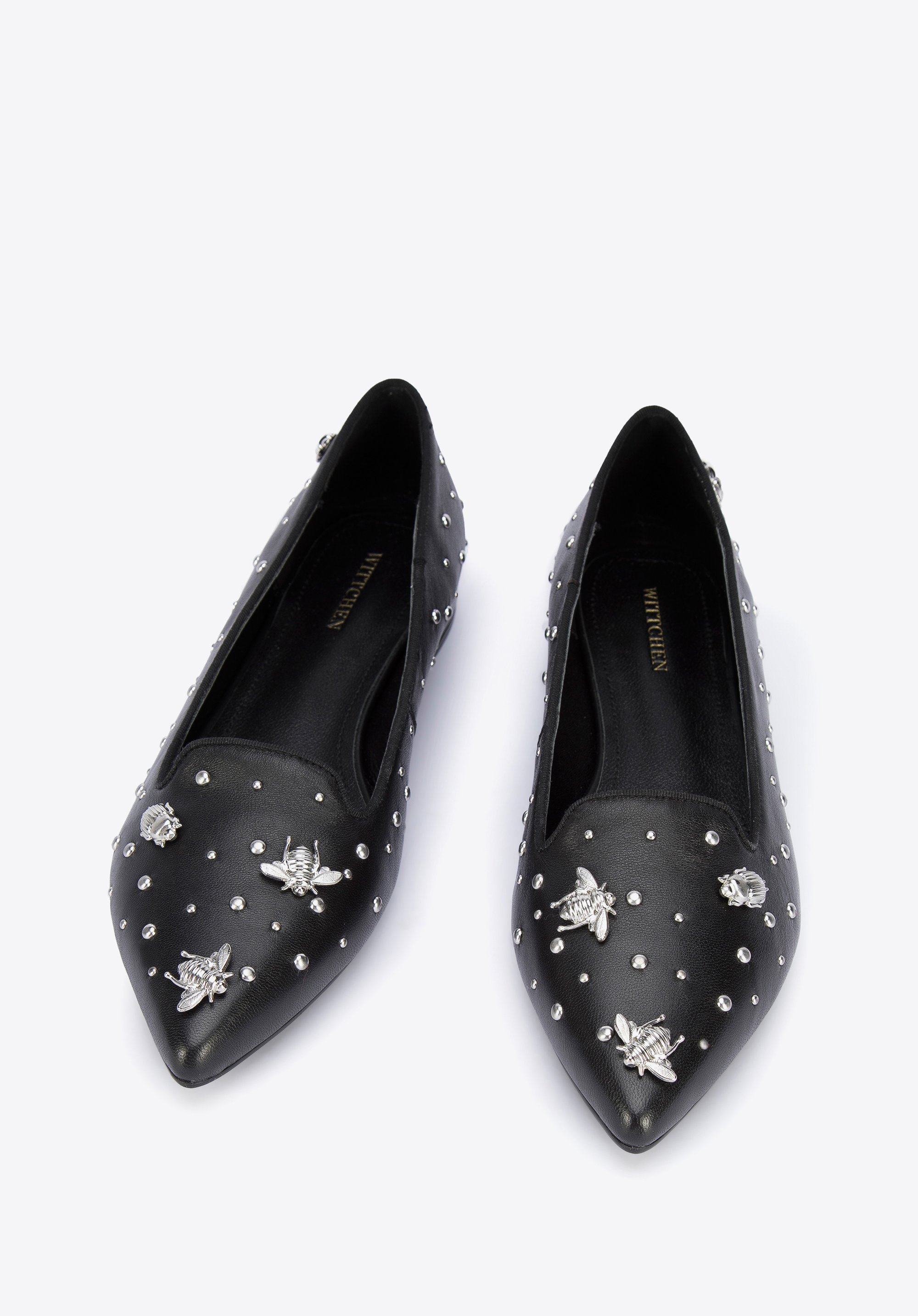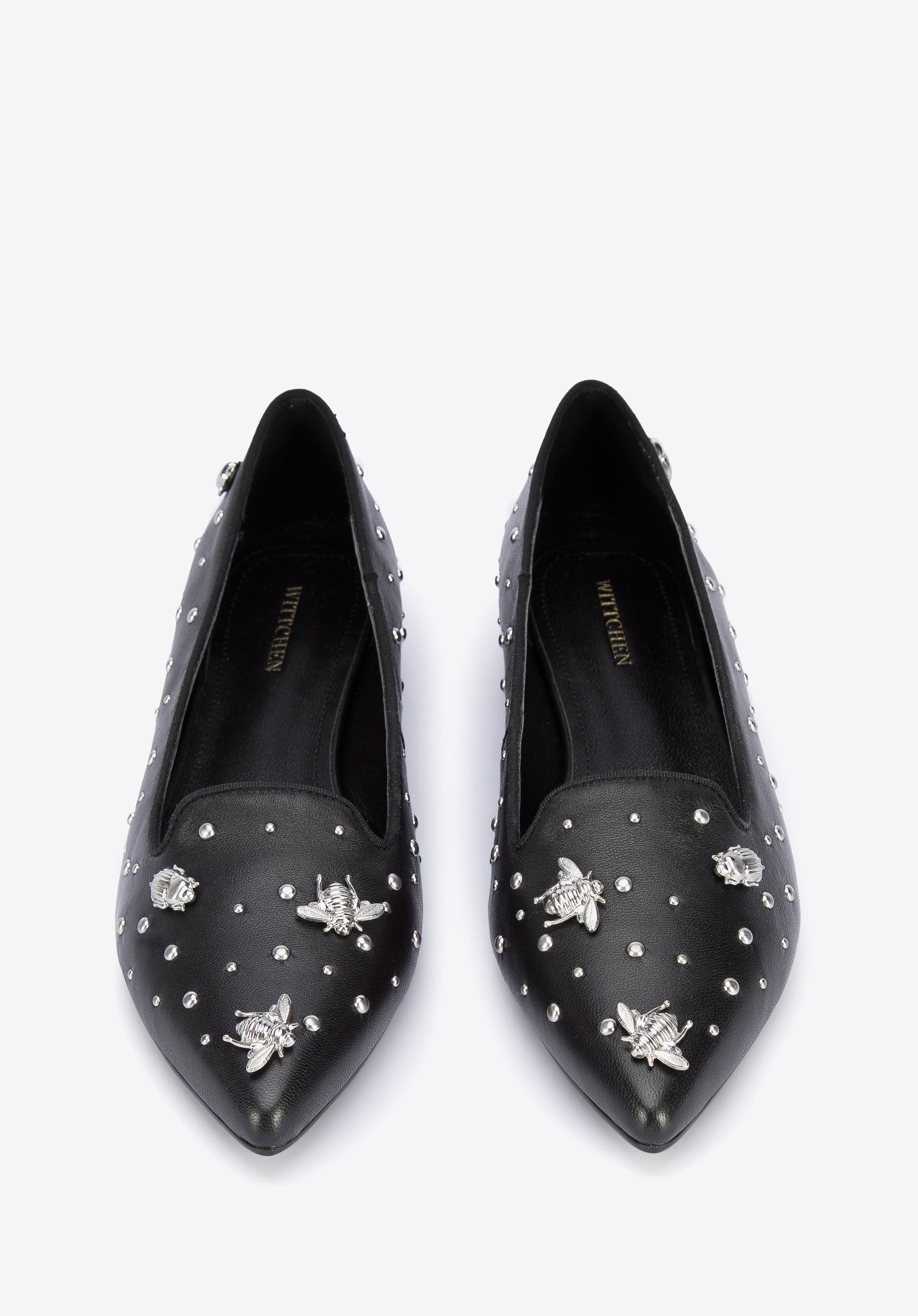 Fason z noskiem w szpic wysmukla stopę, a dzięki skórzanej wkładce i miękkiej wyściółce komfortowo przechodzisz w nich przez cały dzień. Noś je na przykład do spódnicy mini i koszuli lub do dopasowanych spodni i t-shirtu – będą pasowały niemal do wszystkiego i oryginalnie dopełnią Twoje stylizacje. Lordsy skórzane z ćwiekami w kształcie owadów to świetny wybór dla miłośniczek oryginalnych dodatków.