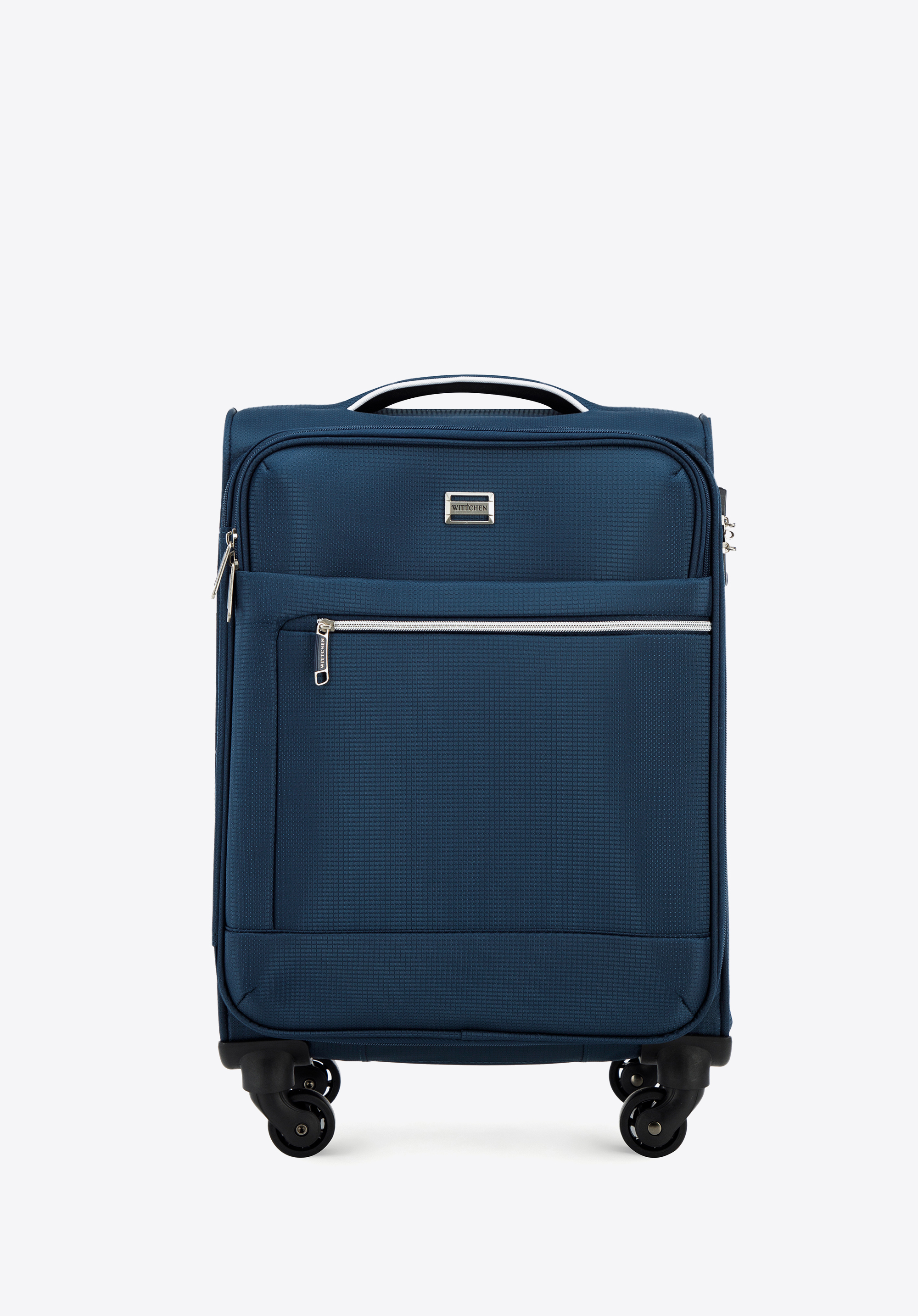 czterem pojedynczym kółkom wygodnie będzie ją prowadzić. Mała walizka miękka z błyszczącym suwakiem z przodu to świetny wybór na weekendowy wyjazd lub podróż służbową.