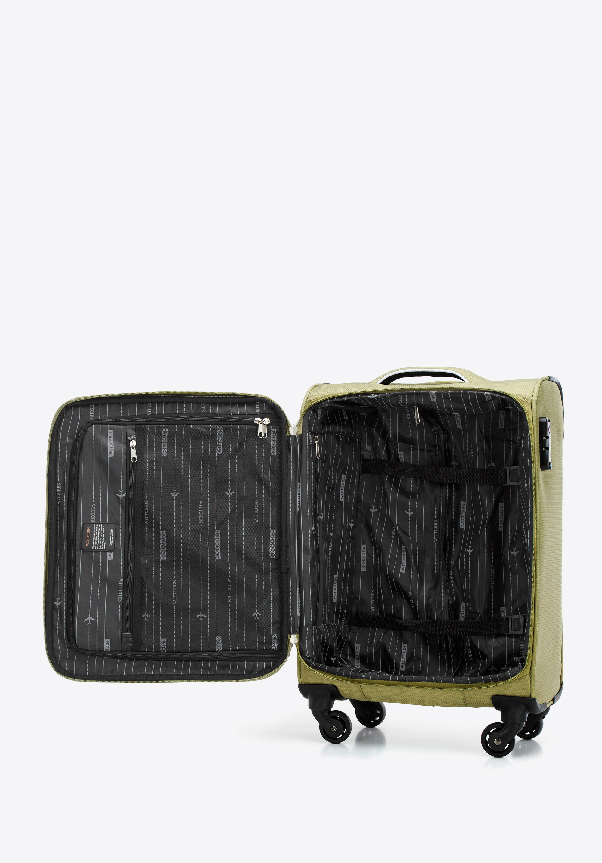 - zamek z szyfrem TSA – bardzo przydatny w przypadku rewizji bagażu przez służby celne – gwarantuje on bezinwazyjne otwarcie walizki oraz jej ponowne zamknięcie, bez uszkodzenia zamka;