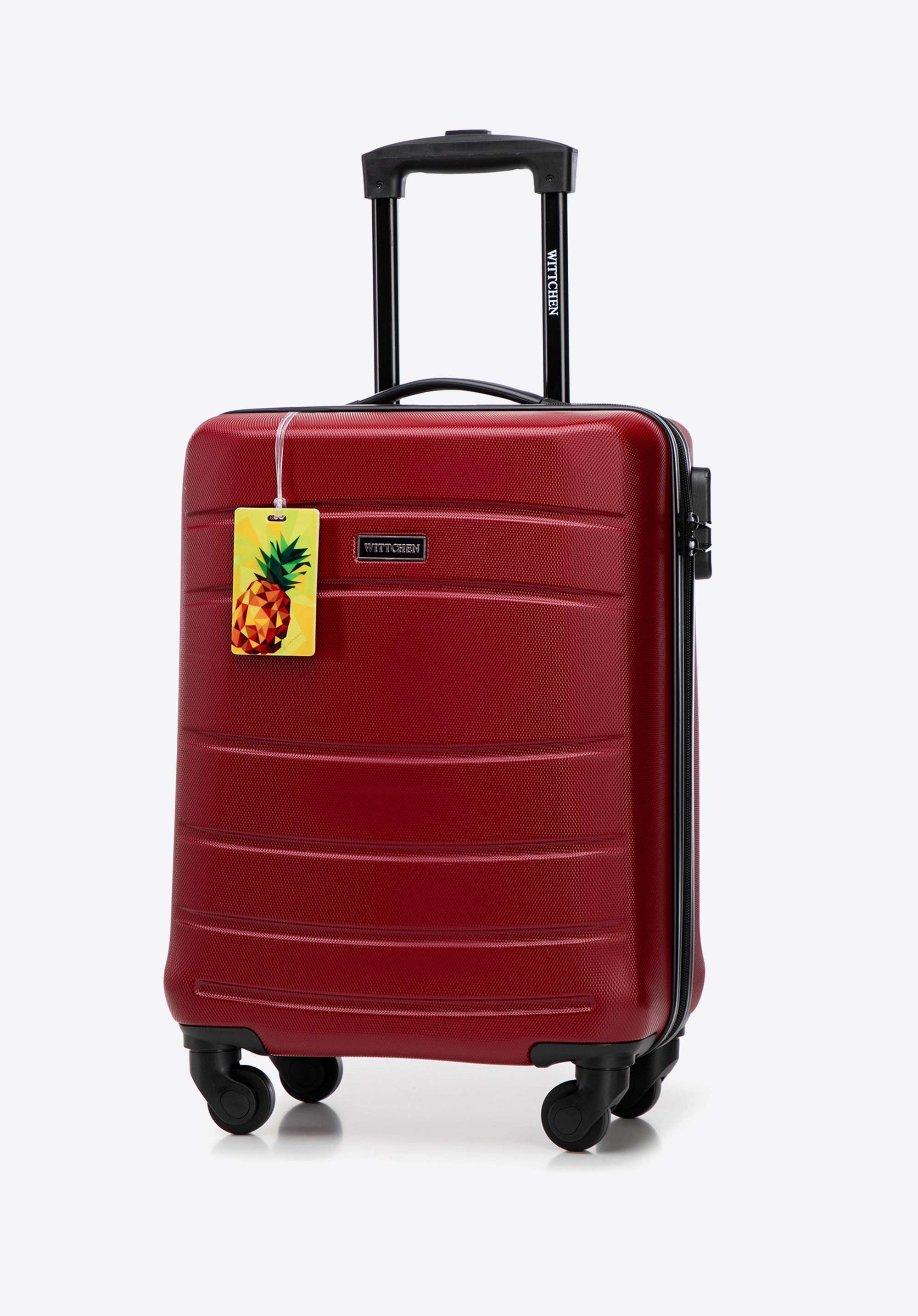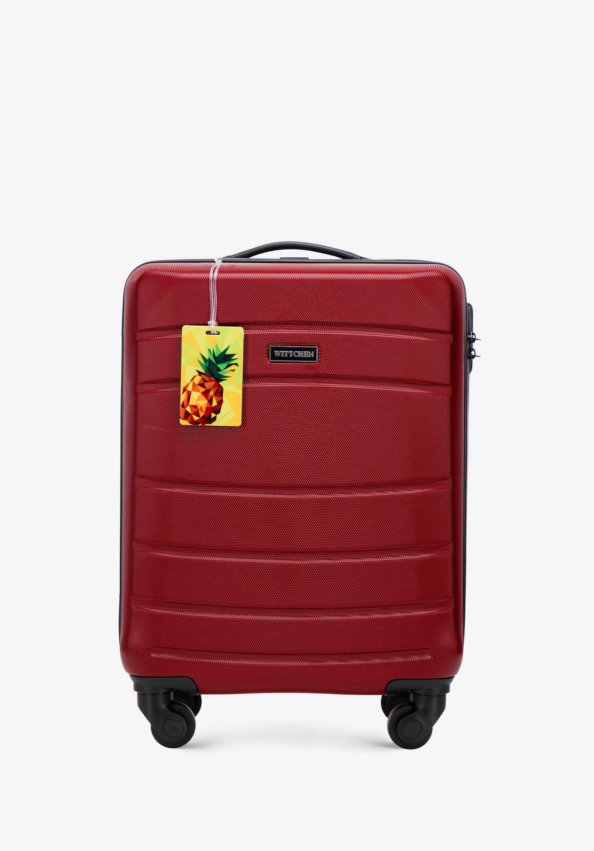 Walizka kabinowa z ABS - u żłobiona z identyfikatorem będzie idealna na szybkie wyjazdy i podróże służbowe, gdy chcesz sprawnie przemieszczać się z bagażem podręcznym. Cztery obrotowe kółka, zamek szyfrowy i przemyślane wnętrze z pasami oraz kieszeniami ułatwiają pakowanie, a identyfikator przyspiesza rozpoznanie walizki.