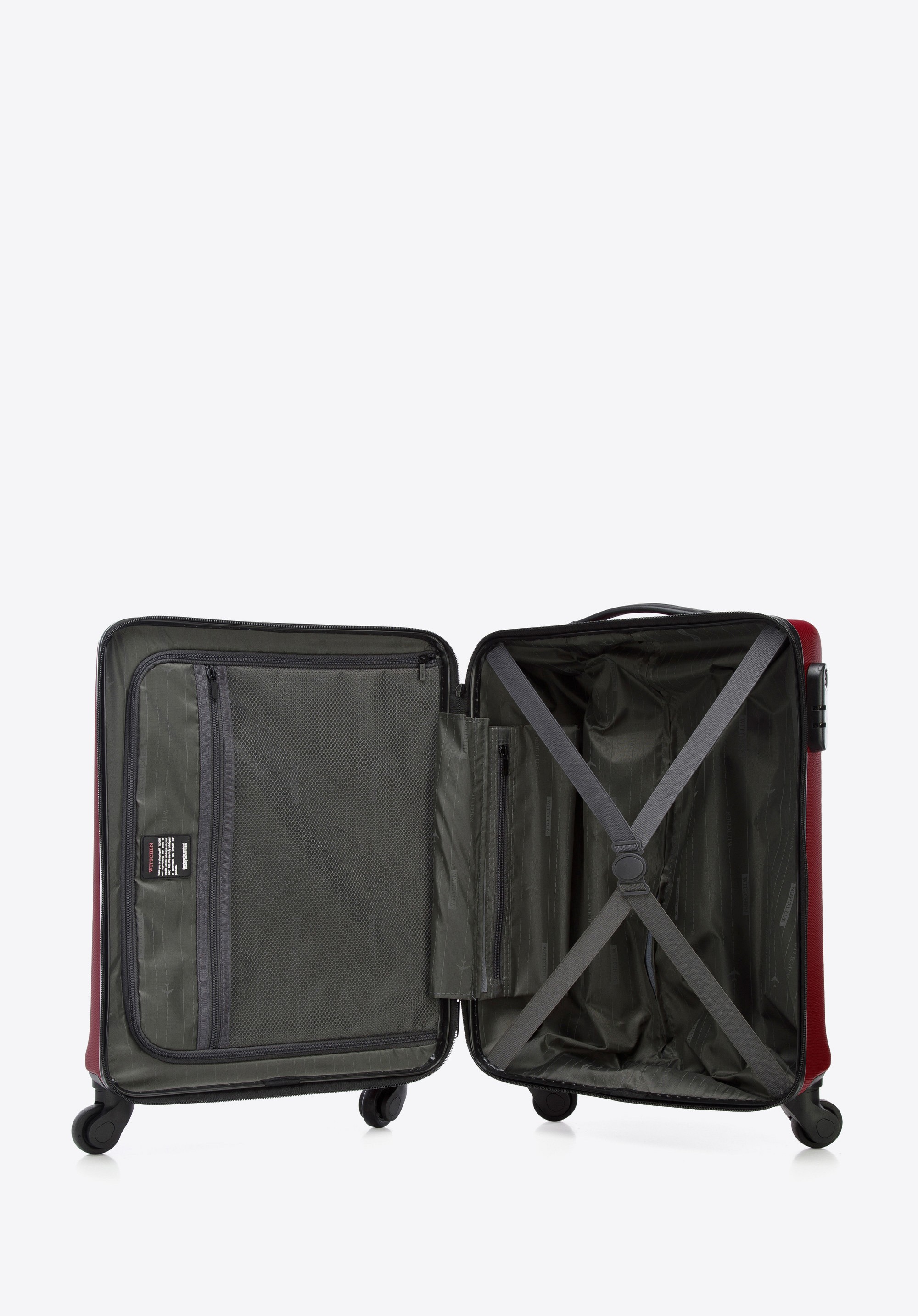 - Dodatkowe kieszenie: Walizka posiada kieszeń z siatki zamykaną na suwak.