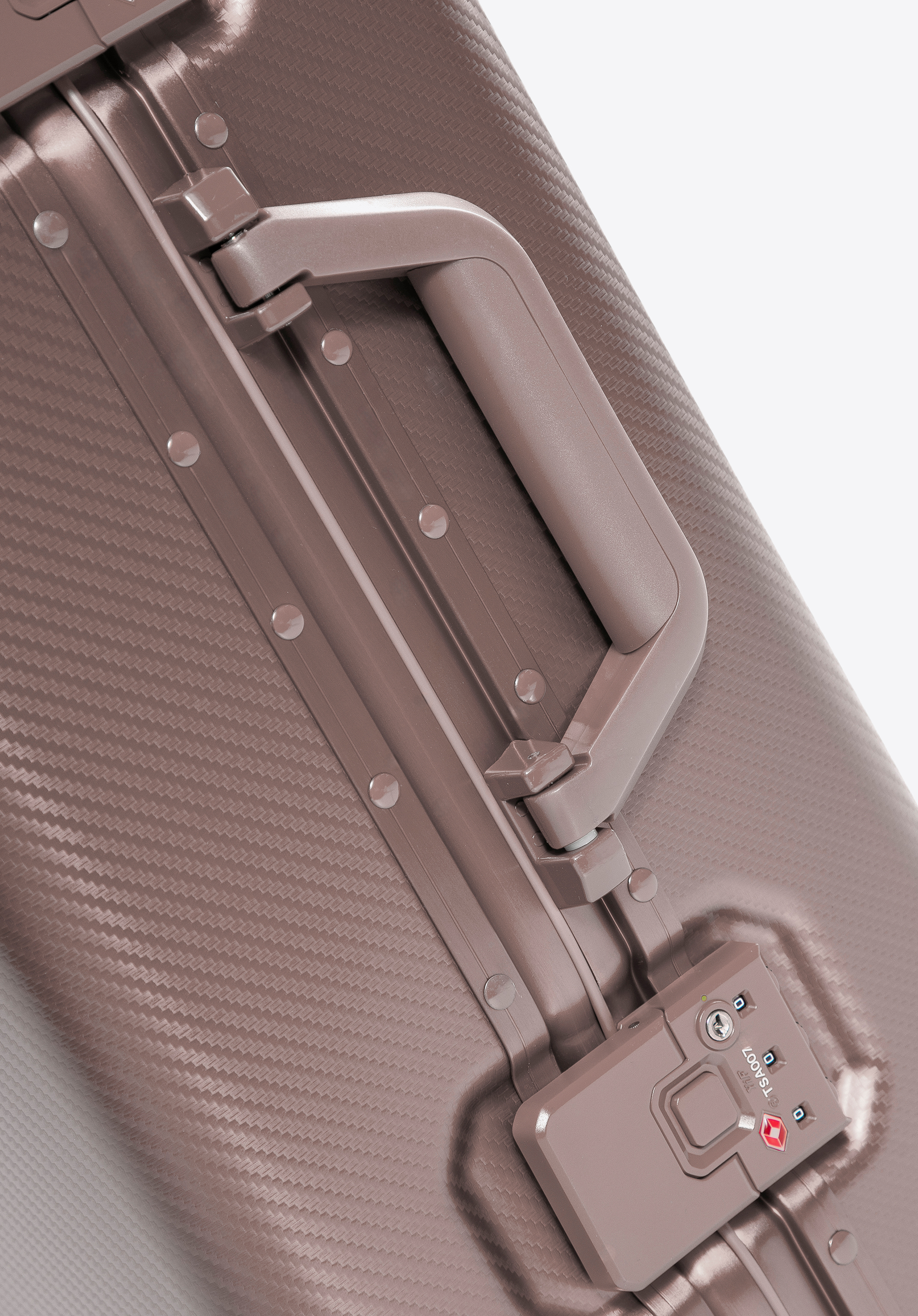 Mała walizka z aluminium na kółkach to idealny wybór na krótkie podróże i wyjazdy służbowe, gdy liczy się bezkompromisowa trwałość i styl. Aluminiowa konstrukcja z nitowanymi wzmocnieniami, zamki TSA oraz przemyślane wnętrze z kieszenią na płyny pozwalają podróżować bezpiecznie i z perfekcyjną organizacją.