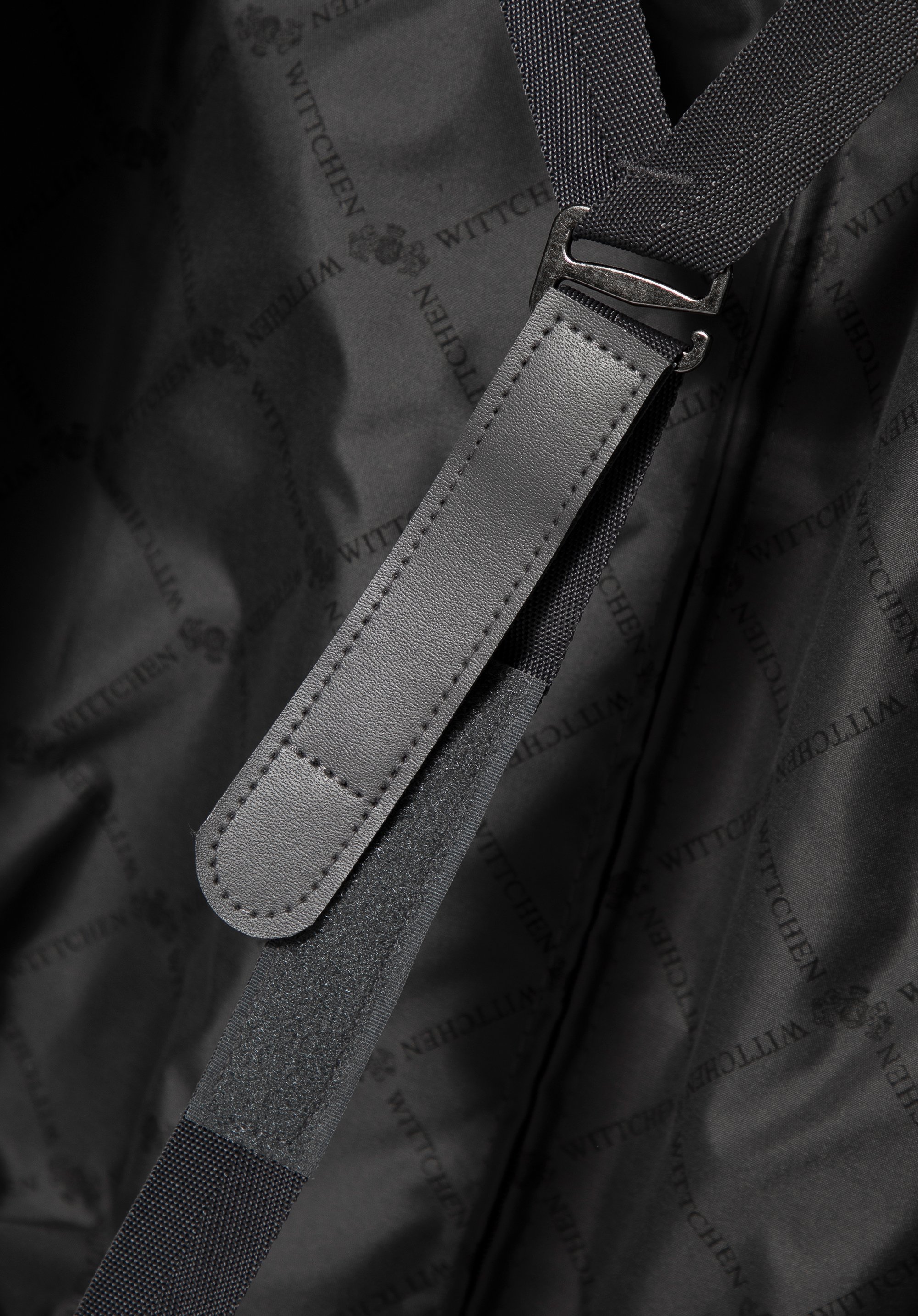 - Praktyczne wnętrze: Jedna komora zamykana na suwak, wyposażona w małą kieszeń z siatki oraz wodoodporną kieszeń PVC na płyny. Druga komora zabezpieczona regulowanymi pasami, które utrzymują ubrania na miejscu.