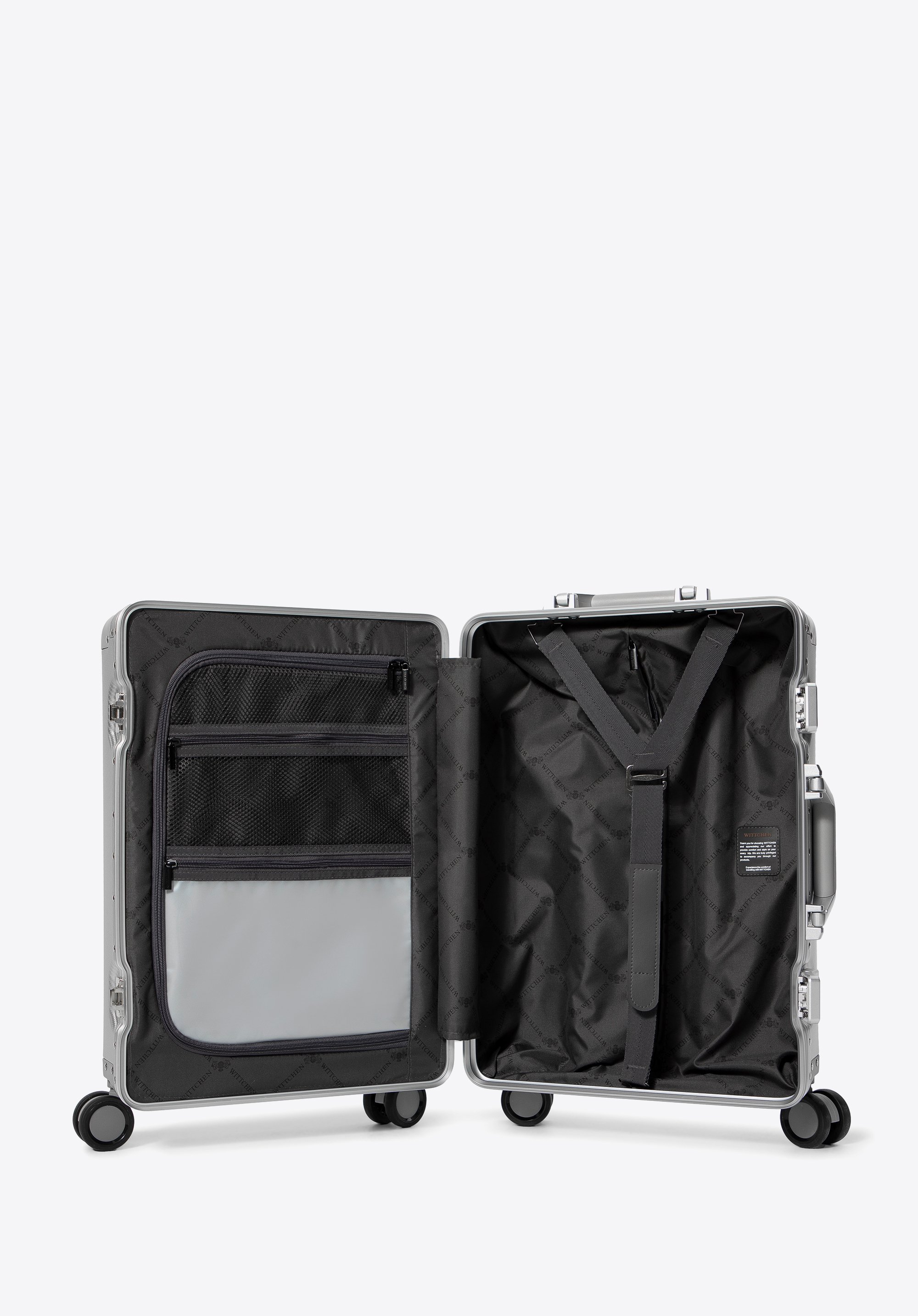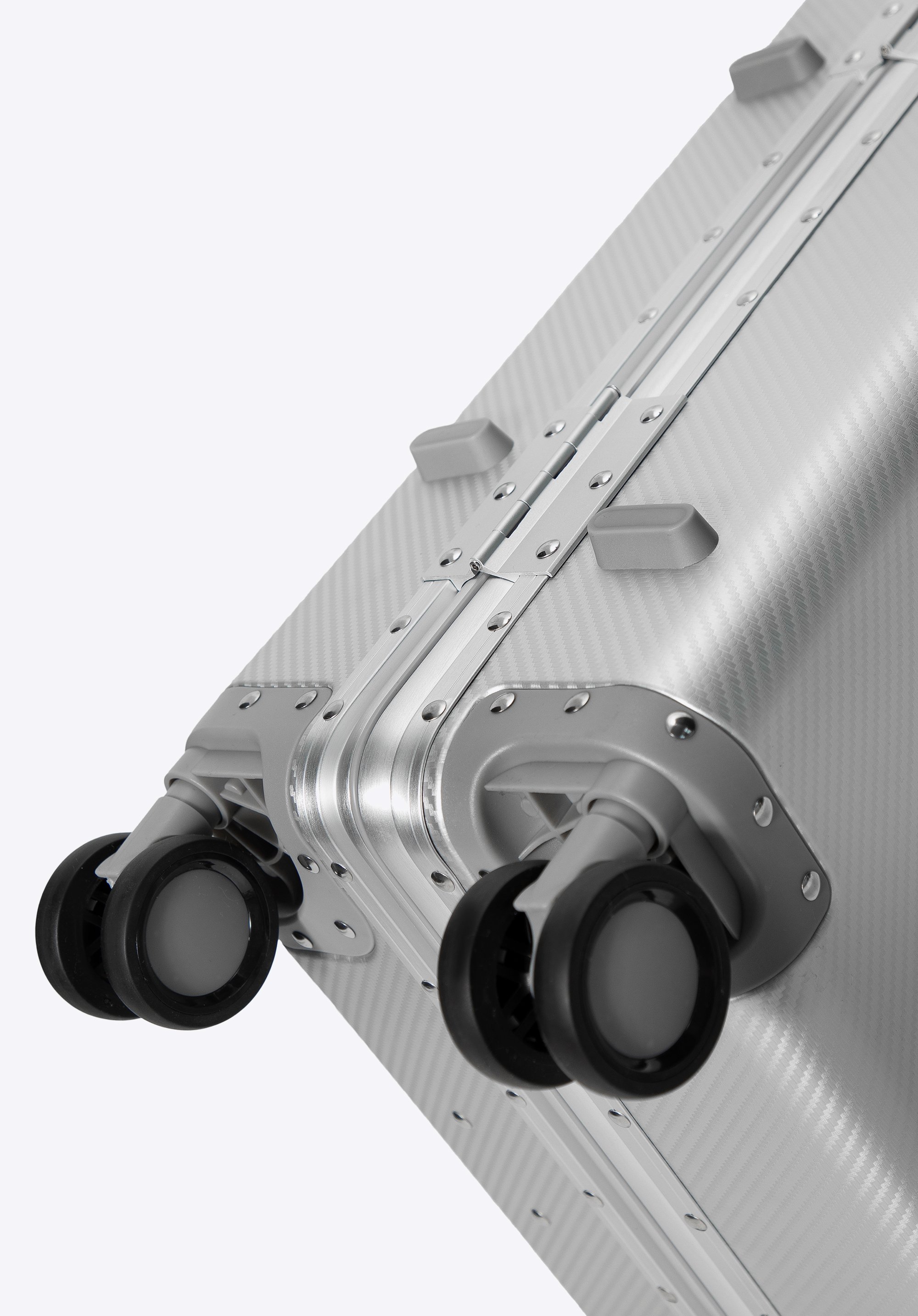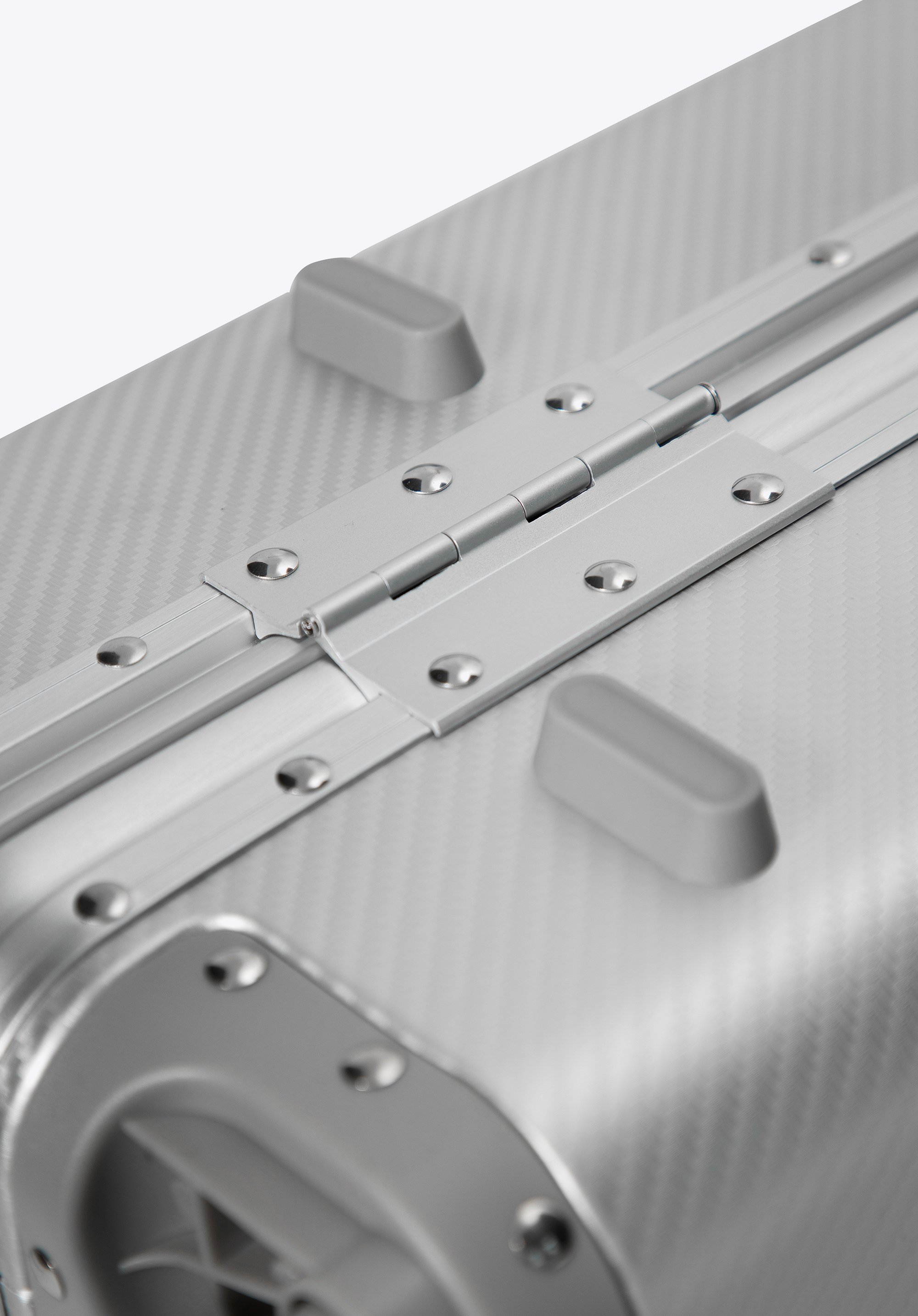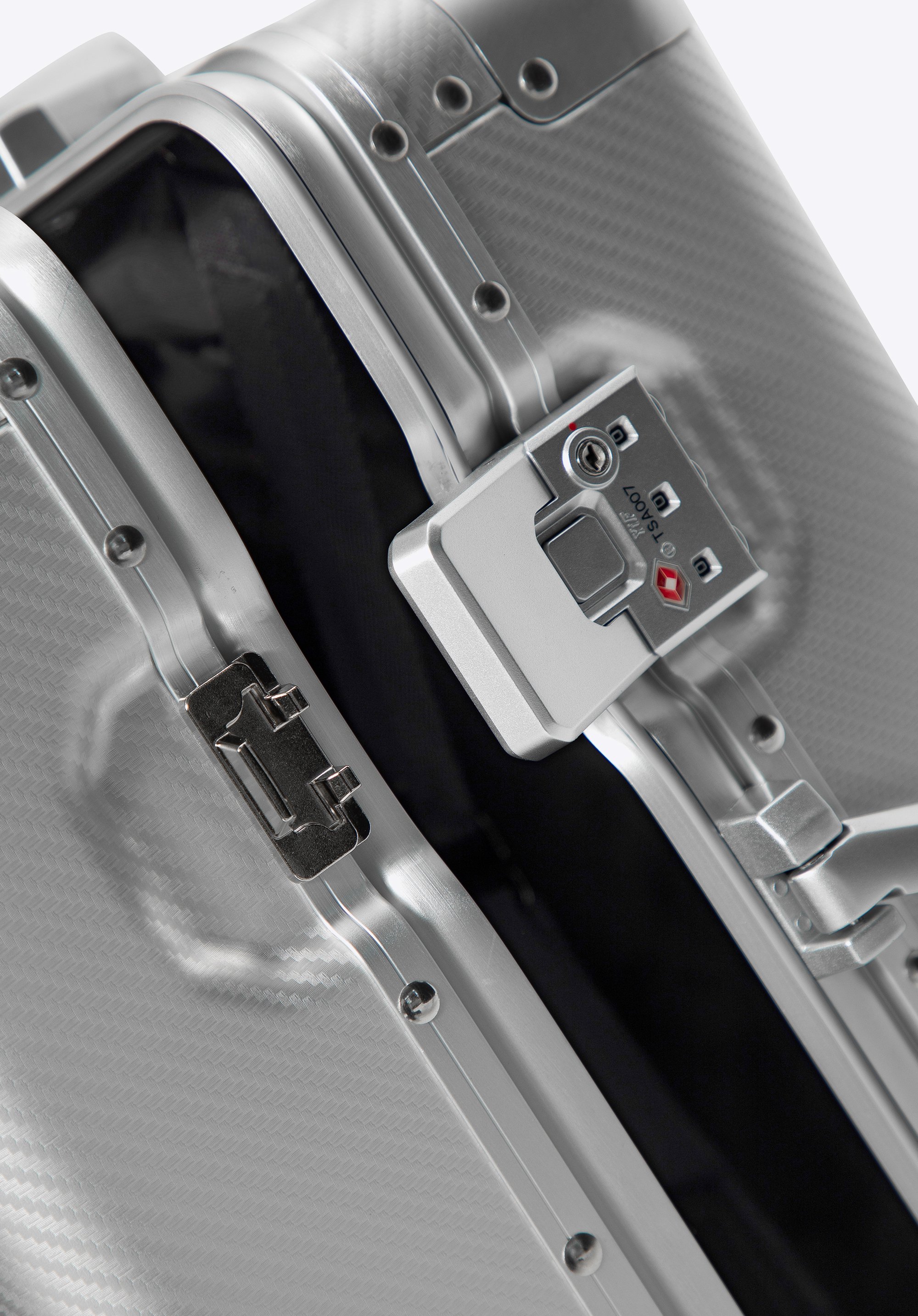 - Materiał: Wykonana w 100% z aluminium. To wyjątkowo szlachetny i trwały surowiec, który z czasem może zyskać subtelne ślady użytkowania – nadające walizce unikalny charakter i podkreślające jej autentyczną elegancję.
