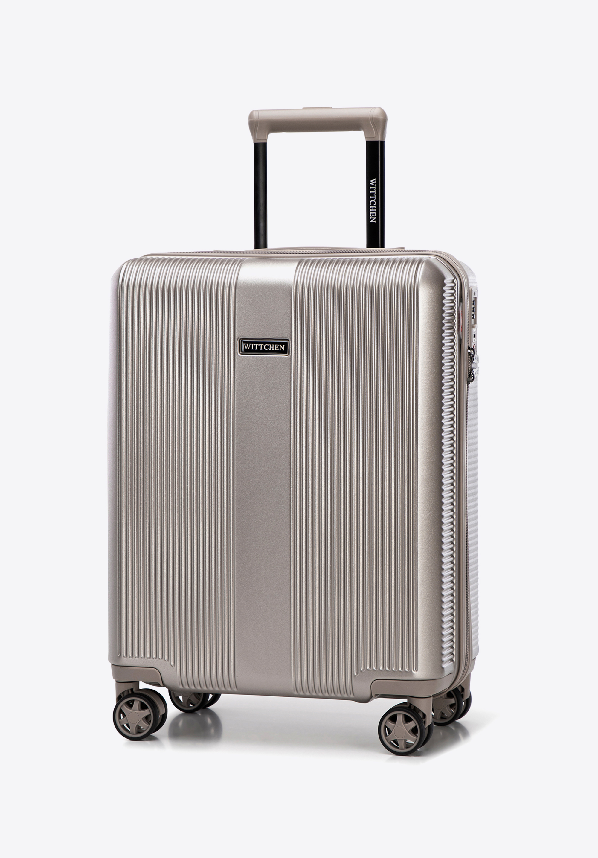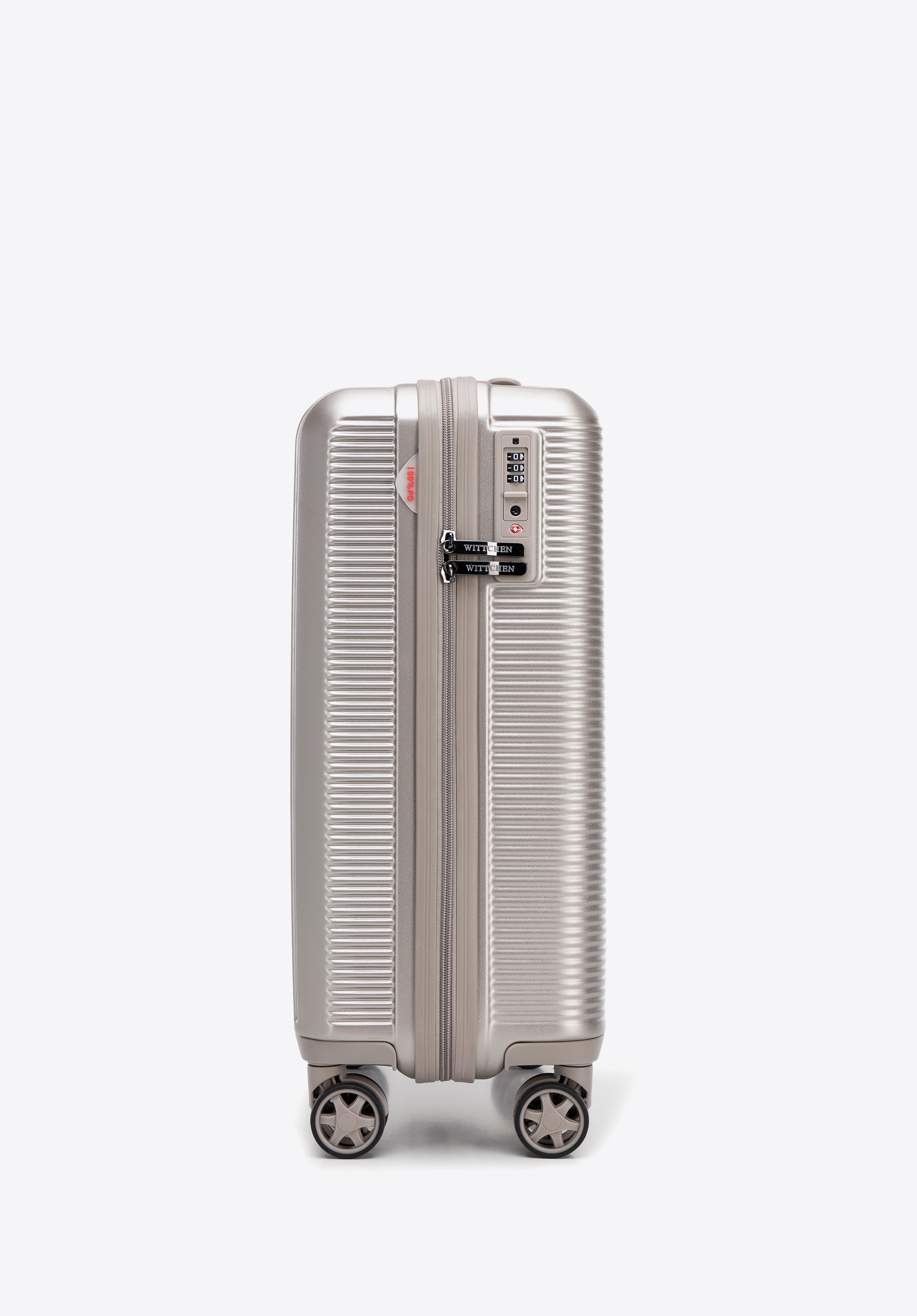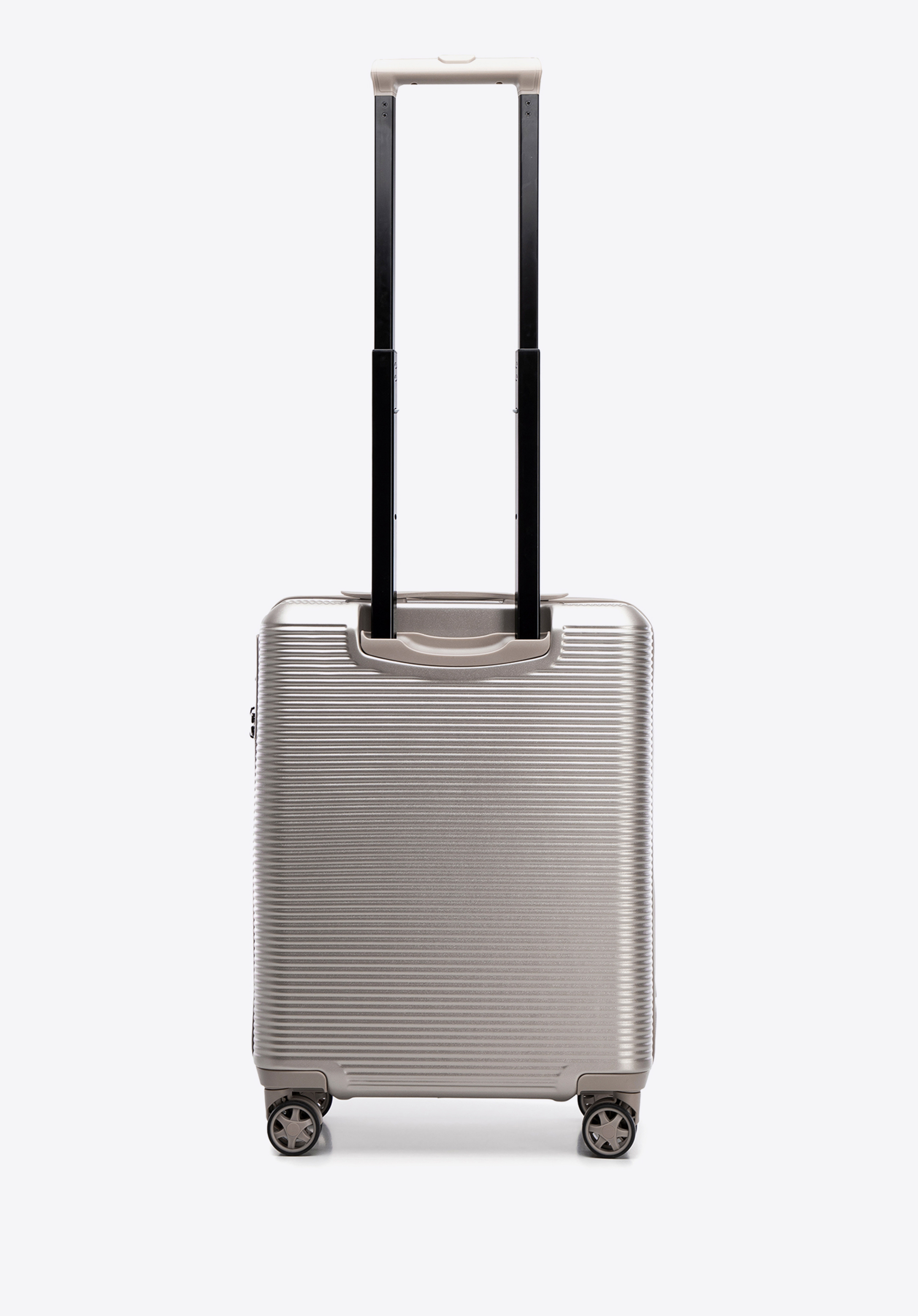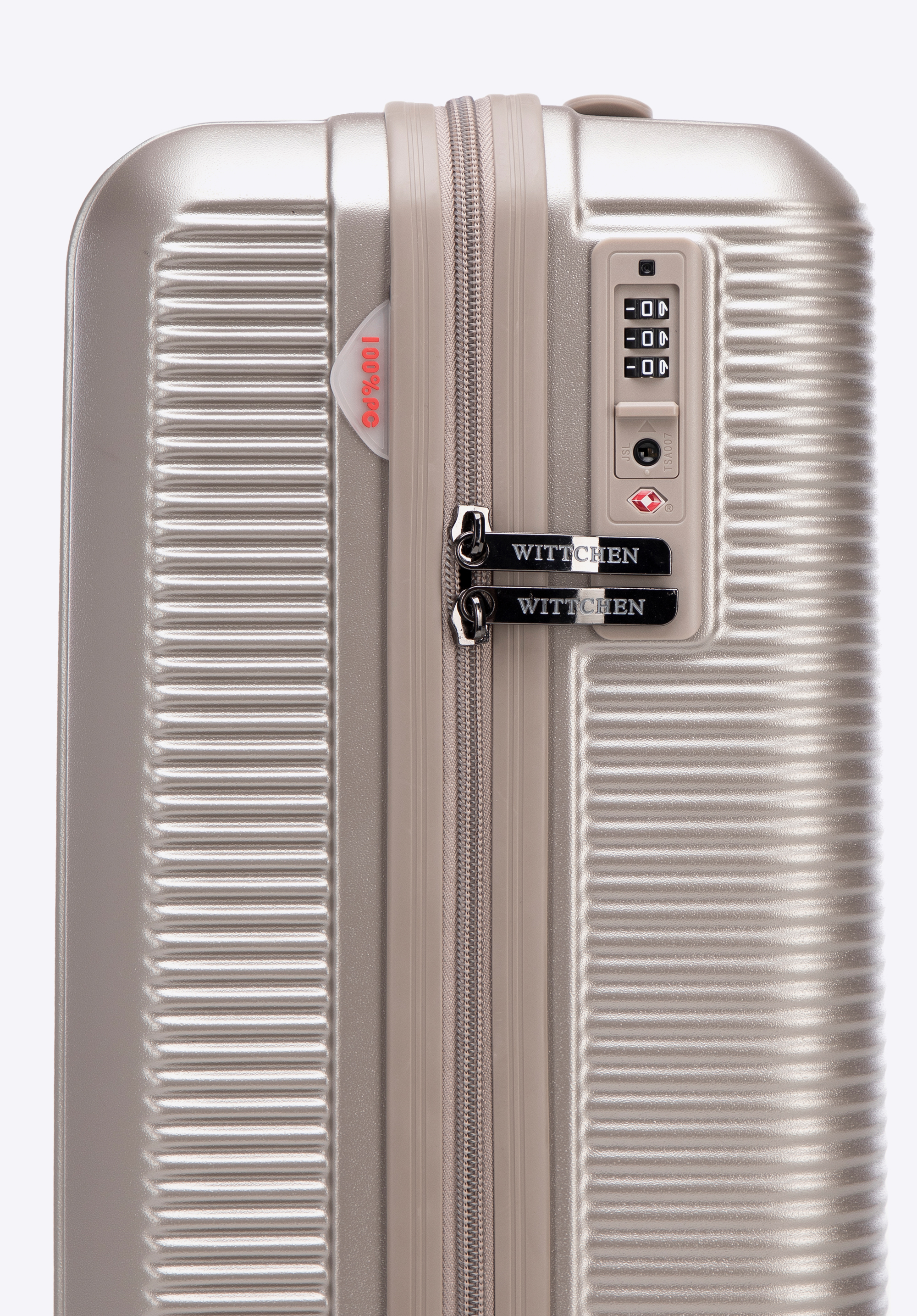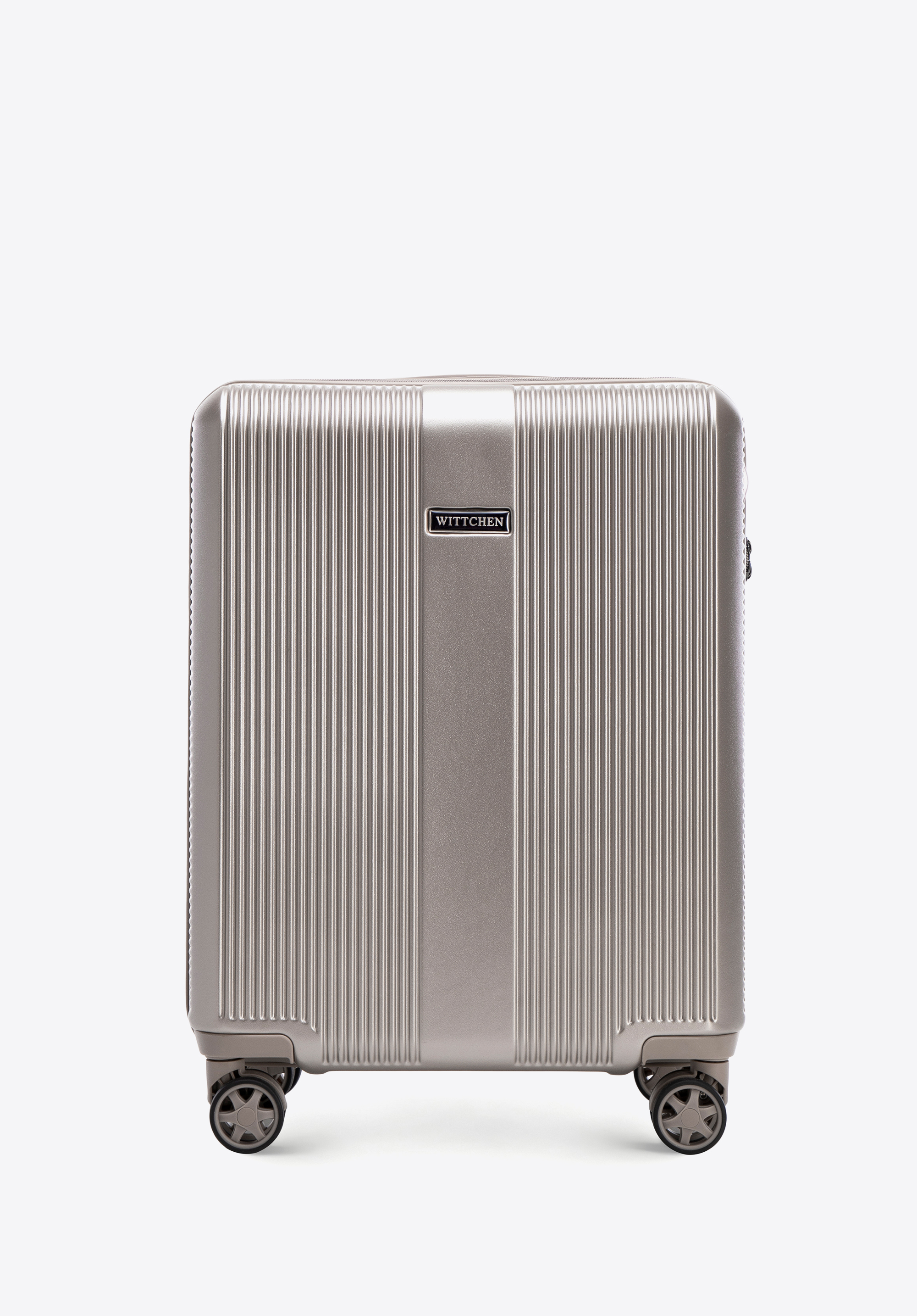 Mała walizka z polikarbonu w pionowe tłoczenia szampańskia