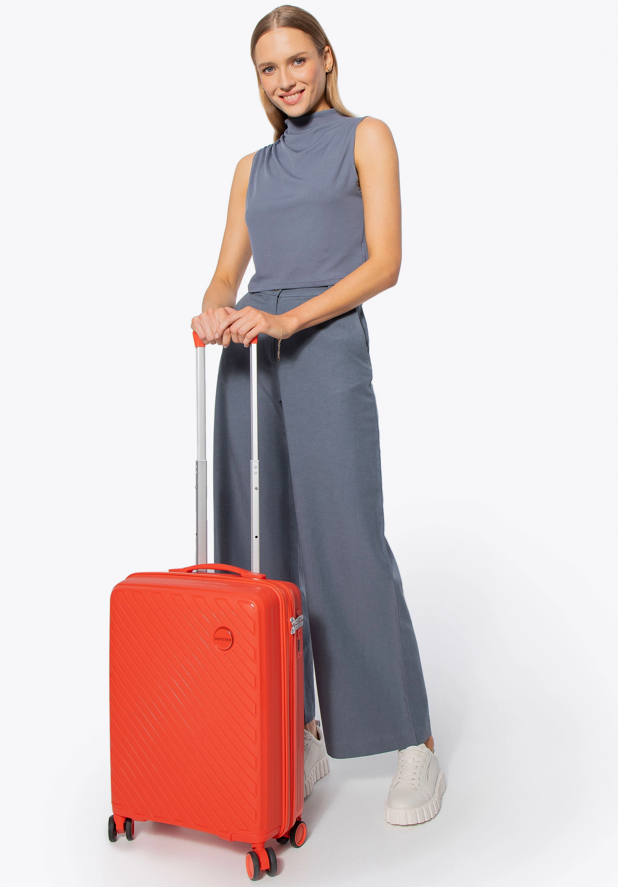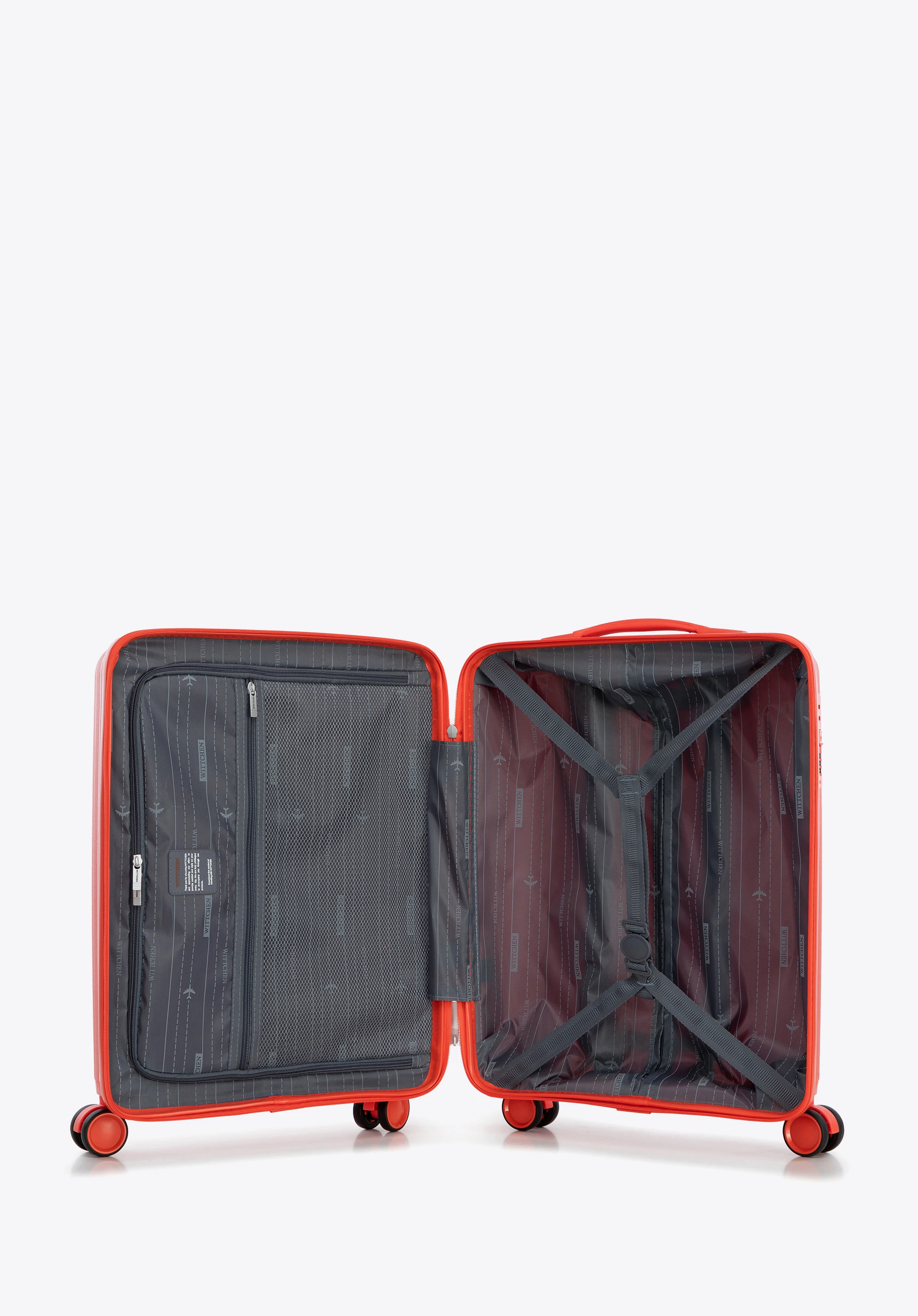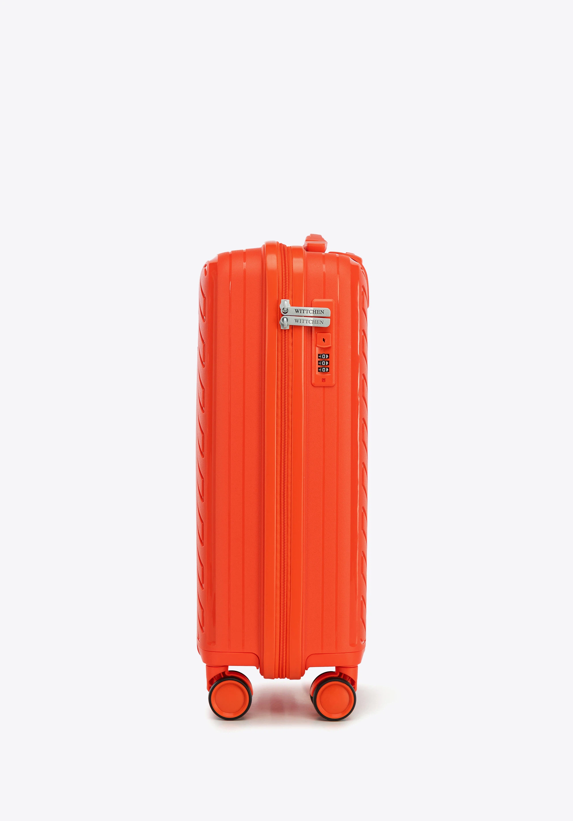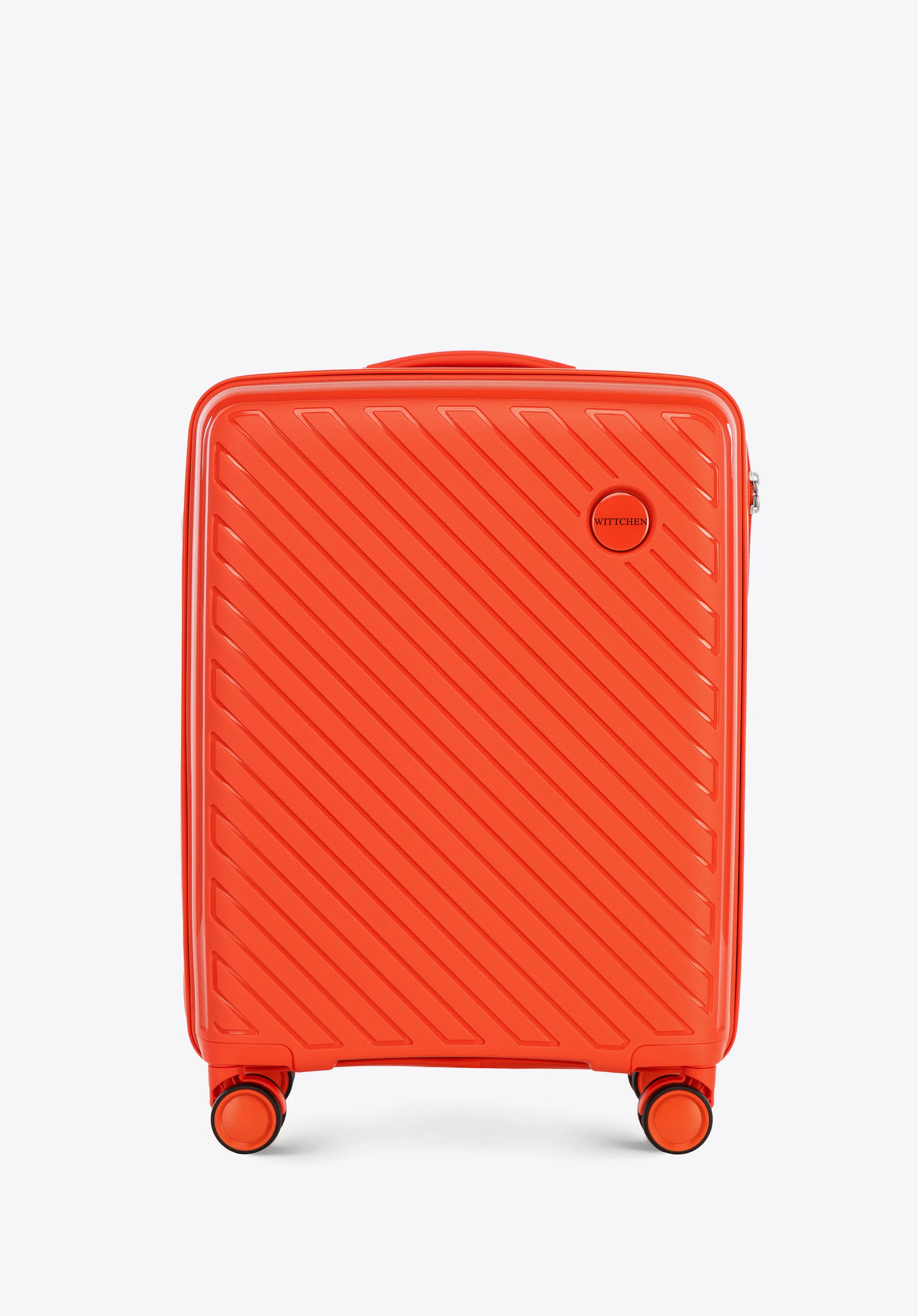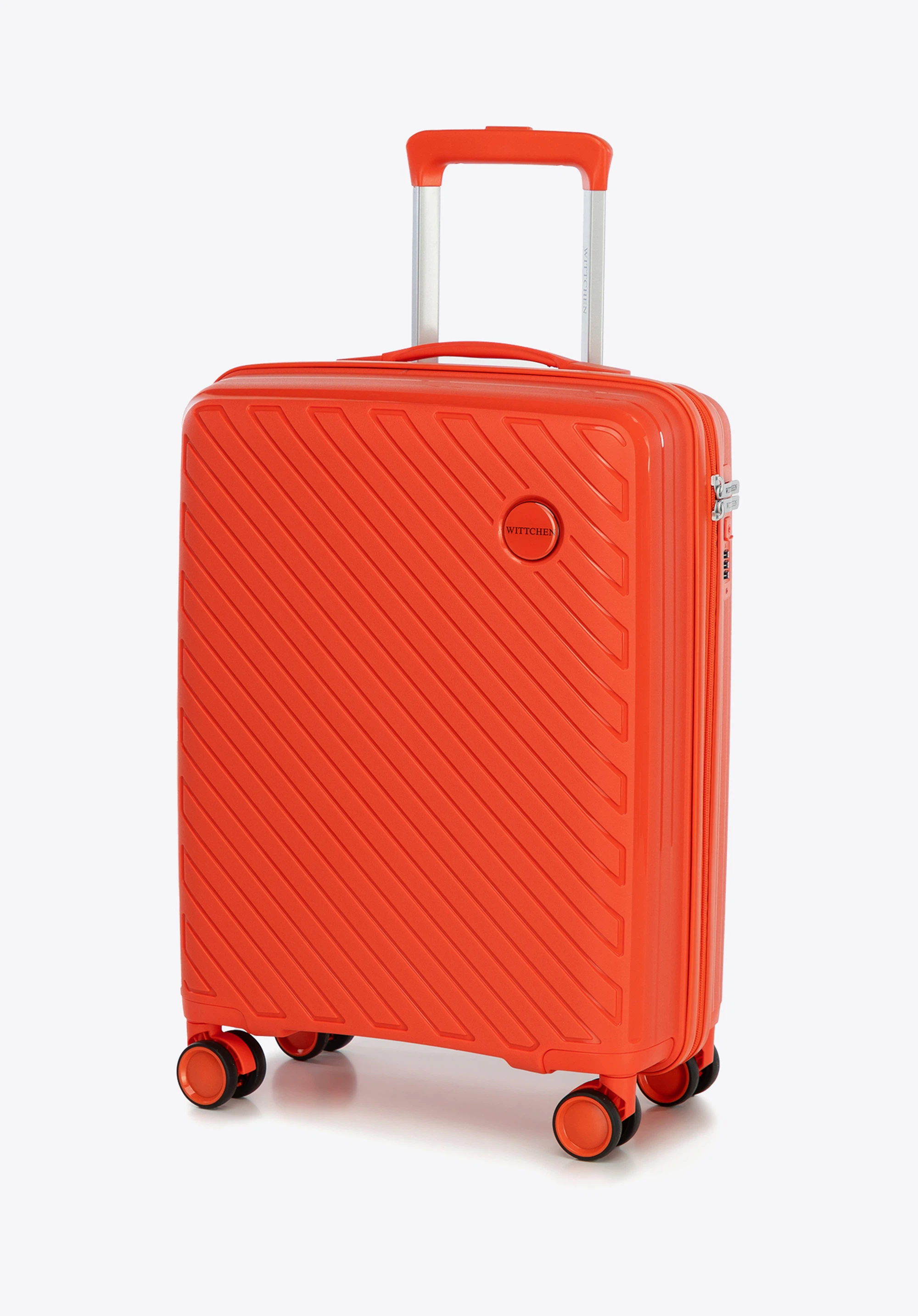 Kabinowa walizka WITTCHEN z kolekcji Raya Line to elegancka propozycja dla osób ceniących styl i funkcjonalność w podróży. Wykonana z lekkiego i elastycznego polipropylenu, łączy nowoczesny design z praktycznymi rozwiązaniami. Wyposażona w 4 podwójne kółka, teleskopową rączkę i wewnętrzny zamek szyfrowy, gwarantuje wygodę oraz bezpieczeństwo Twojego bagażu.