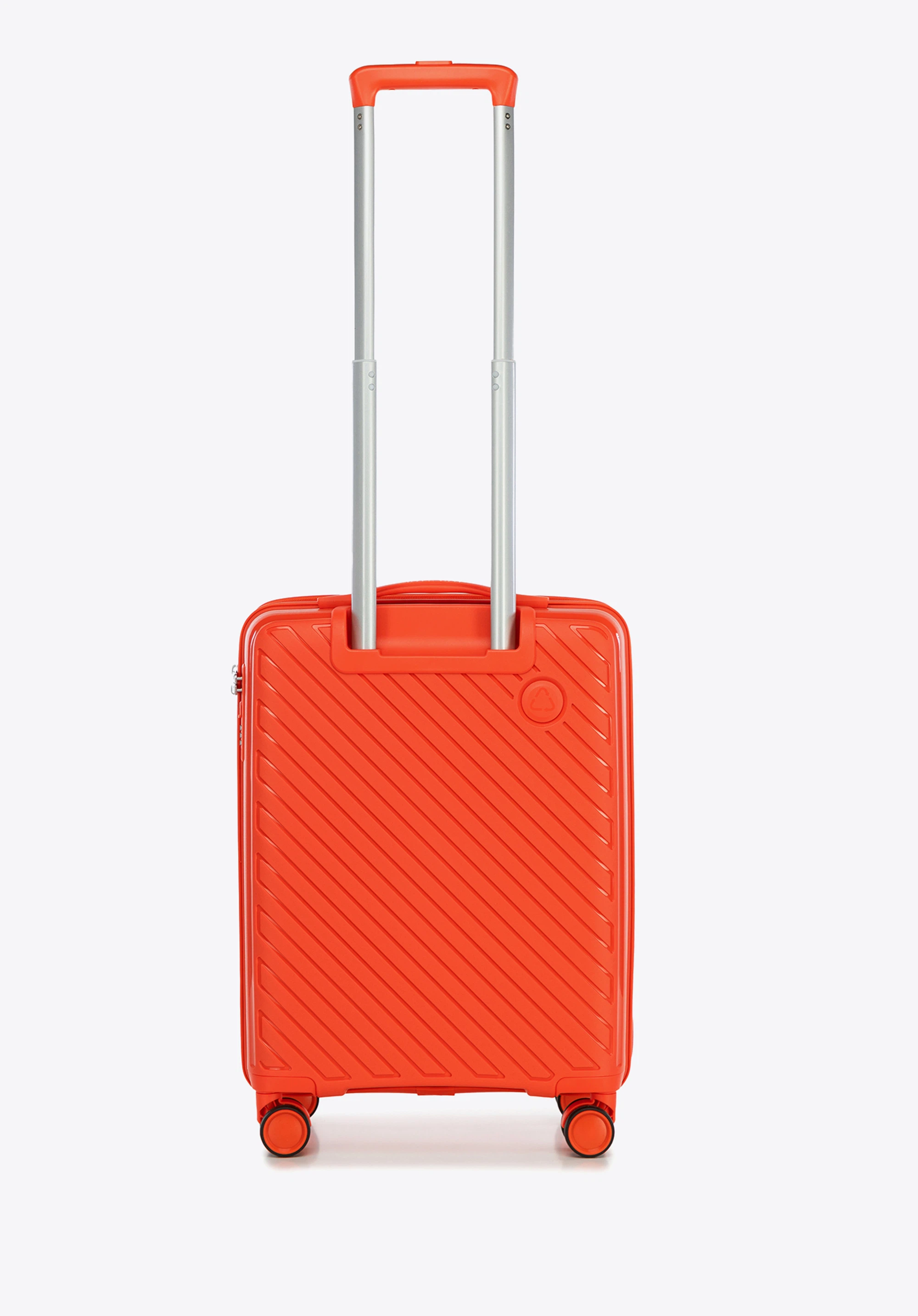 - Materiał: Walizka została wykonana z lekkiego i elastycznego polipropylenu pochodzącego z recyklingu.