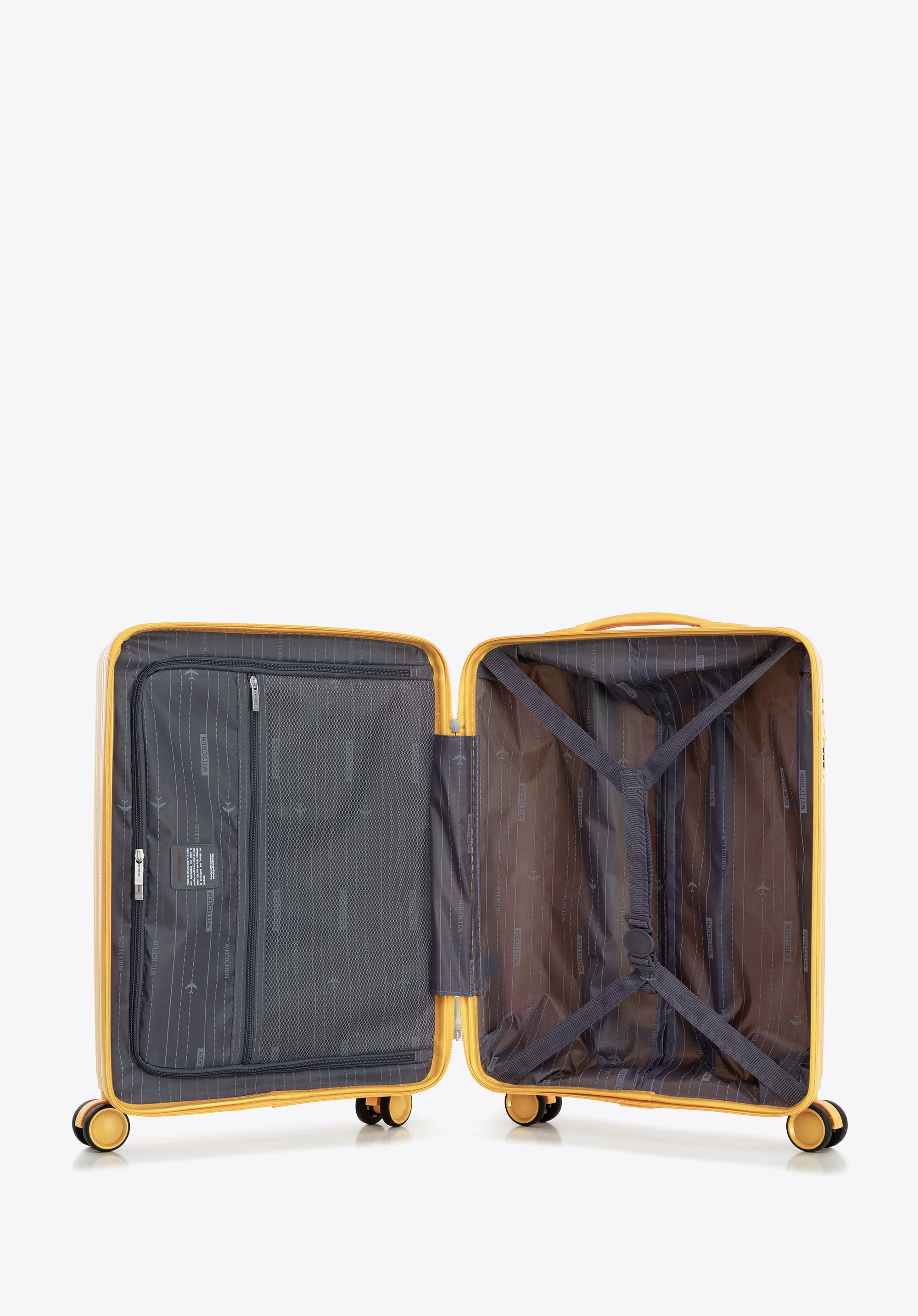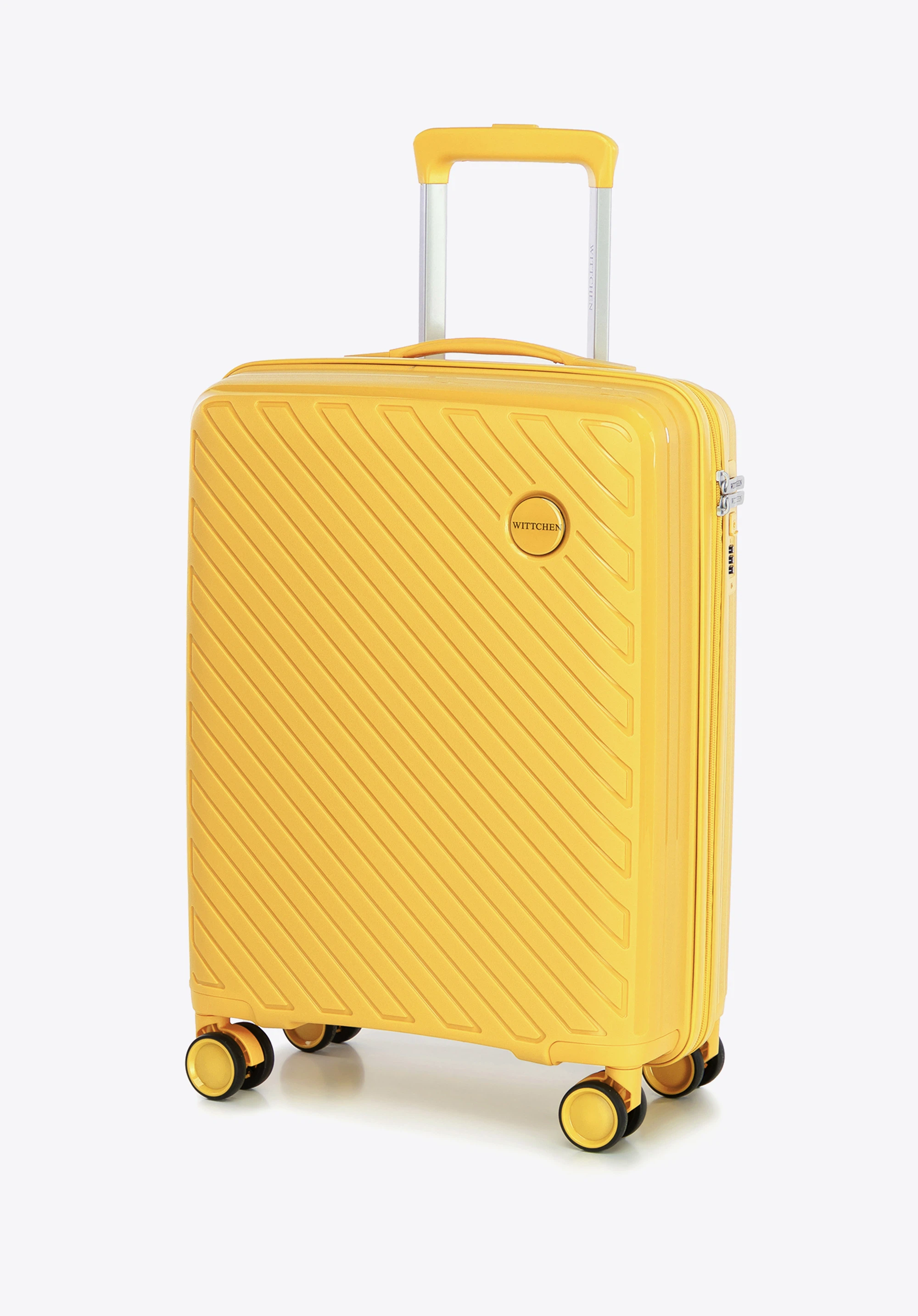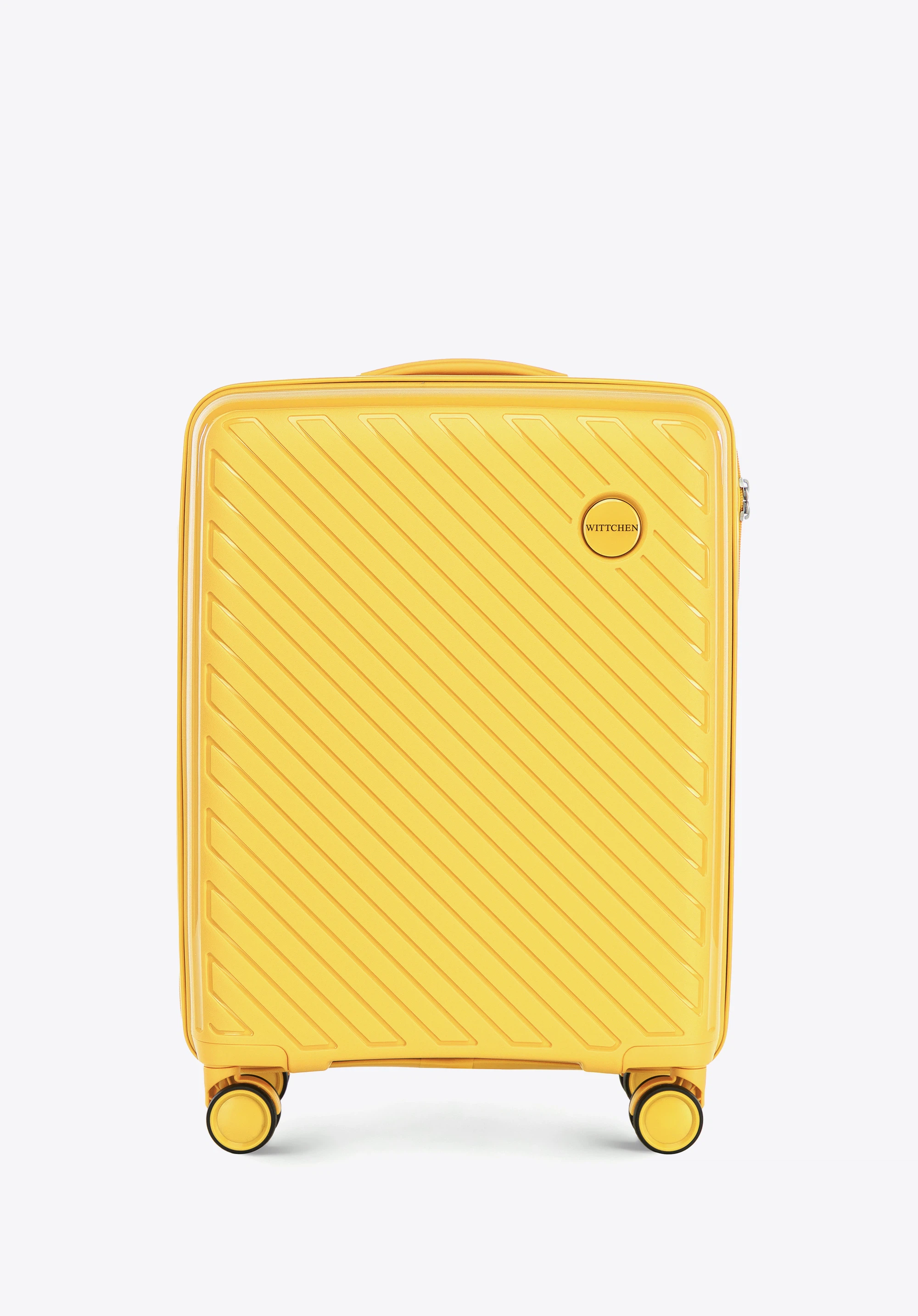 Kabinowa walizka WITTCHEN z kolekcji Raya Line to elegancka propozycja dla osób ceniących styl i funkcjonalność w podróży. Wykonana z lekkiego i elastycznego polipropylenu, łączy nowoczesny design z praktycznymi rozwiązaniami. Wyposażona w 4 podwójne kółka, teleskopową rączkę i wewnętrzny zamek szyfrowy, gwarantuje wygodę oraz bezpieczeństwo Twojego bagażu.
