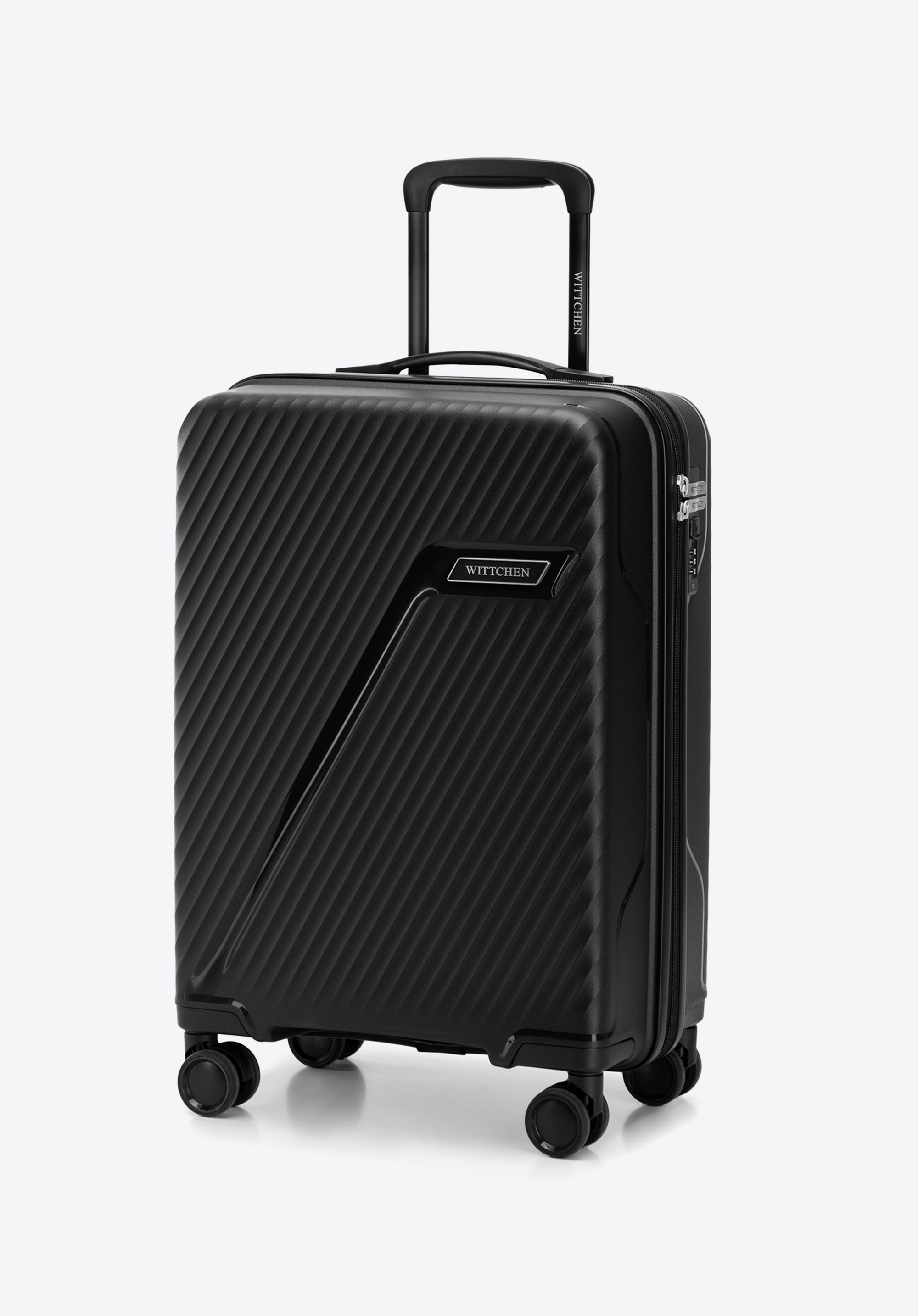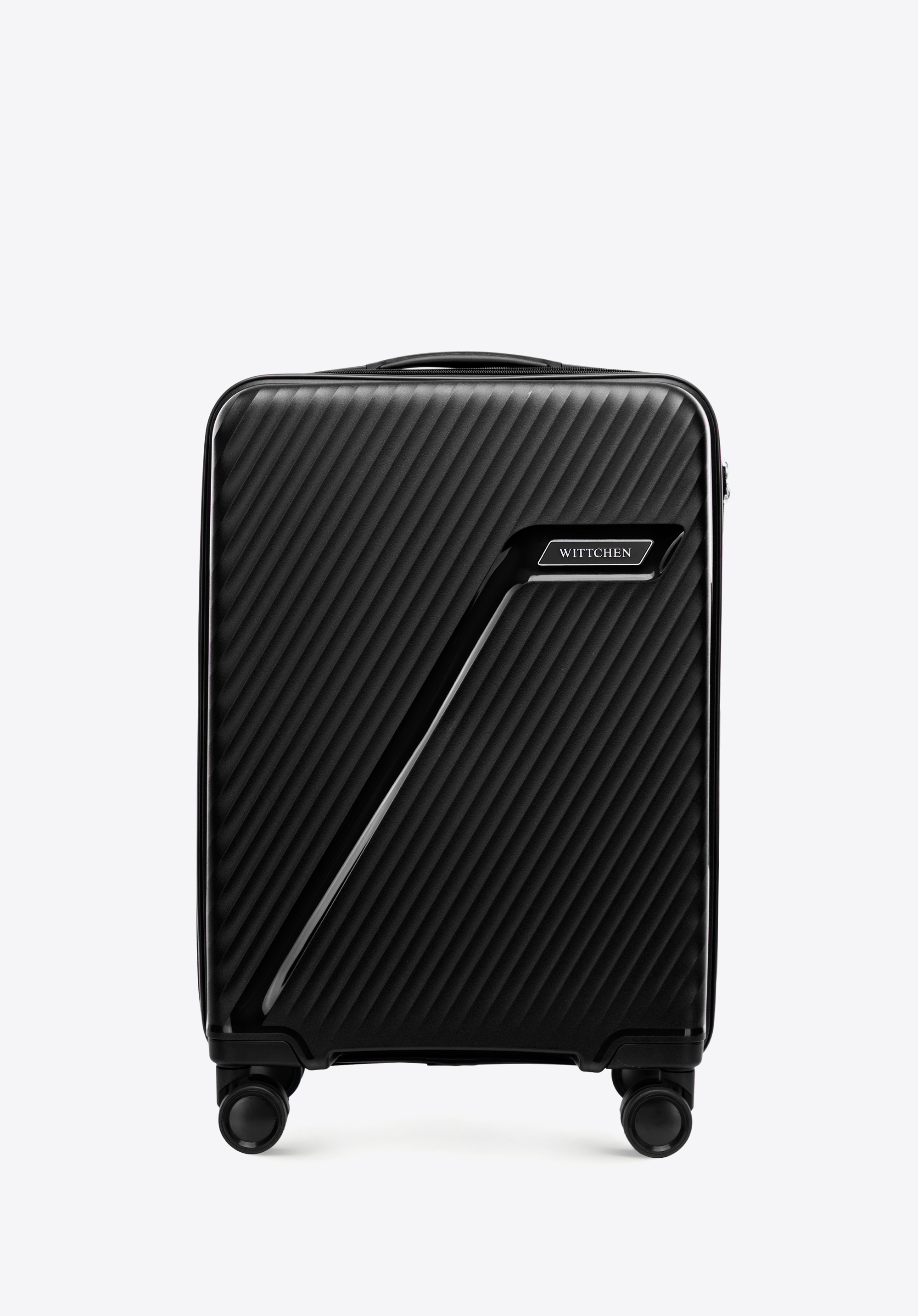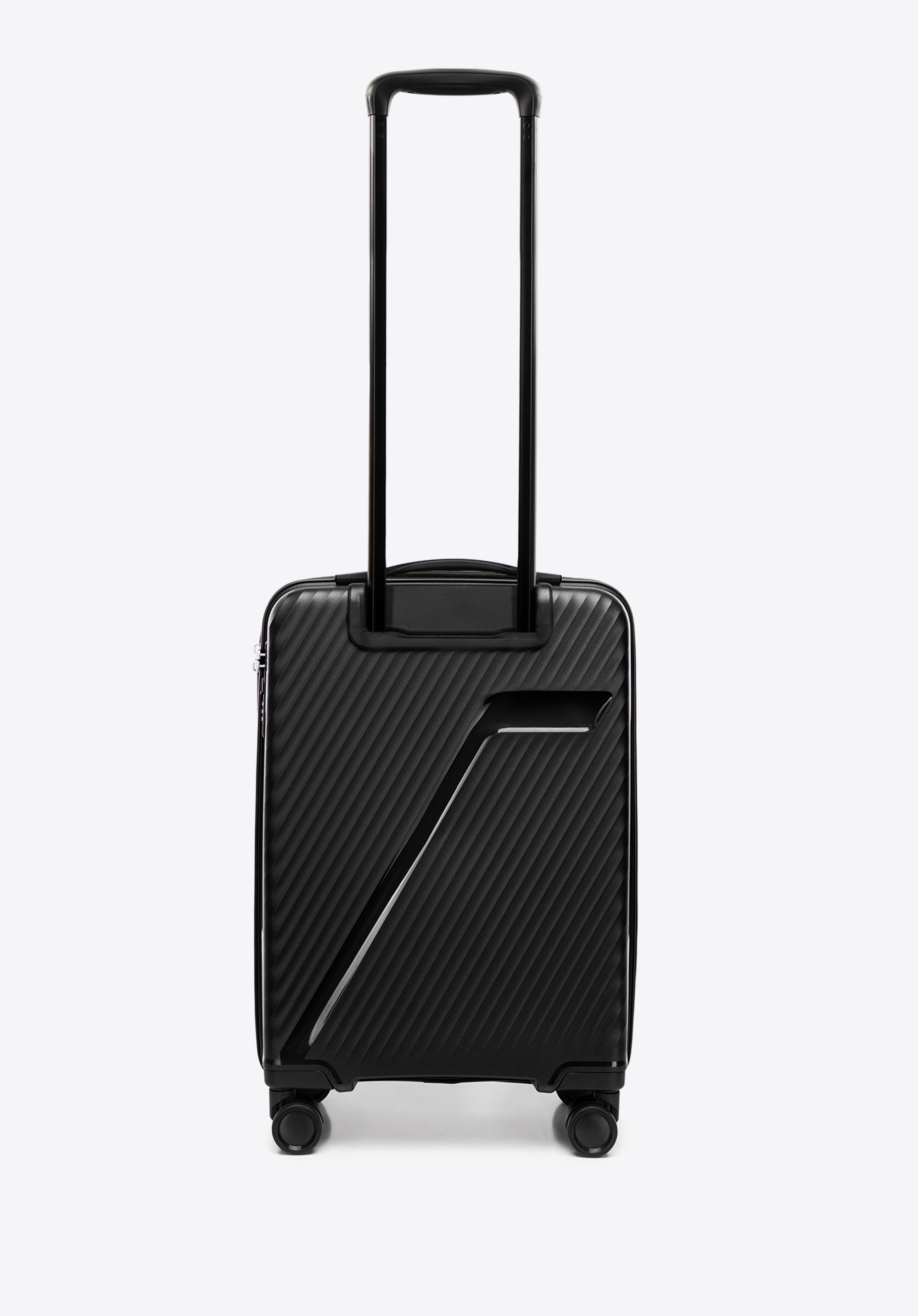 Mała walizka z polipropylenu w ukośne pasy czarno - srebrna