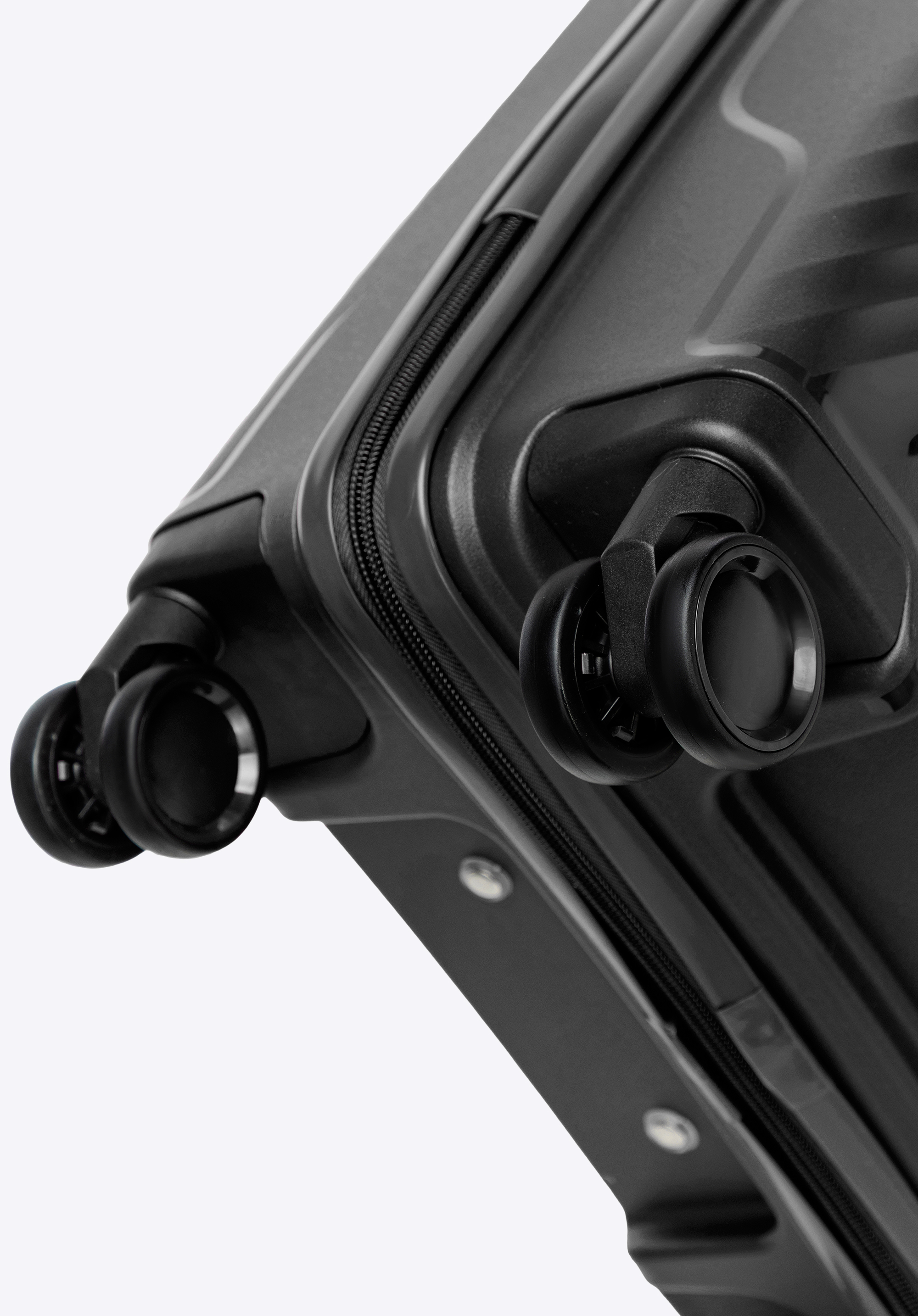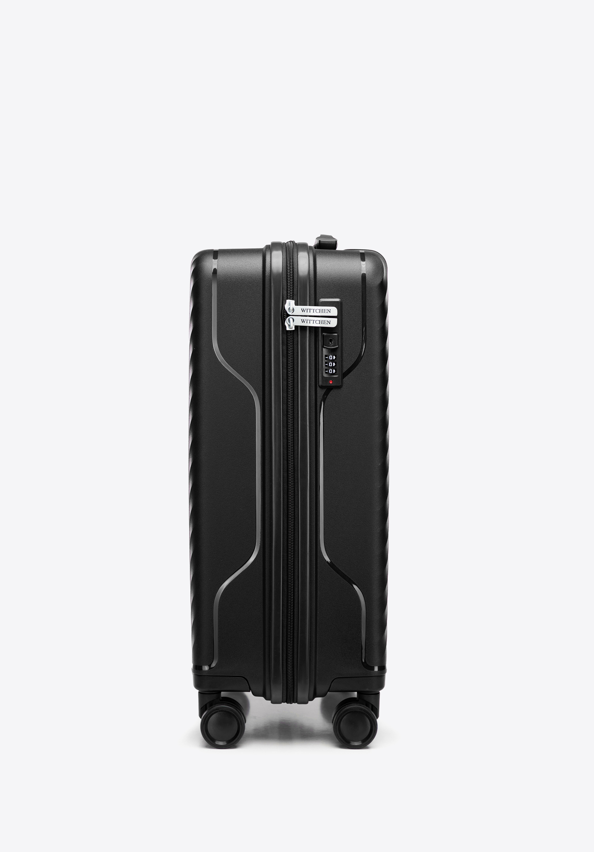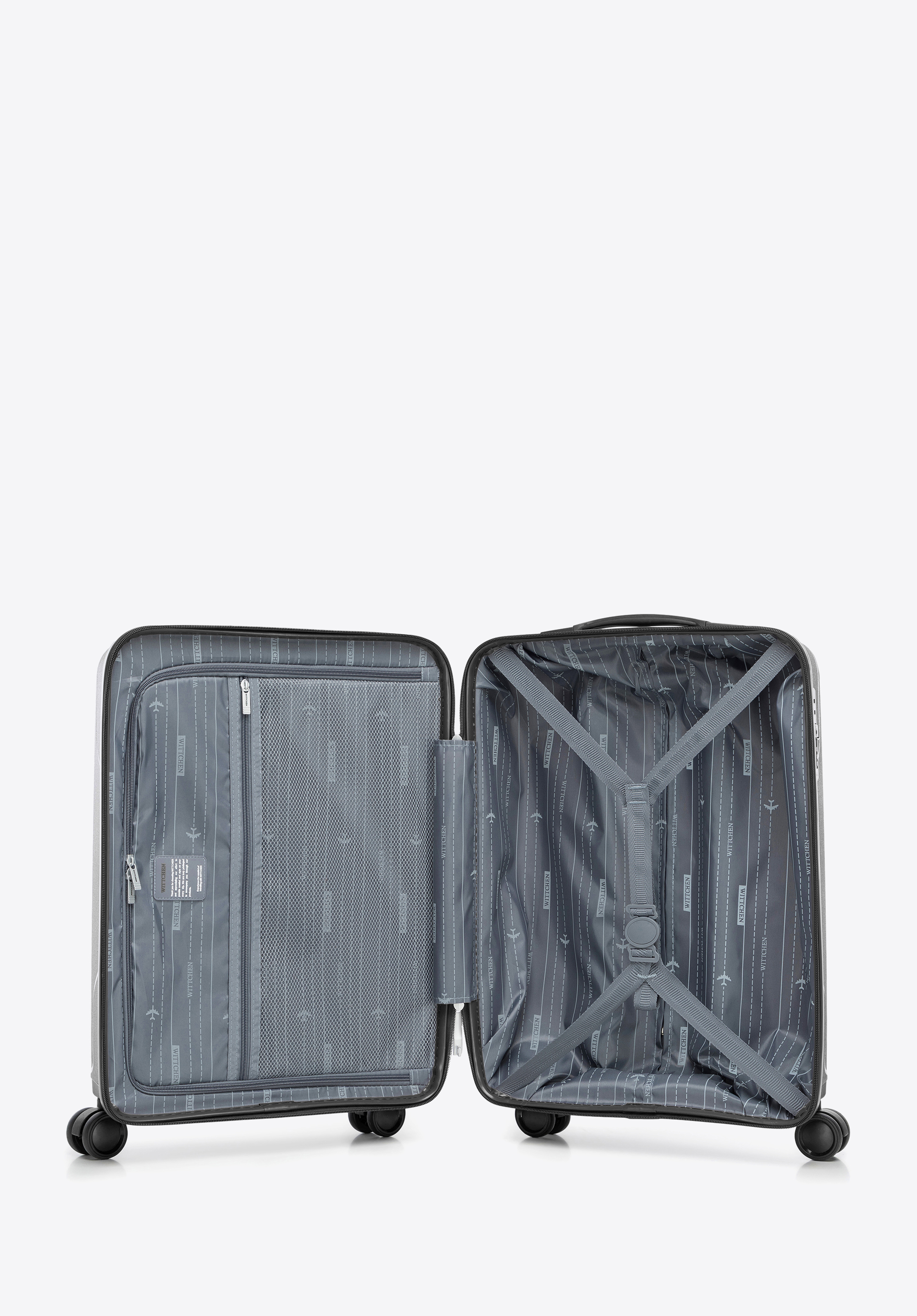 Mała walizka z polipropylenu w ukośne pasy czarno - srebrna