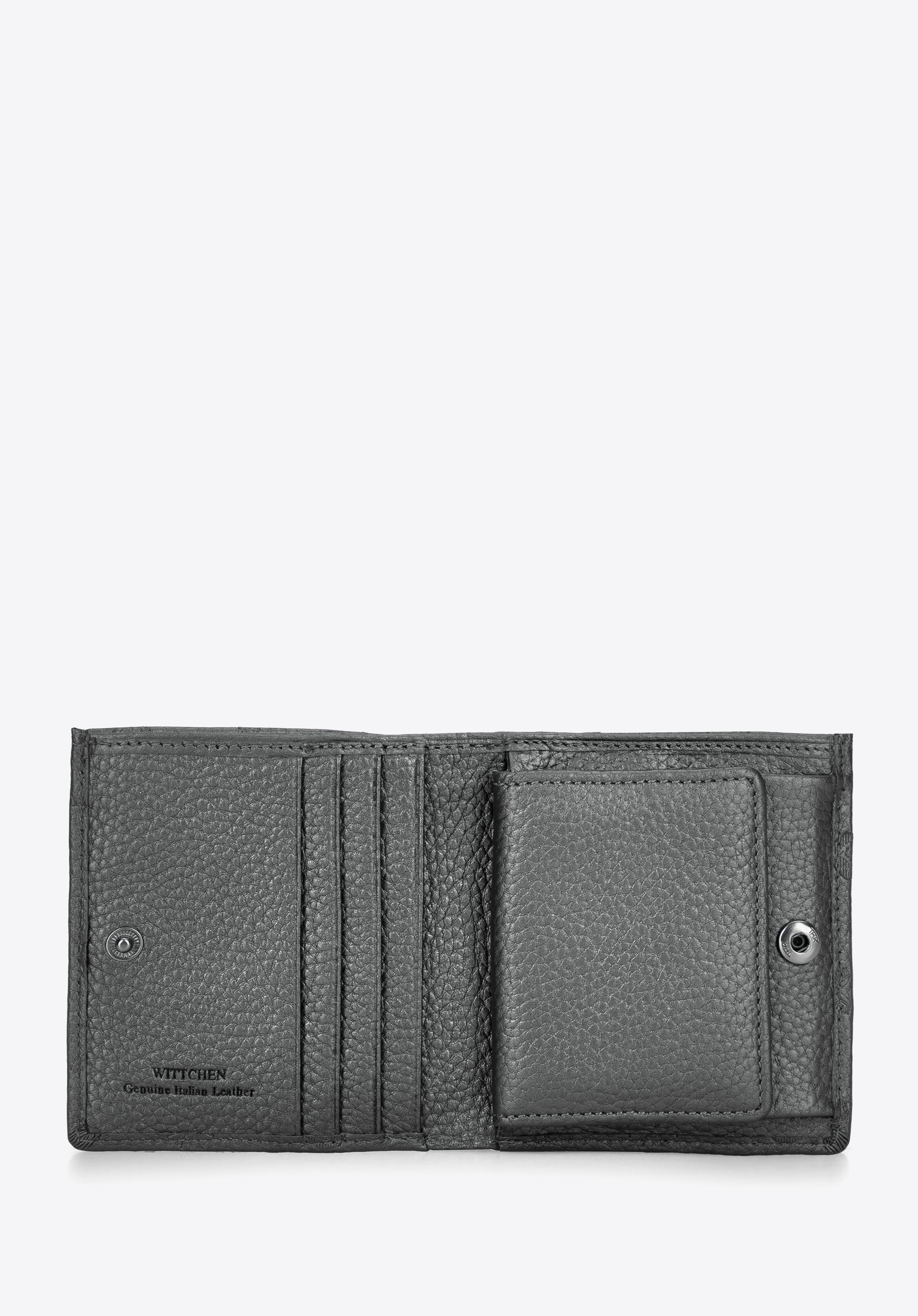 - Praktyczne wnętrze: Portfel posiada dedykowane miejsce na monety, co pozwala na uporządkowanie wszystkich pieniędzy. Cztery kieszenie, w tym dwie na banknoty, pomagają w organizacji różnych nominałów.