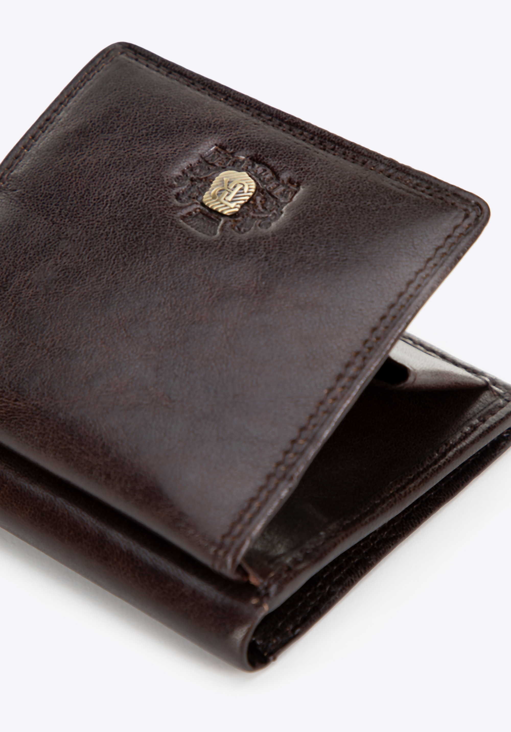 Odkryj elegancję i funkcjonalność z męskim portfelem WITTCHEN z kolekcji Da Vinci. Ten wyjątkowy portfel, wykonany z naturalnej skóry, zapewnia trwałość i niepowtarzalny charakter. Subtelny połysk podkreśla wysoką jakość materiałów, a małe logo w postaci inicjałów otoczonych tarczą w kolorze starego złota na wytłoczonym herbie dodaje mu luksusowego wykończenia.