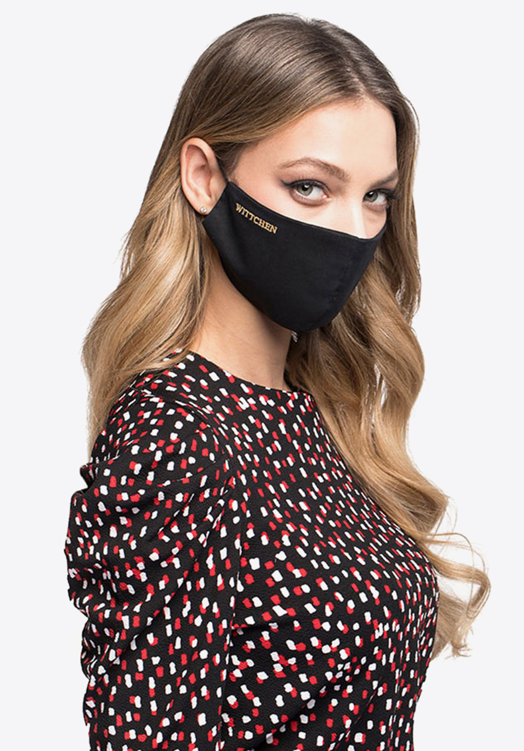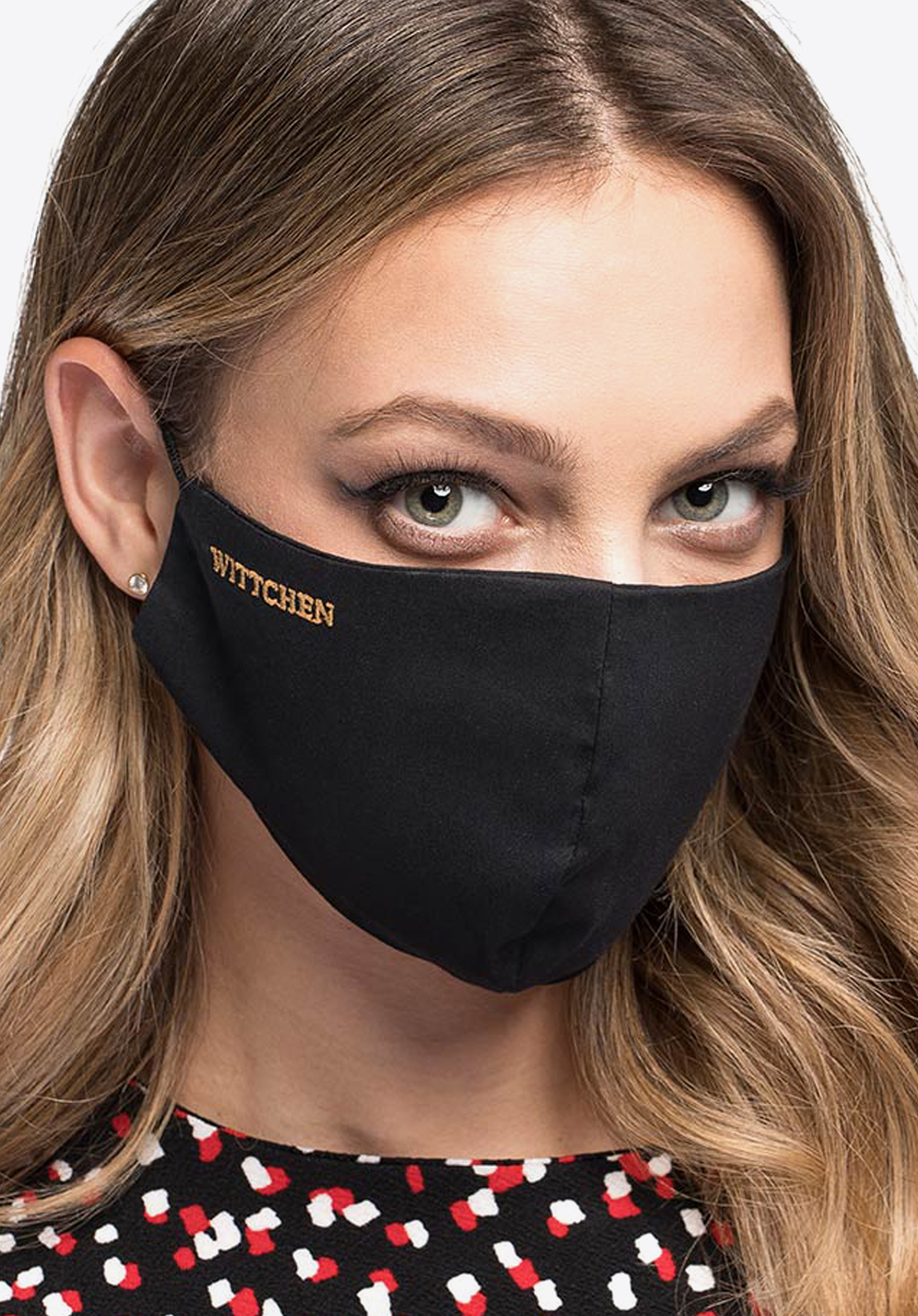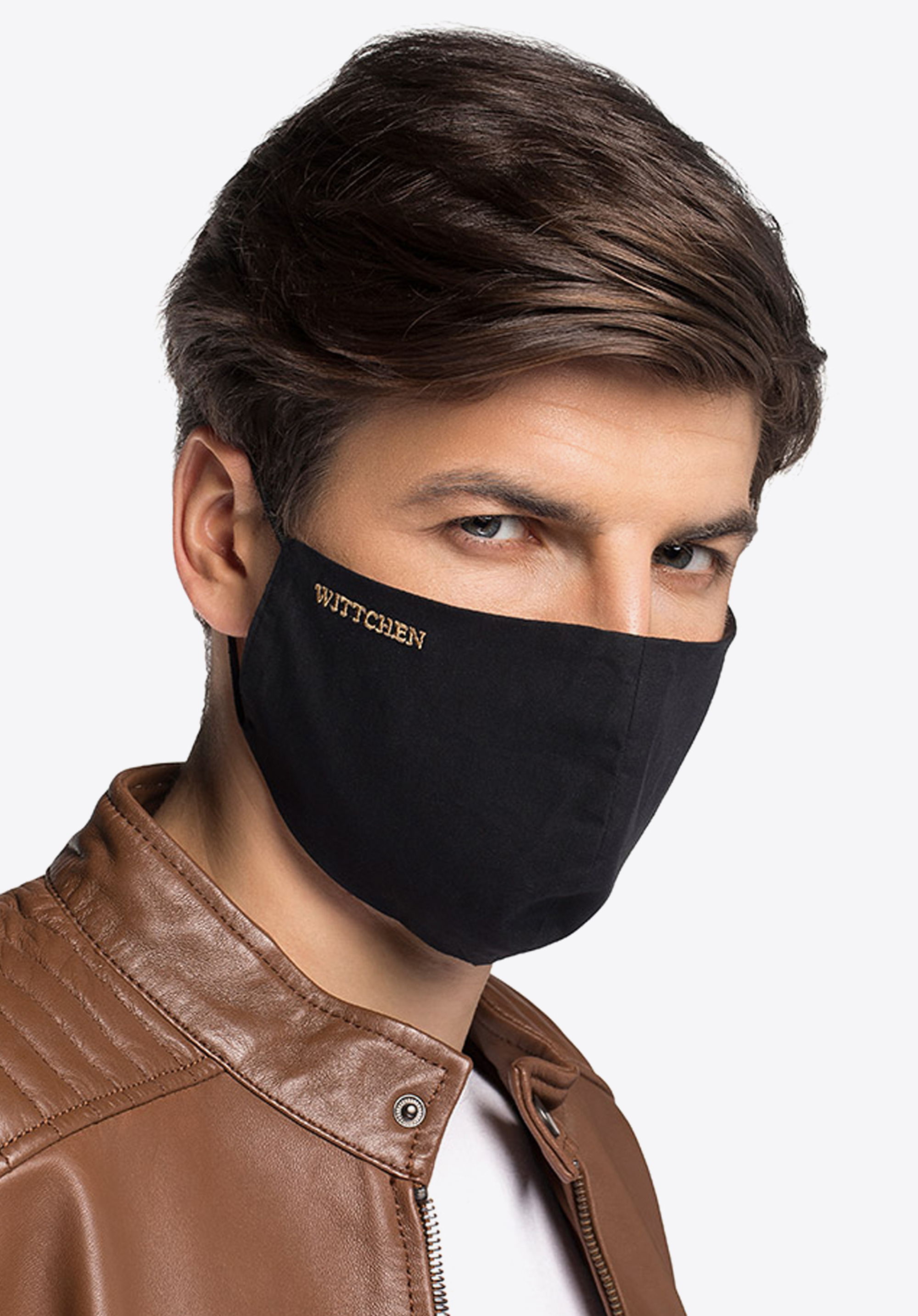 dobrze pasować do kształtu twarzy, nigdzie nie uciskając. Ma też tkaninowe gumki na uszy. Głęboki czarny kolor z dyskretnie wyhaftowanym logo WITTCHEN będzie współgrał ze wszystkimi innymi kolorami, które masz na sobie. To też świetny