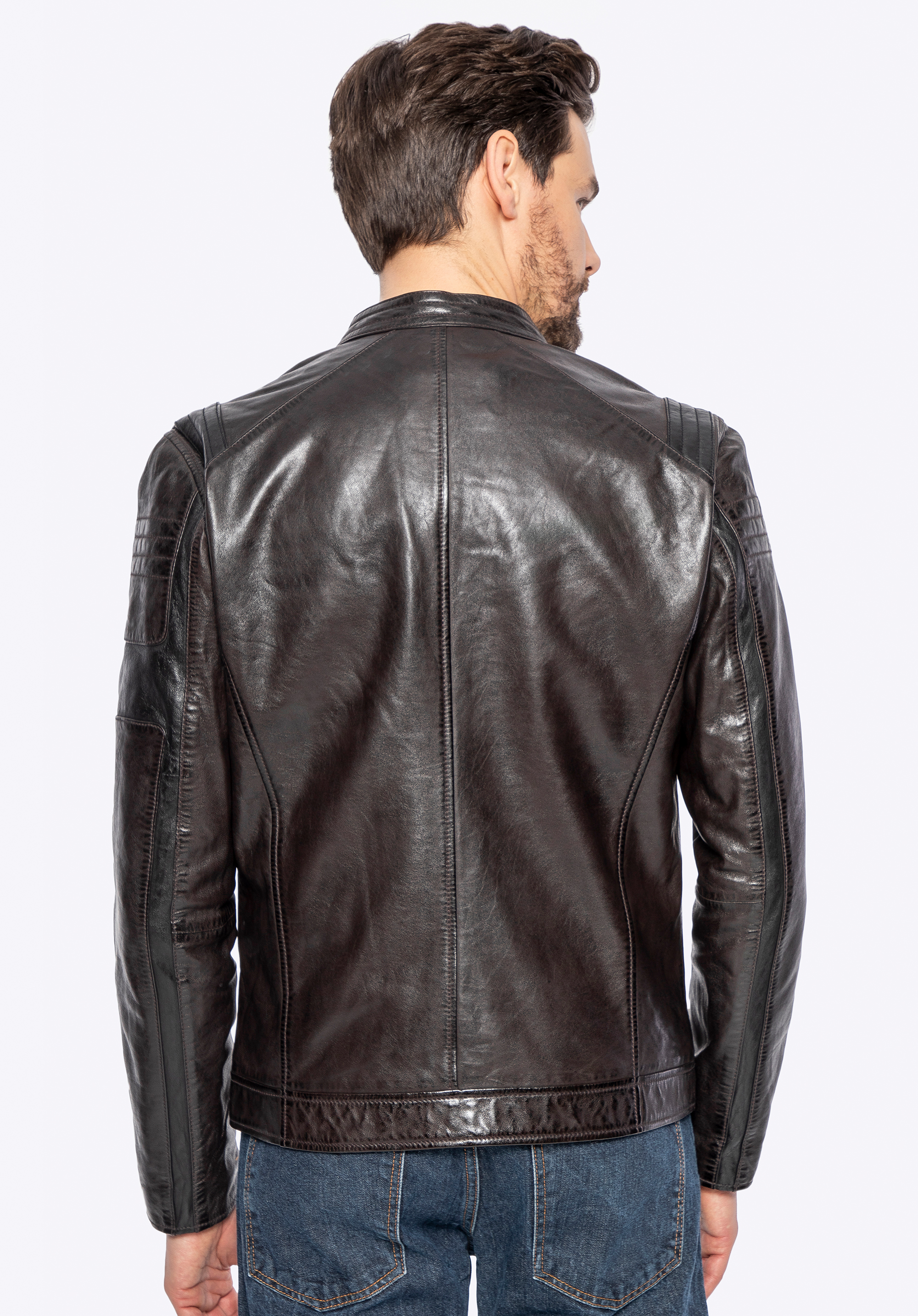 Pewność siebie i niezależność w każdym detalu – ta kurtka z naturalnej skóry owczej to prawdziwa definicja męskiego charakteru. Z metalowym logo producenta, logowanymi suwakami i kontrastowymi przeszyciami, które nadają jej wyrazisty, odważny wygląd, idealnie łączy klasyczny krój z nowoczesnymi akcentami. Każda z kieszeni – dwie pionowe na zamek, jedna pozioma na klatce piersiowej oraz dwie wewnętrzne – łączy w sobie funkcjonalność i wygodę. Jednocześnie każda z nich zachowuje elegancki, stylowy charakter, który doskonale uzupełnia całość kurtki.