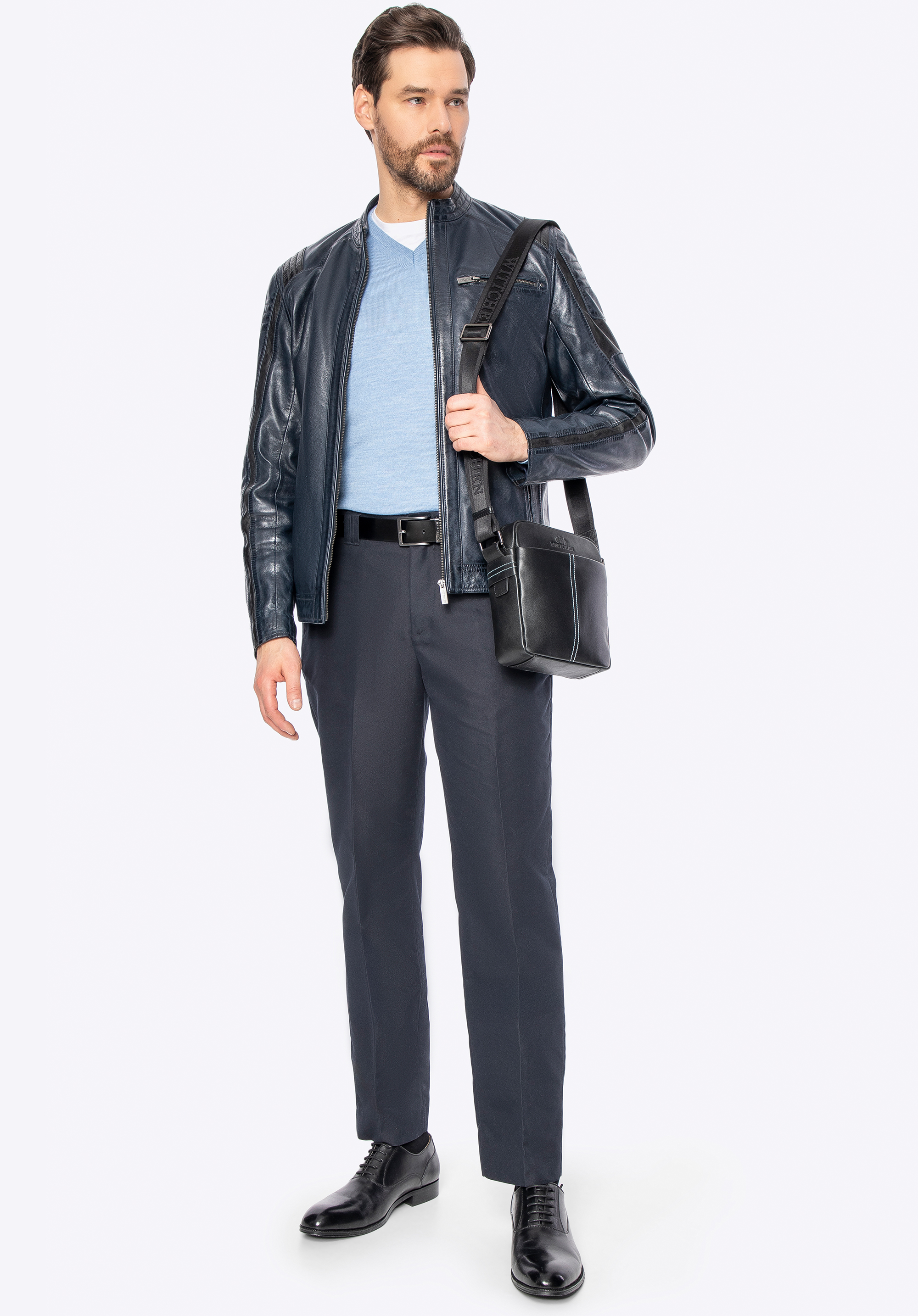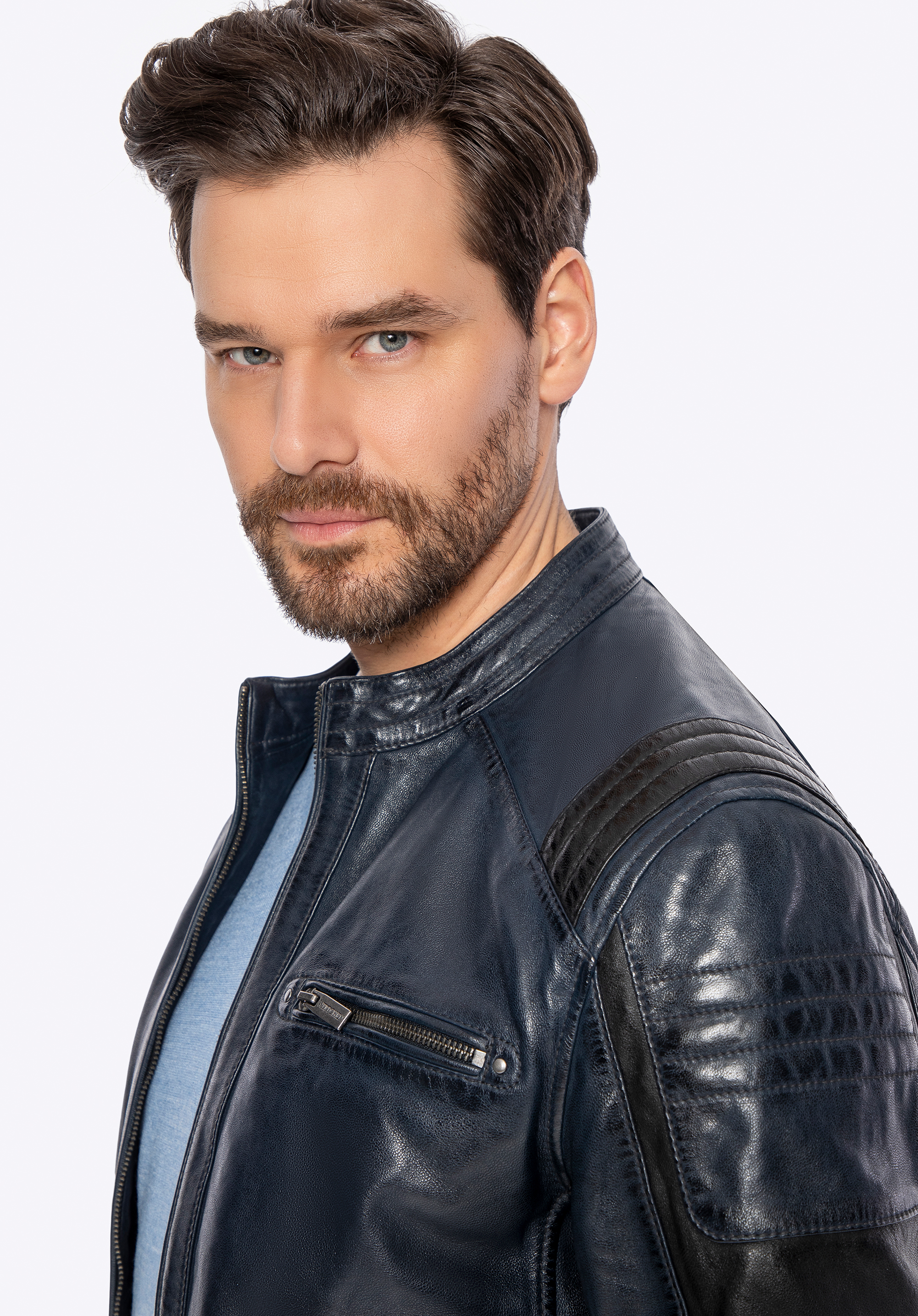 Pewność siebie i niezależność w każdym detalu – ta kurtka z naturalnej skóry owczej to prawdziwa definicja męskiego charakteru. Z metalowym logo producenta, logowanymi suwakami i kontrastowymi przeszyciami, które nadają jej wyrazisty, odważny wygląd, idealnie łączy klasyczny krój z nowoczesnymi akcentami. Każda z kieszeni – dwie pionowe na zamek, jedna pozioma na klatce piersiowej oraz dwie wewnętrzne – łączy w sobie funkcjonalność i wygodę. Jednocześnie każda z nich zachowuje elegancki, stylowy charakter, który doskonale uzupełnia całość kurtki.