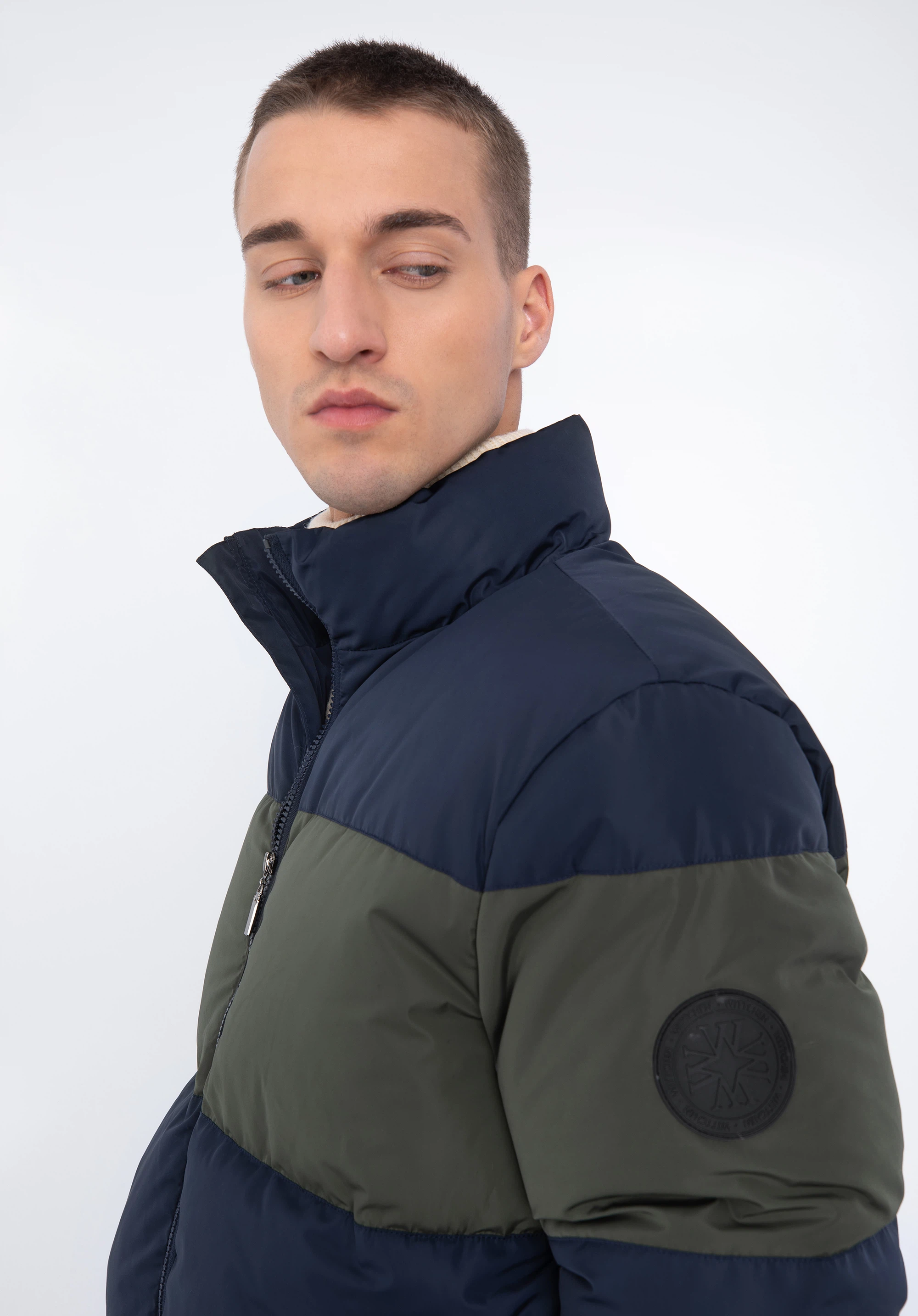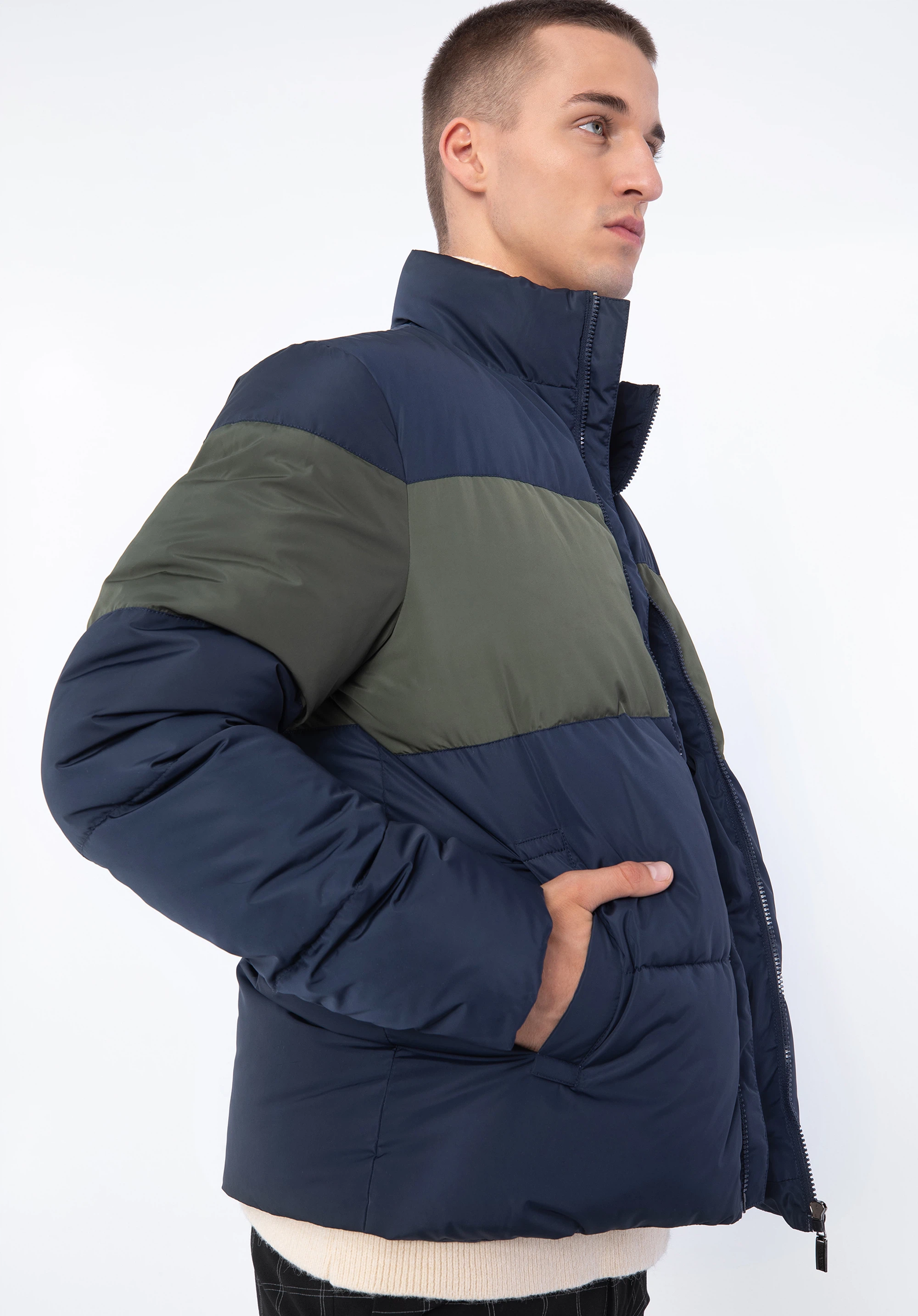 Męska kurtka pikowana prosta granatowo-zielona