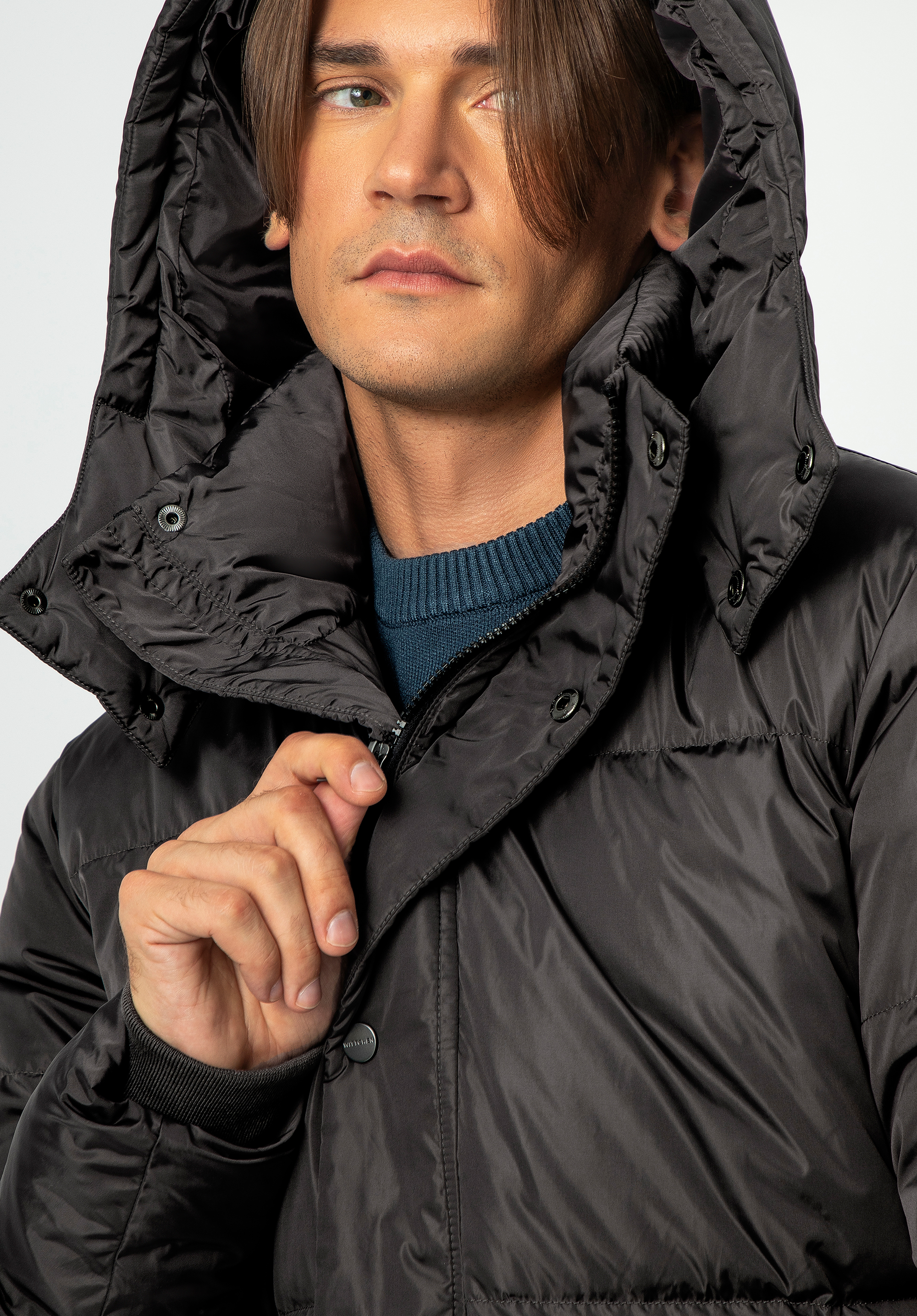 Odkryj, jak męska elegancja spotyka się z doskonałością wykonania w tej kurtce puchowej z odpinanym kapturem.