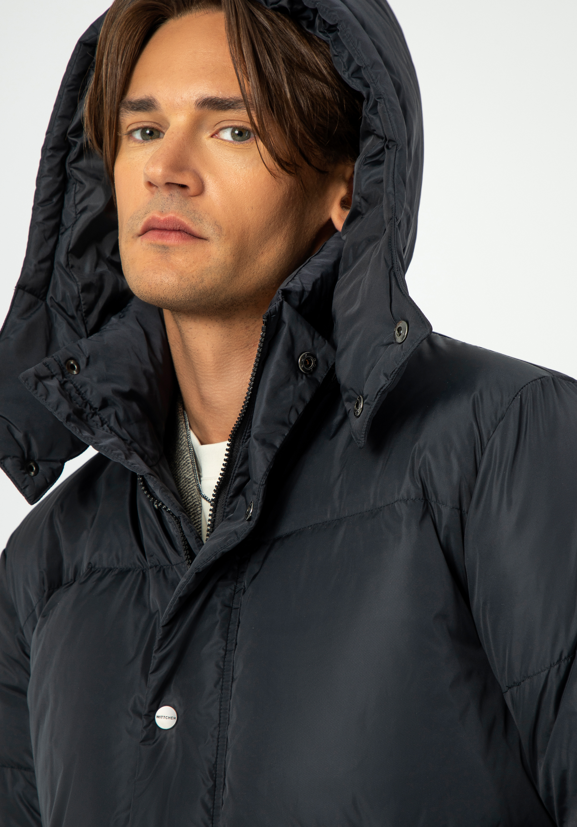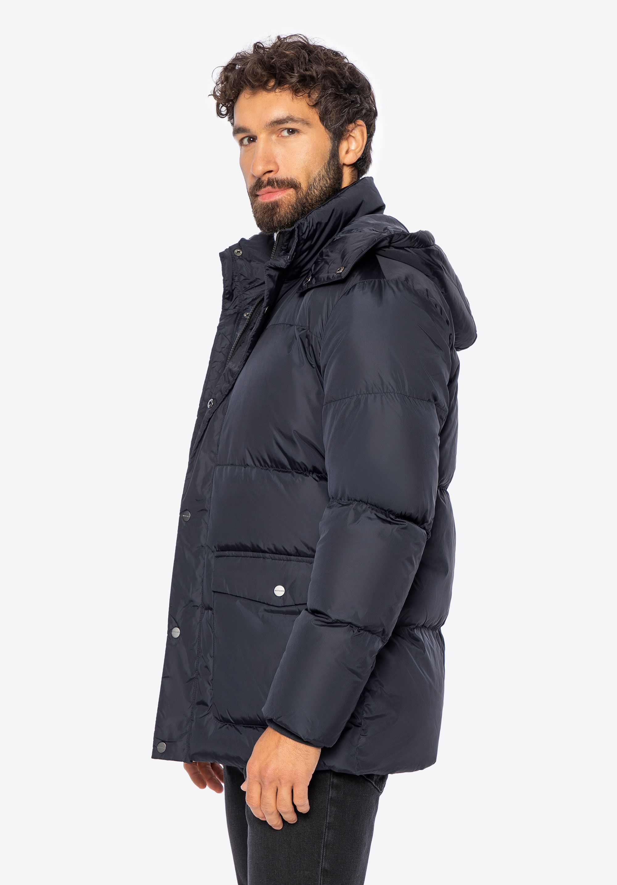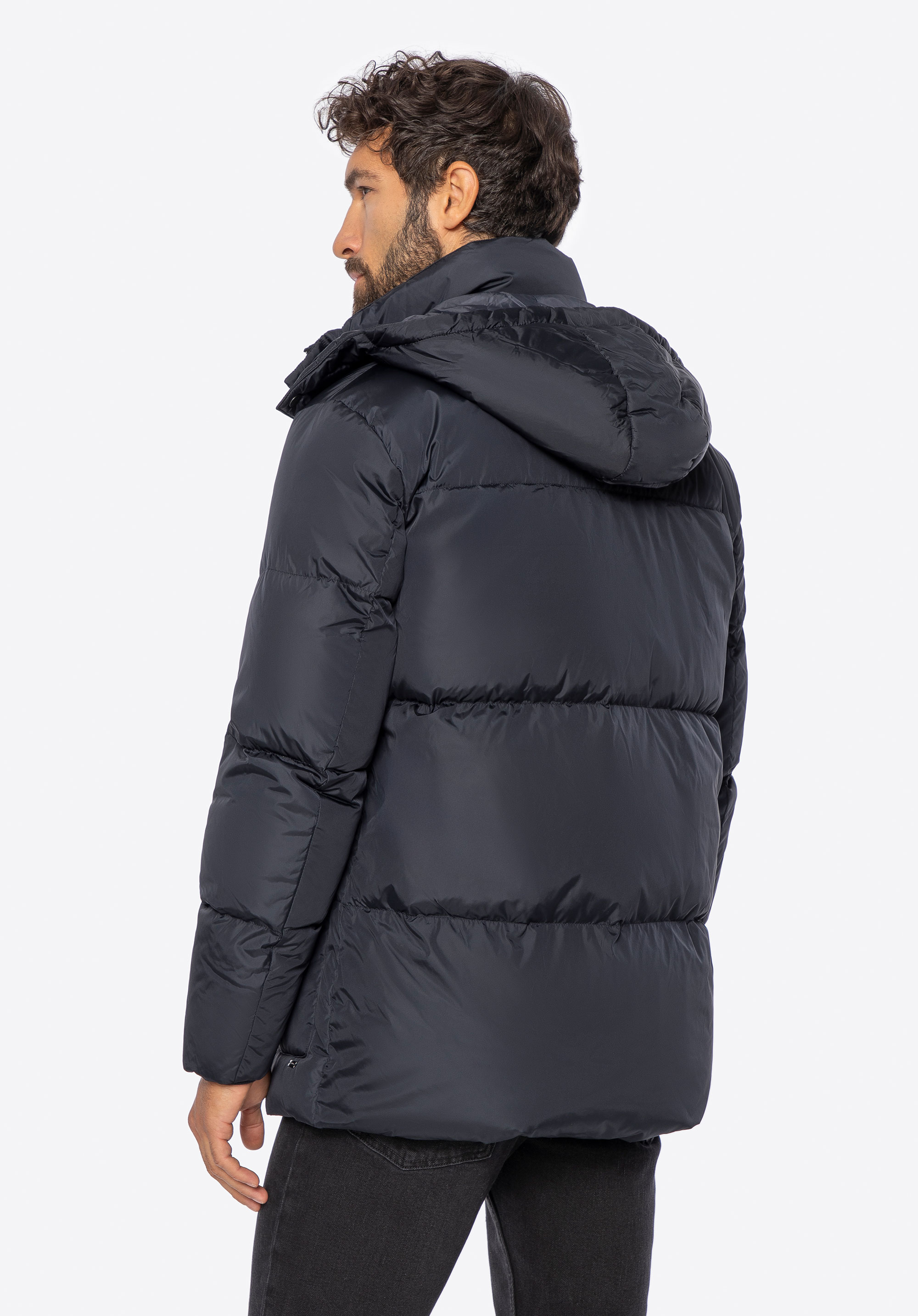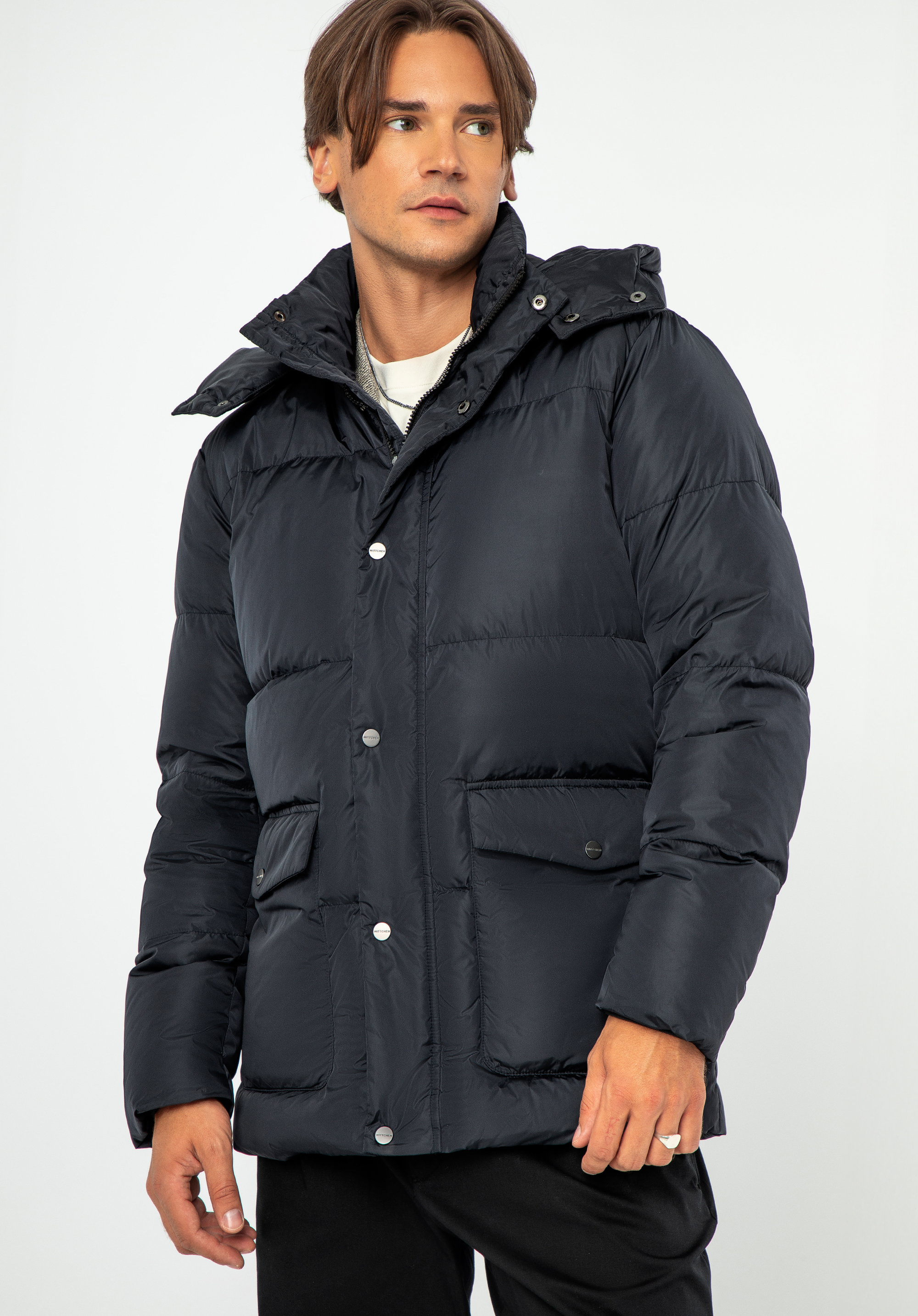 Odkryj, jak męska elegancja spotyka się z doskonałością wykonania w tej kurtce puchowej z odpinanym kapturem.