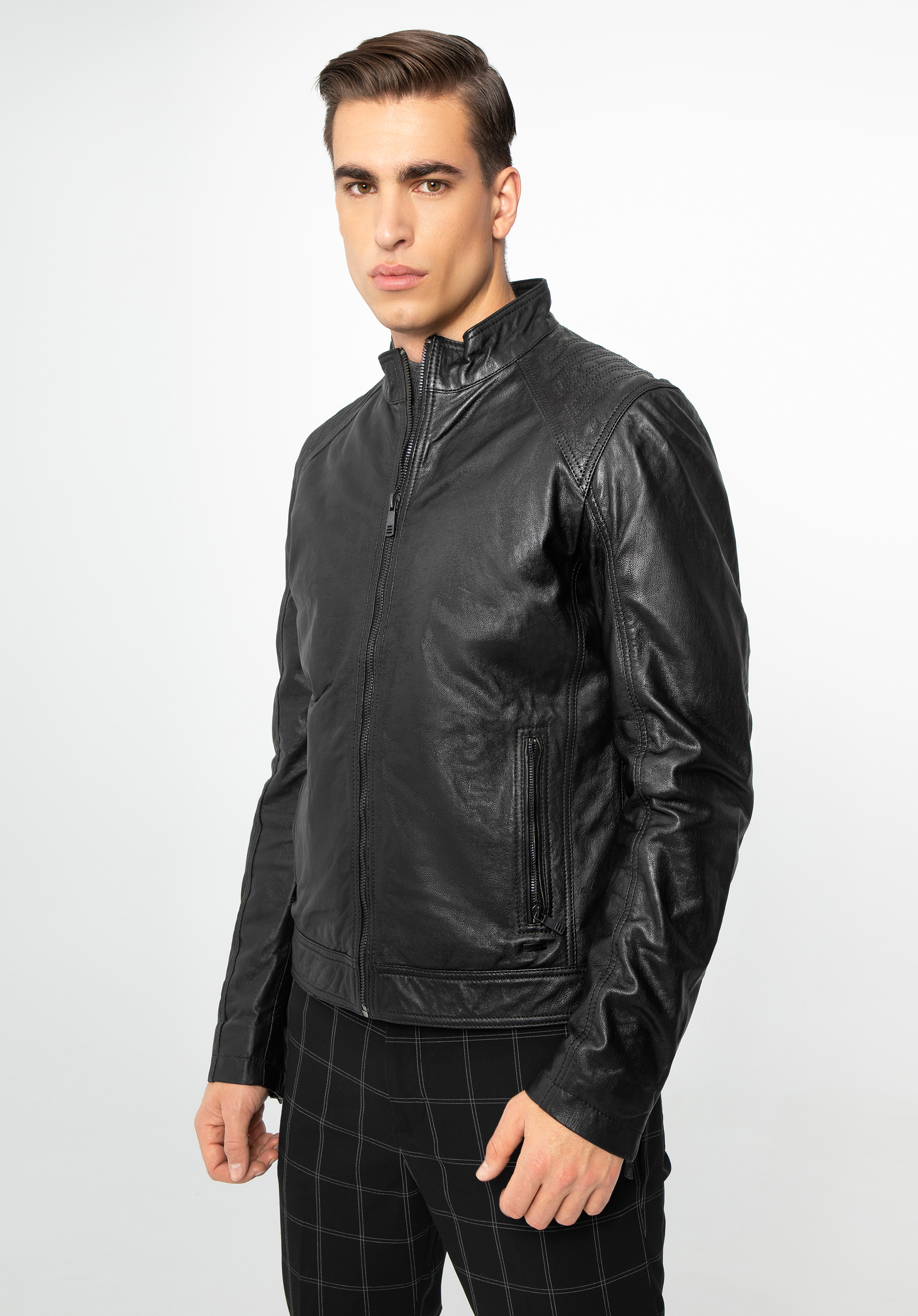 Ta klasyczna kurtka powinna znaleźć się w szafie każdego mężczyzny. Wykonana z wysokiej jakości skóry owczej, będzie współgrać z większością ubrań z Twojej szafy. Prosty, minimalistyczny fason został urozmaicony dyskretnymi przeszyciami na ramionach, które uwypuklają barki i nadają sylwetce męskiego charakteru. Kołnierz w formie stójki doskonale chroni przed wiatrem, a pionowe kieszenie - przed zimnym powietrzem. Zwróć też uwagę na rękawy – suwaki przy mankietach są nie tylko estetyczne, ale również zapewniają większą swobodę w codziennym życiu. A to wszystko sprawia, że męska kurtka skórzana z przeszyciami na ramionach będzie Ci stale towarzyszyć w kolejnych latach!