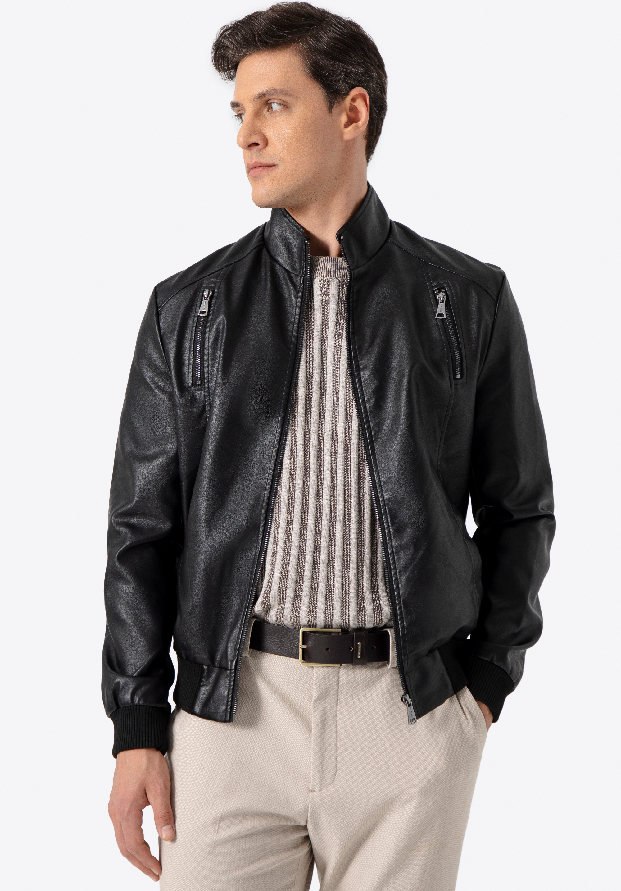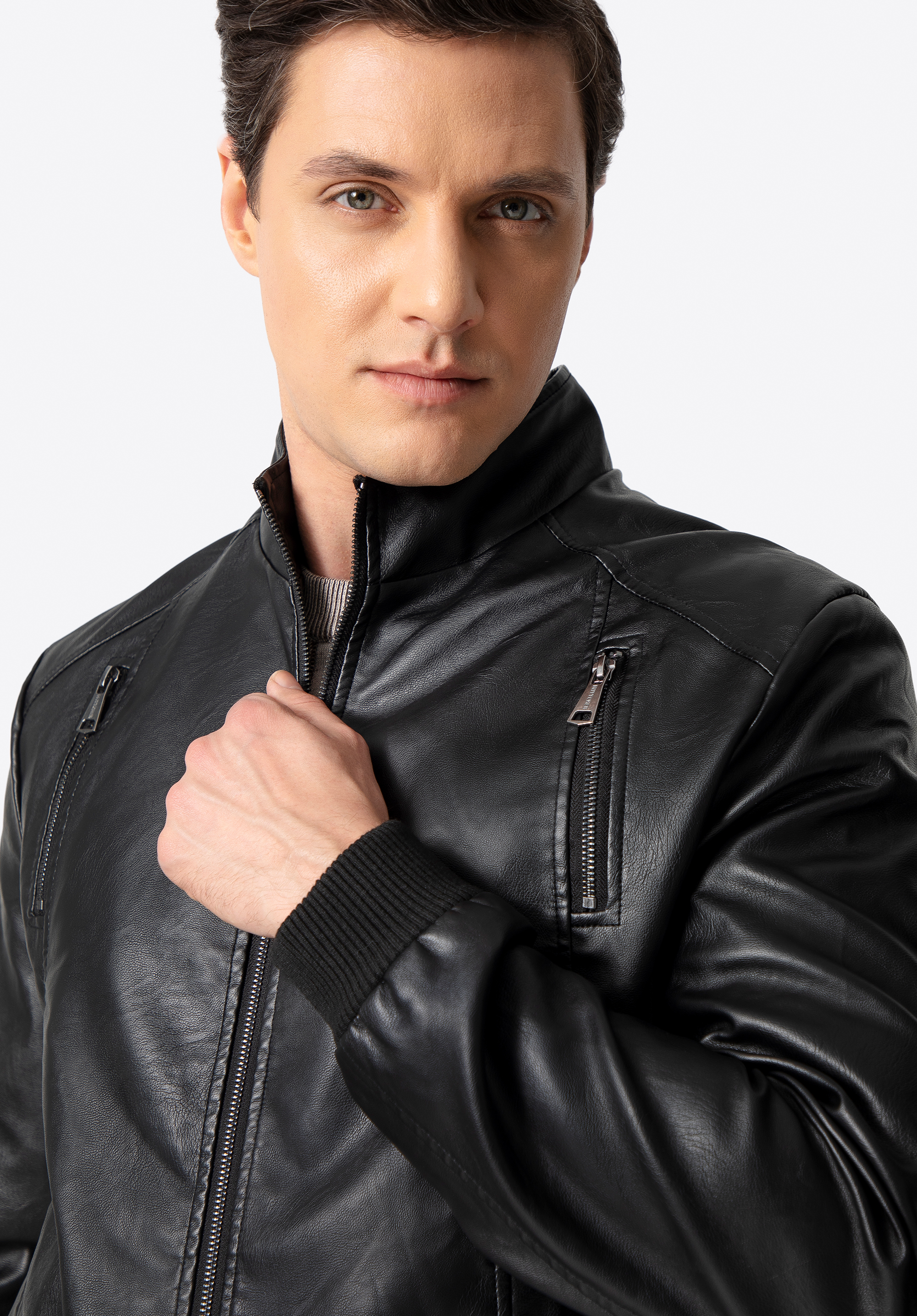 Męska kurtka z ekoskóry ze ściągaczami to ponadczasowy wybór dla każdego mężczyzny.