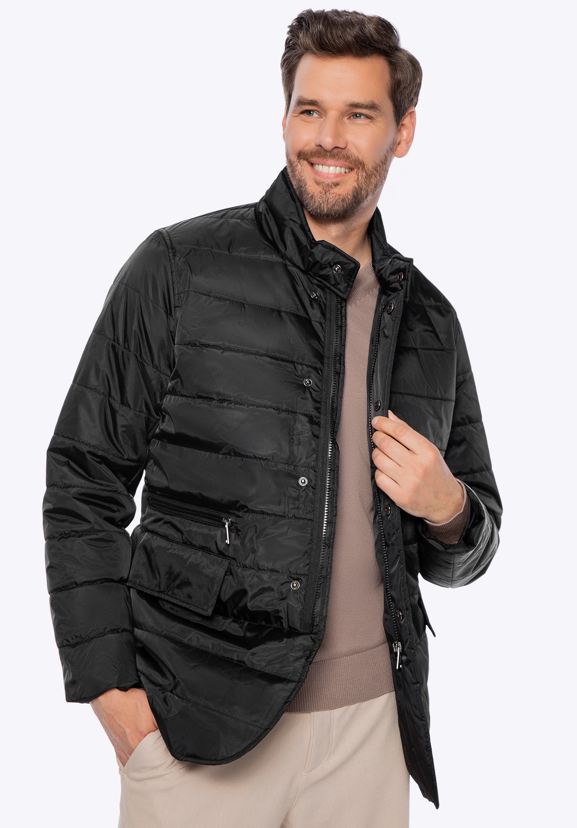 Męska kurtka z nylonu pikowana będzie idealna na chłodne poranki i wieczory, kiedy cenisz elegancję w praktycznym wydaniu. Nylon o delikatnym połysku, stójka na zatrzask oraz zamek ukryty pod listwą chronią przed wiatrem, a funkcjonalne kieszenie pozwalają wygodnie ogrzać dłonie i mieć drobiazgi przy sobie.
