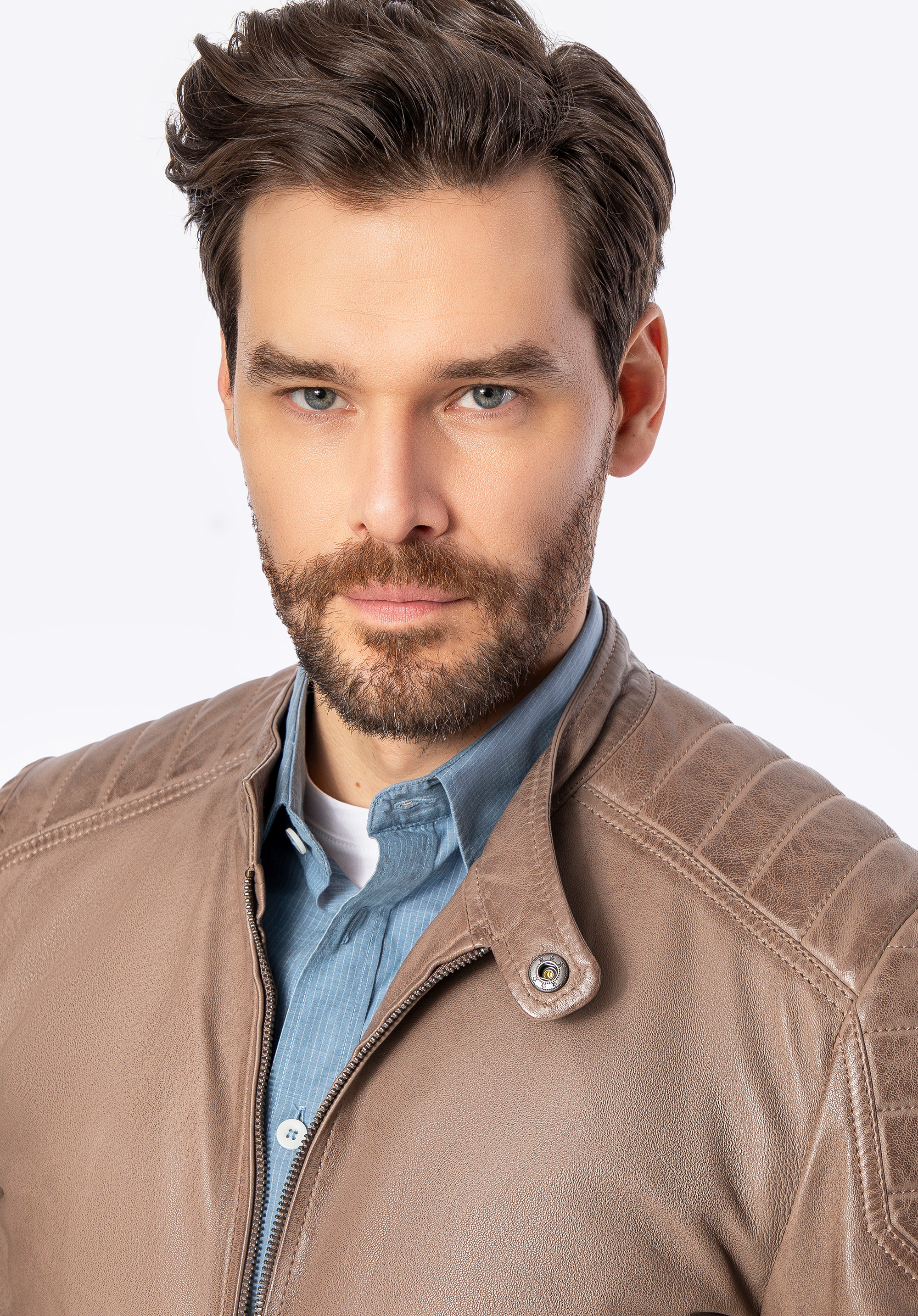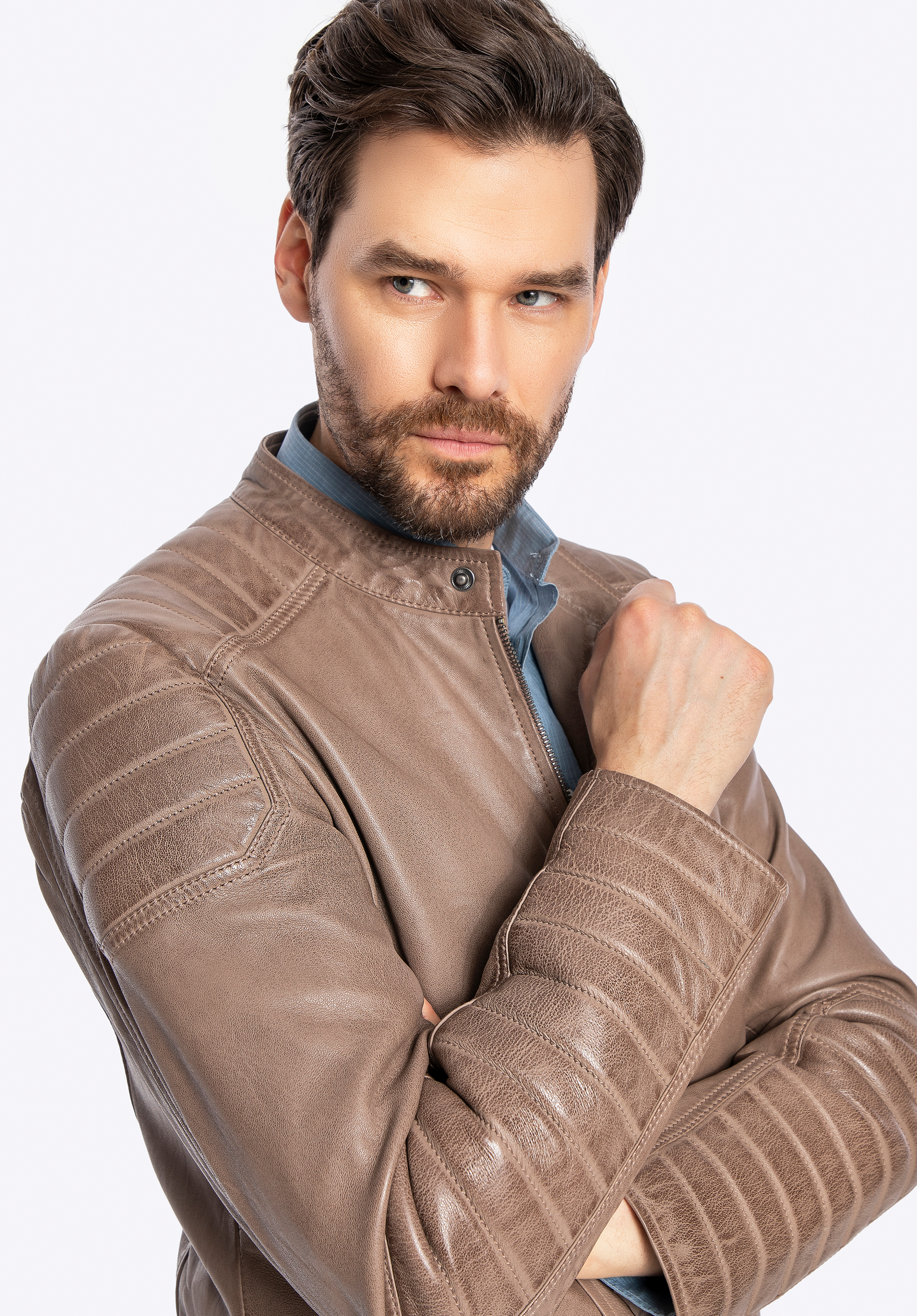 - Przeszycia na ramionach, rękawach i plecach: Nadają kurtce dynamicznego, męskiego charakteru i optycznie modelują sylwetkę.