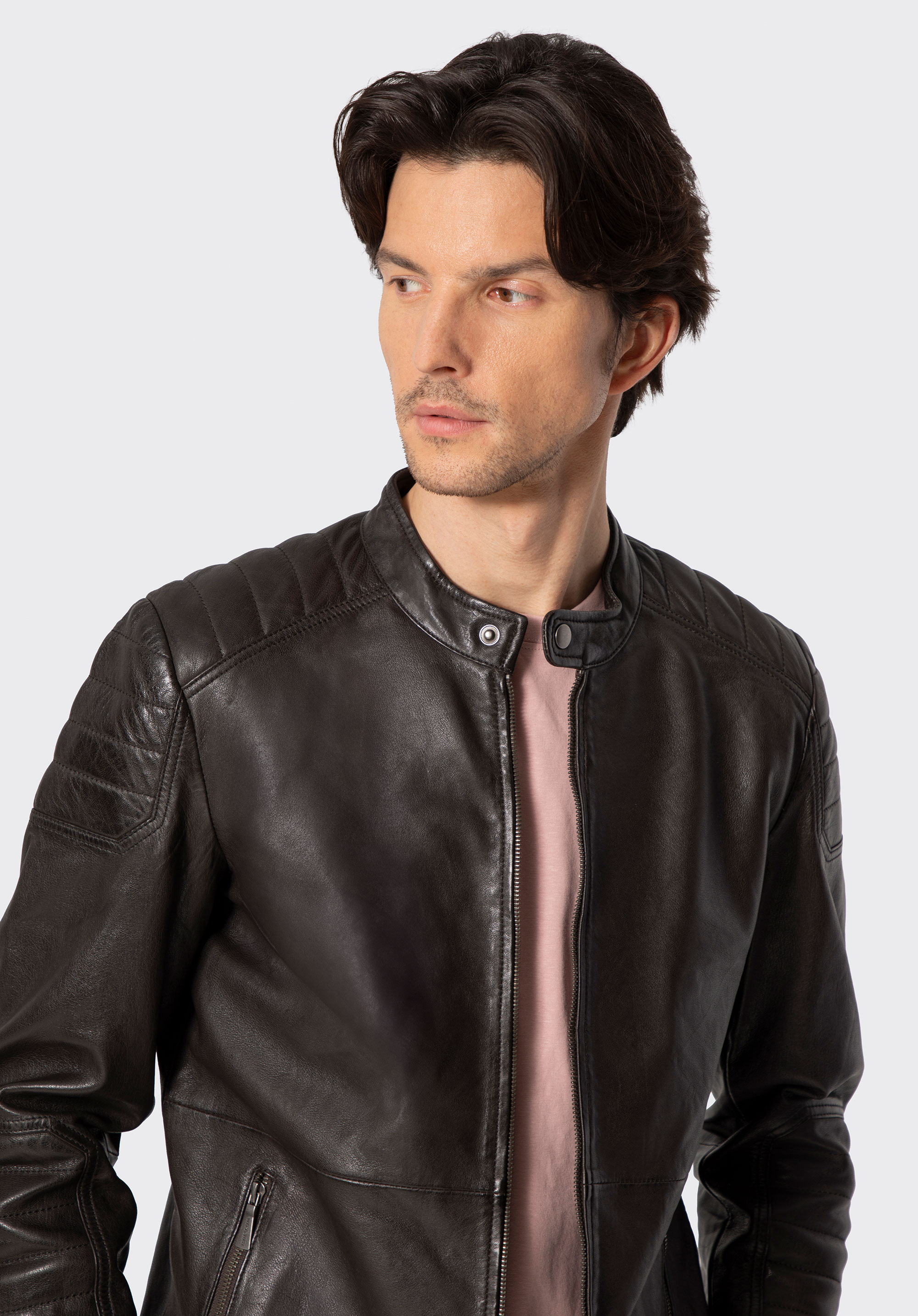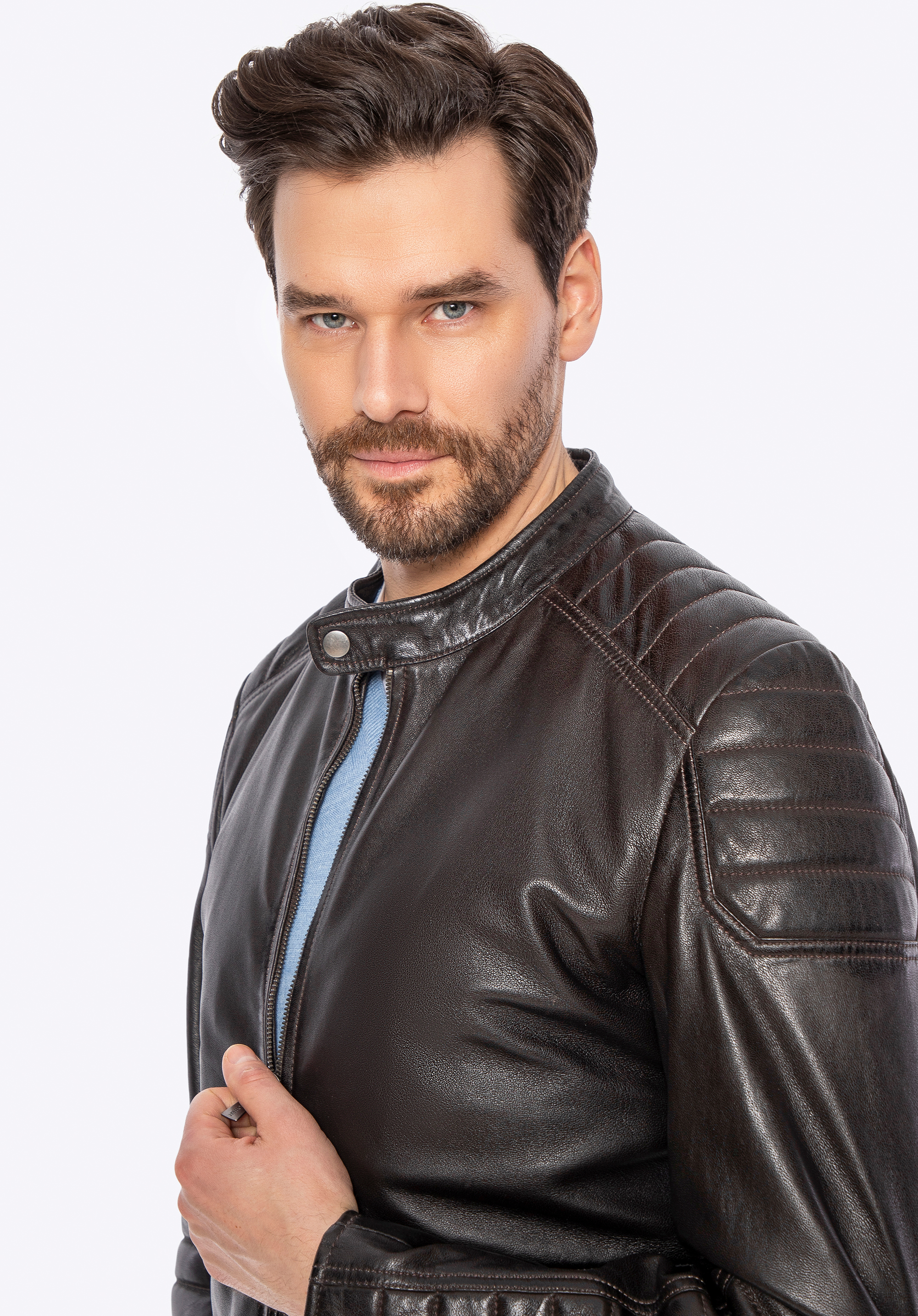 - Przeszycia na ramionach, rękawach i plecach: Nadają kurtce dynamicznego, męskiego charakteru i optycznie modelują sylwetkę.