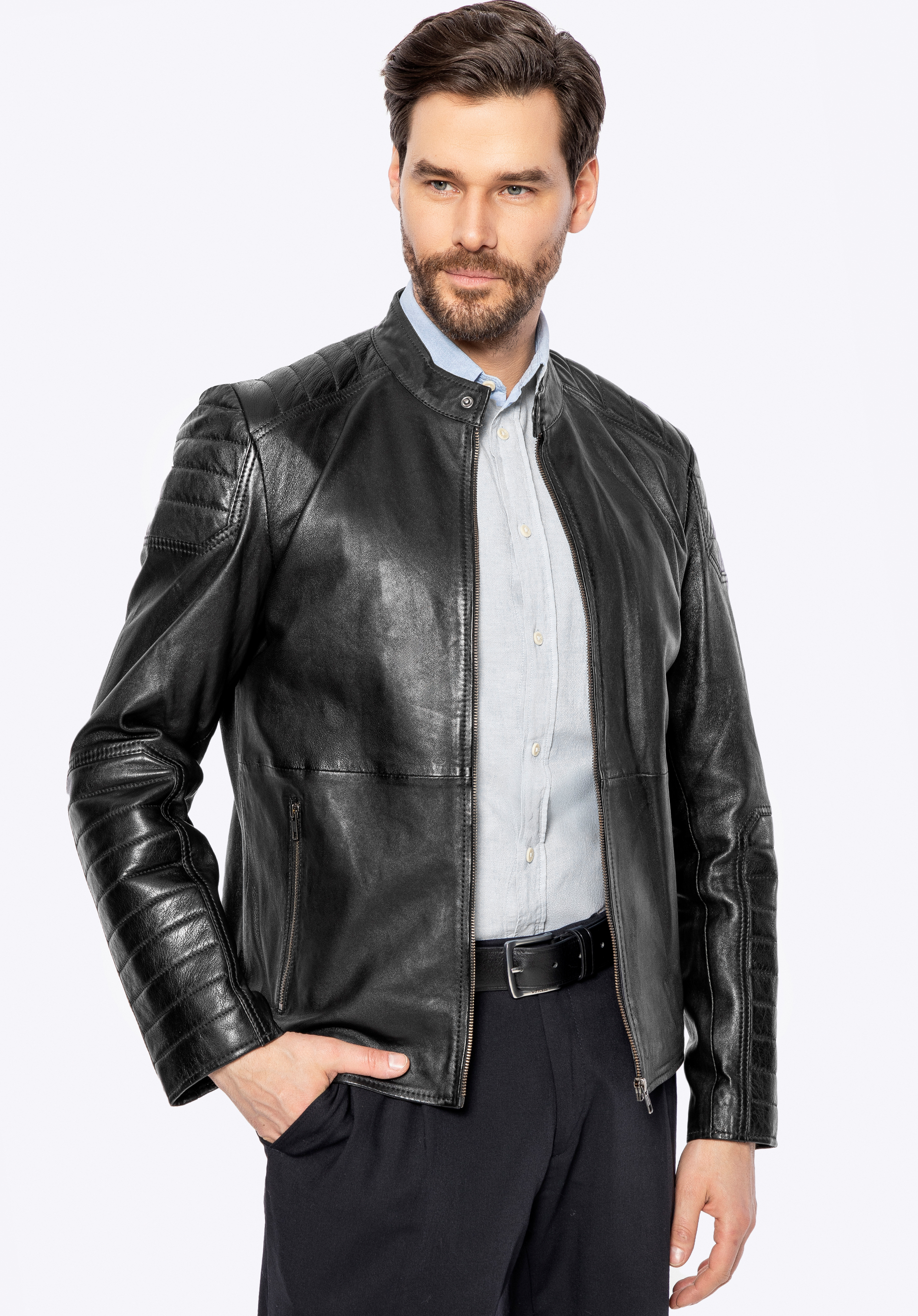 - Przeszycia na ramionach, rękawach i plecach: Nadają kurtce dynamicznego, męskiego charakteru i optycznie modelują sylwetkę.