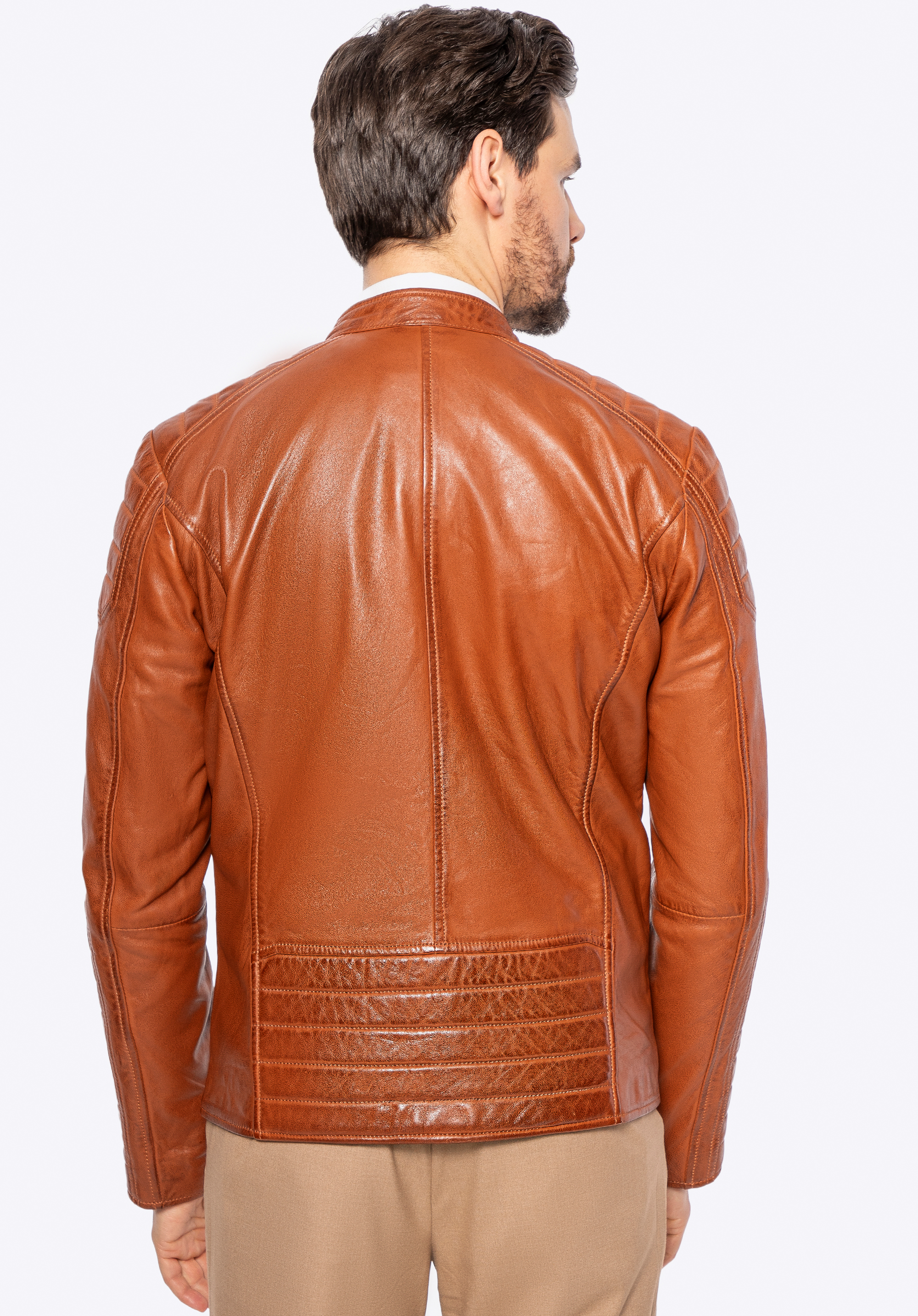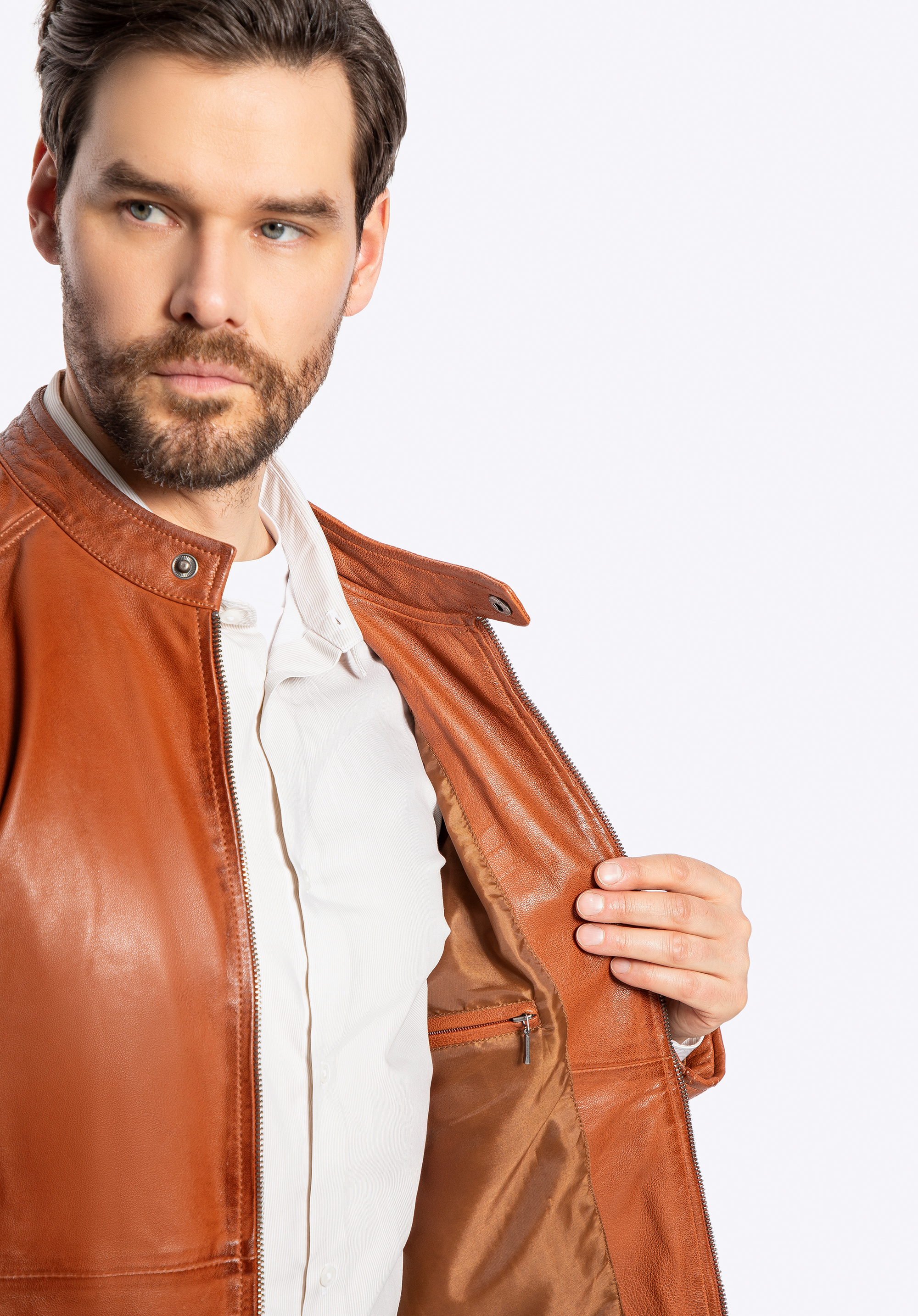 Wyróżnij się ponadczasowym stylem i wyrafinowaną elegancją. Ta męska kurtka, uszyta z najwyższej jakości skóry owczej, zachwyca miękkością i perfekcyjnym dopasowaniem. Metalowe logo na boku, sygnowane suwaki oraz precyzyjne przeszycia podkreślają jej ekskluzywny charakter. Przemyślane detale, takie jak funkcjonalne kieszenie – dwie zewnętrzne na zamek oraz dwie wewnętrzne (jedna zapinana, druga otwarta) – łączą luksus z praktycznością. To idealny wybór dla mężczyzn, którzy cenią niezawodną jakość i ponadczasowy design.